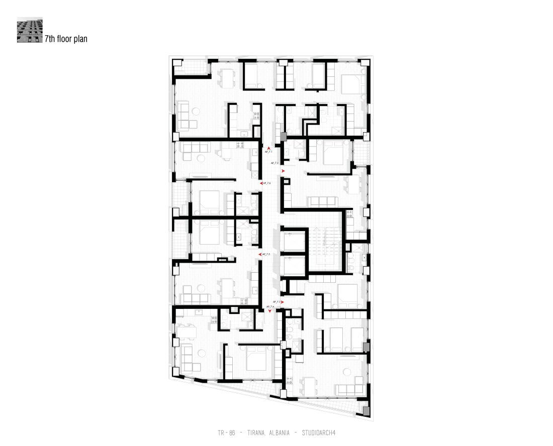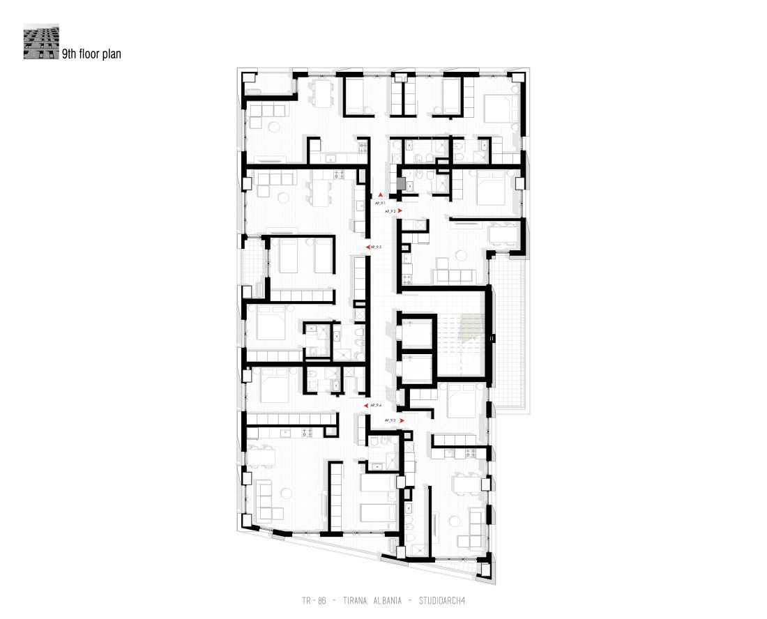 rregullta dhe kryesisht me kënde të drejta. Njësitë e banimit janë përshtatur me volumin e objektit dhe janë të