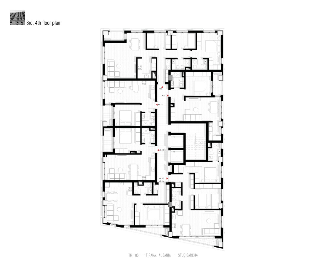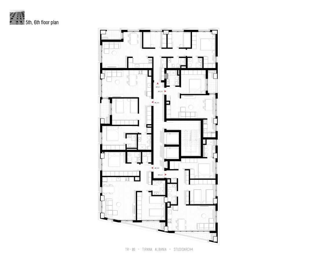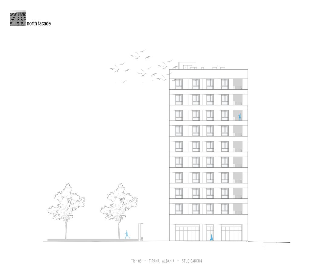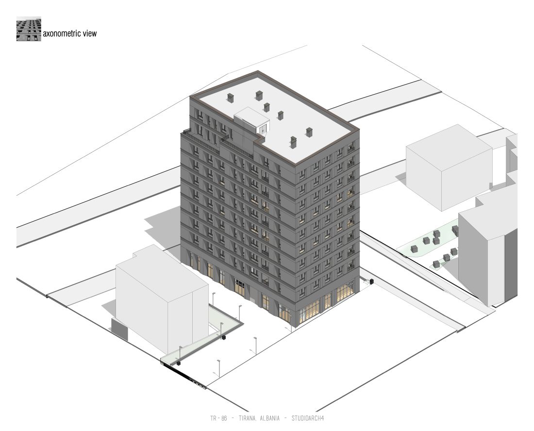 tipologjive të ndryshme. Fasada është parashikuar të jetë e ventiluar me pllaka qeramike në ngjyrë gri, e cila