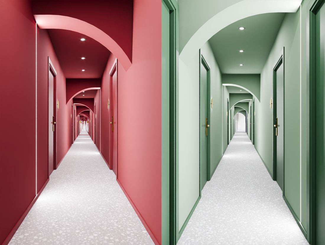 survejimi e hotelit. Për hotelin është ruajtur koncepti i ngjyrave për të krijuar hapsira vibrante dhe me gjallëri.