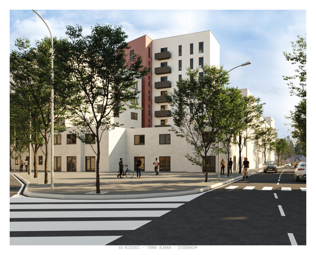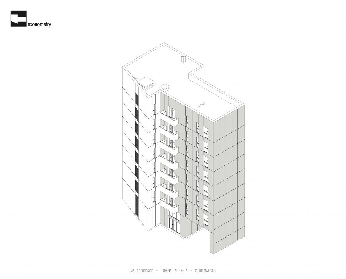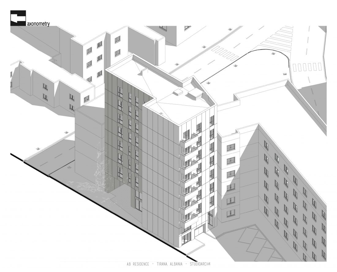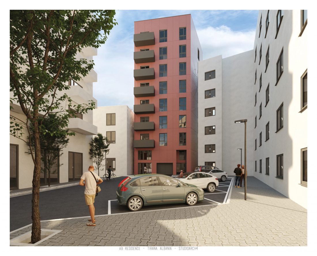 Rezidenca AB është një godinë tetë katëshe me dy kate parkimi nëntokë dhe ndodhet pranë rrugës ‘Pjetër Budi’. Neë katin përdhe janë pozicionuar shëbimet ndersa katet e tjera kane funksion rezidencial me nga dy apartamente në kat.