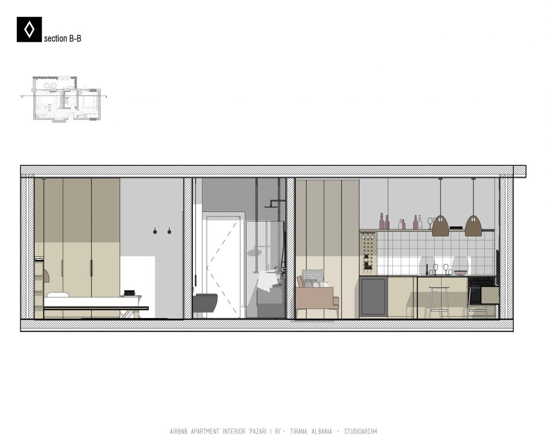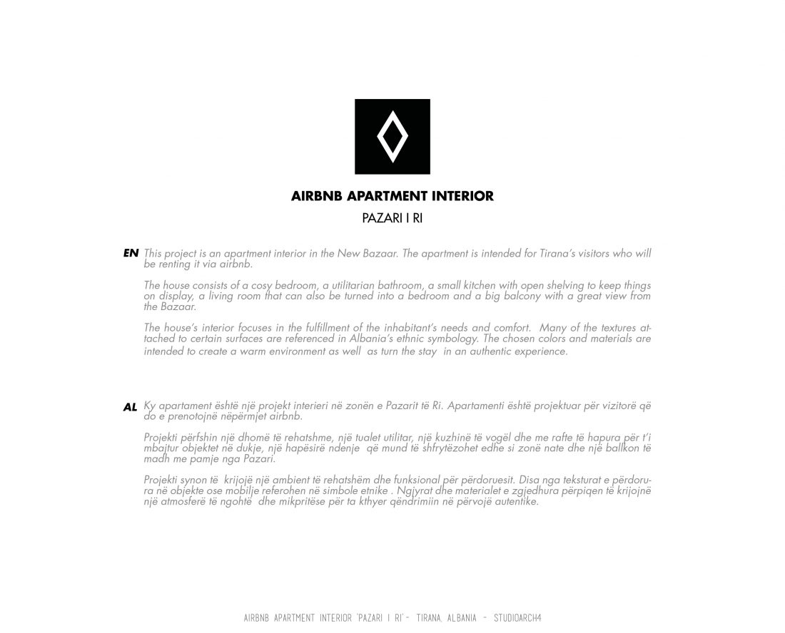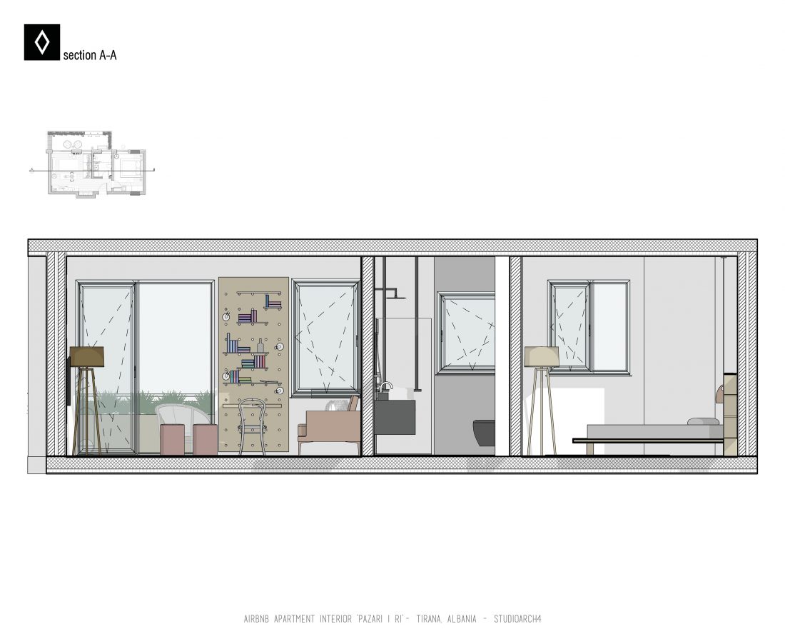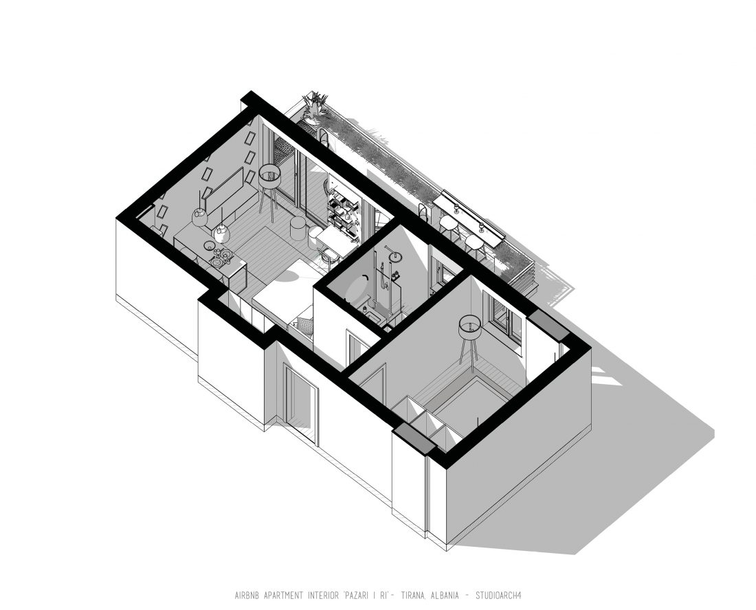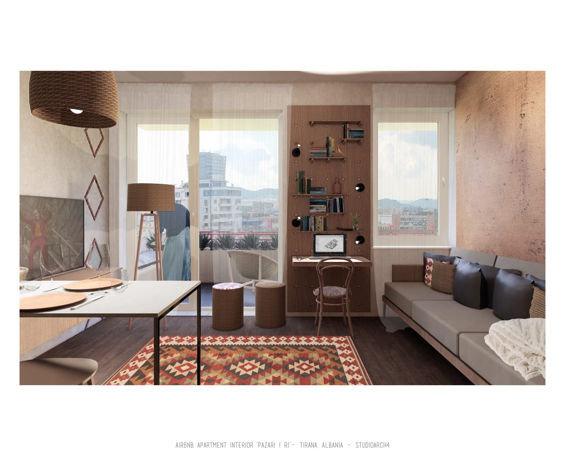 Ky apartament është një projekt interieri në zonën e Pazarit të Ri. Apartamenti është projektuar për vizitorë që do e prenotojnë nëpërmjet airbnb.