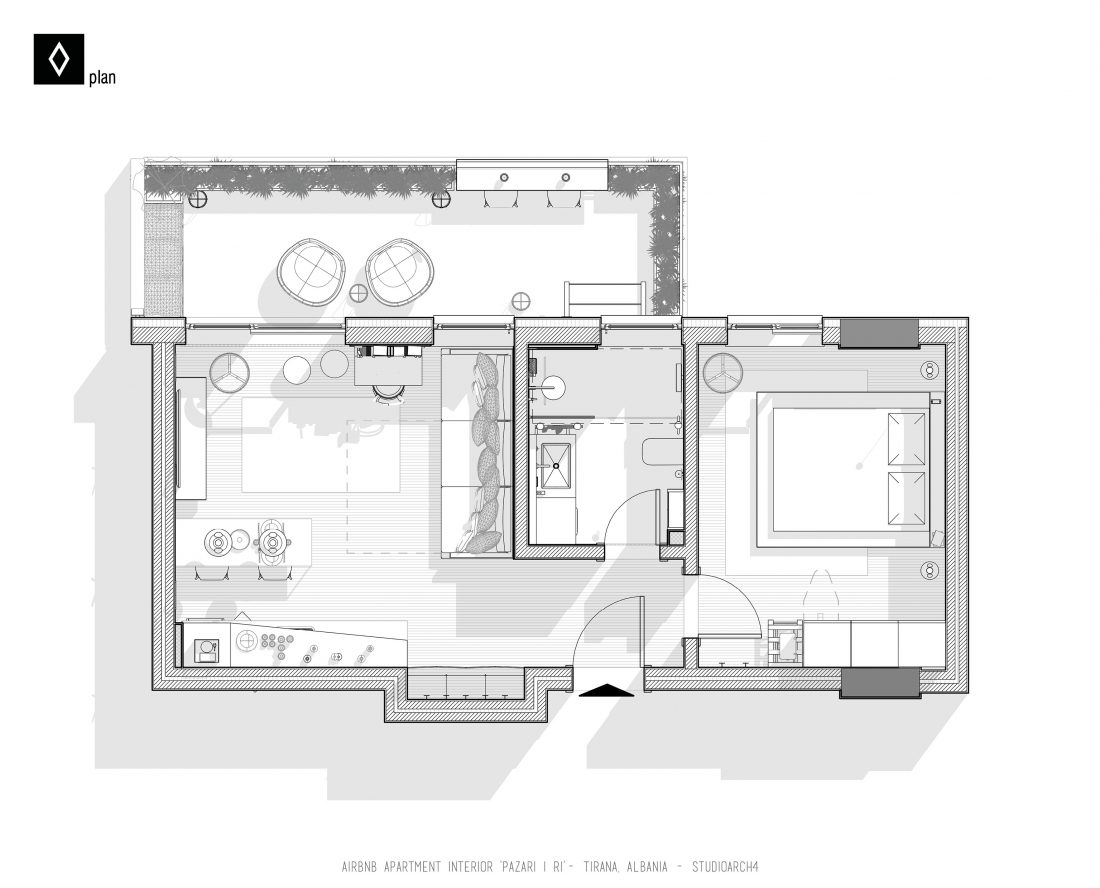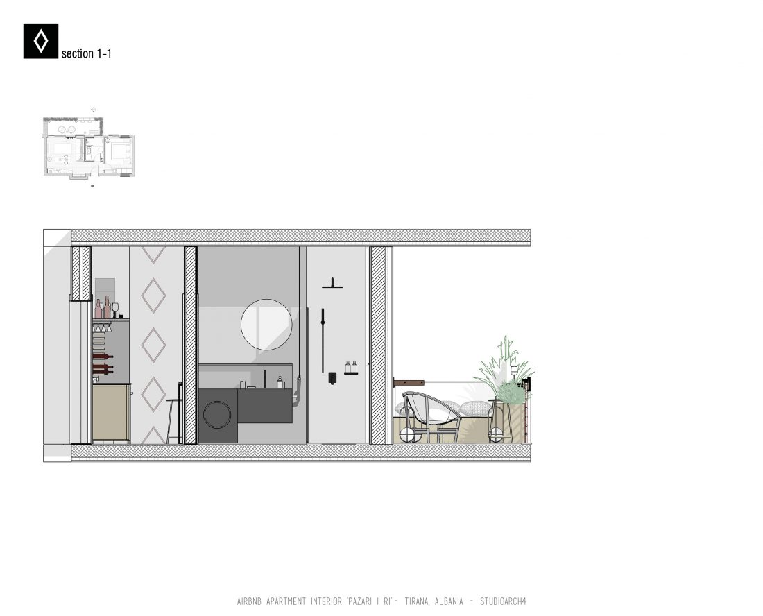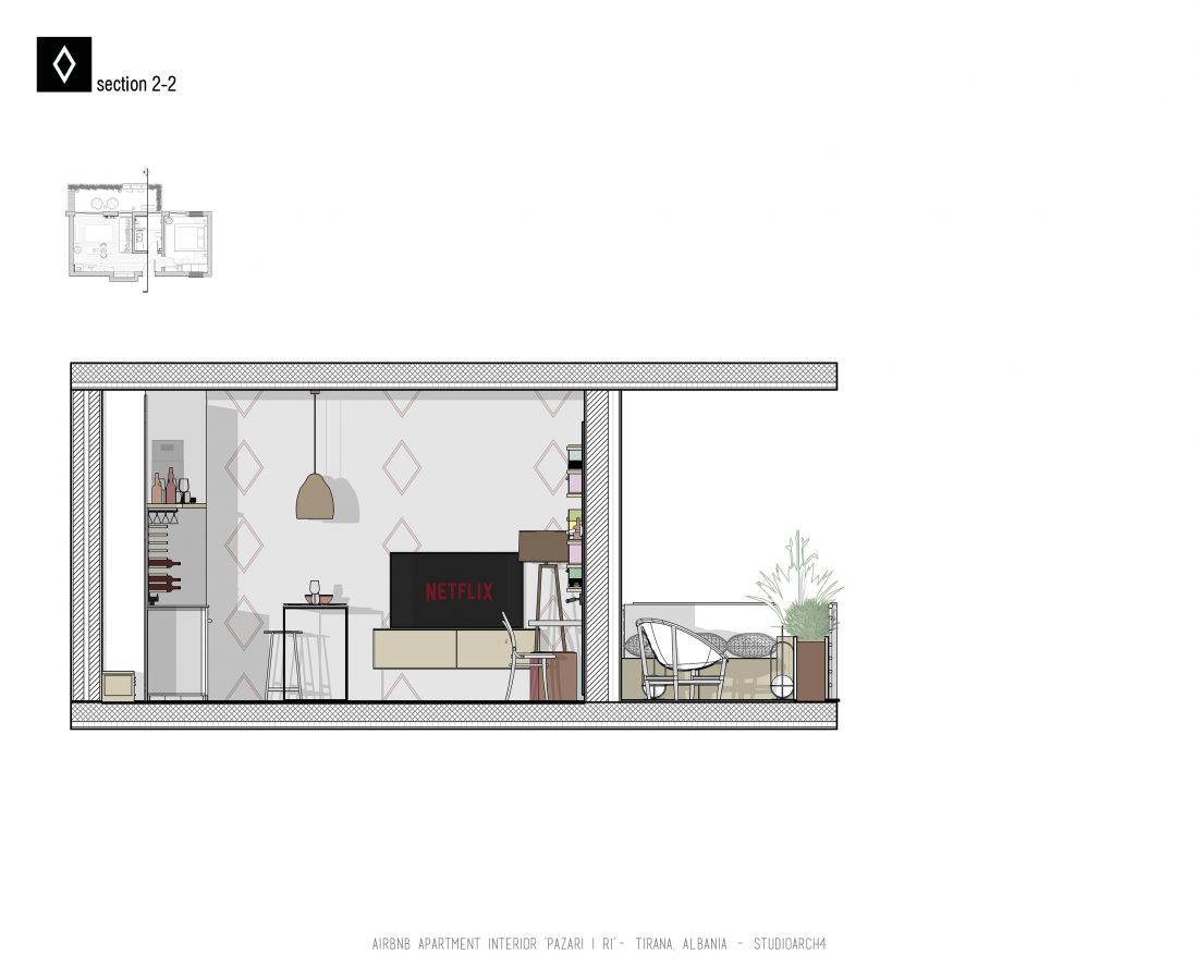 This project is an apartment interior in the New Bazaar. The apartment is intended for Tirana’s visitors who will be renting it via airbnb.