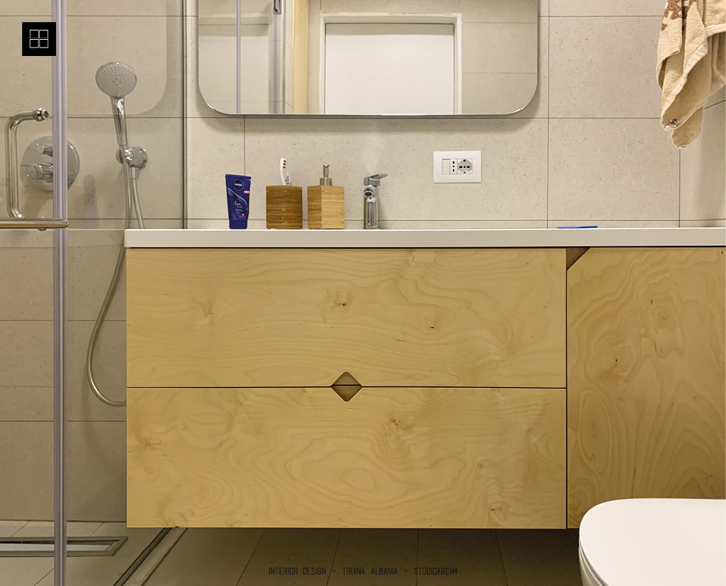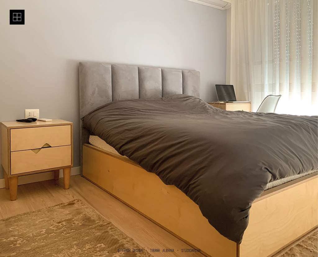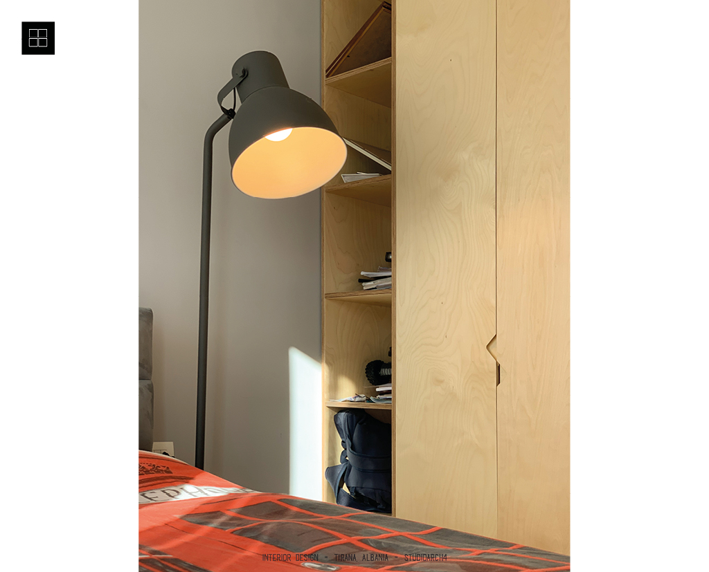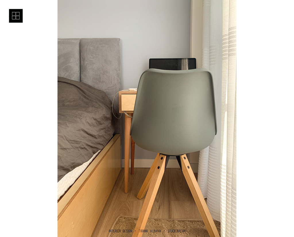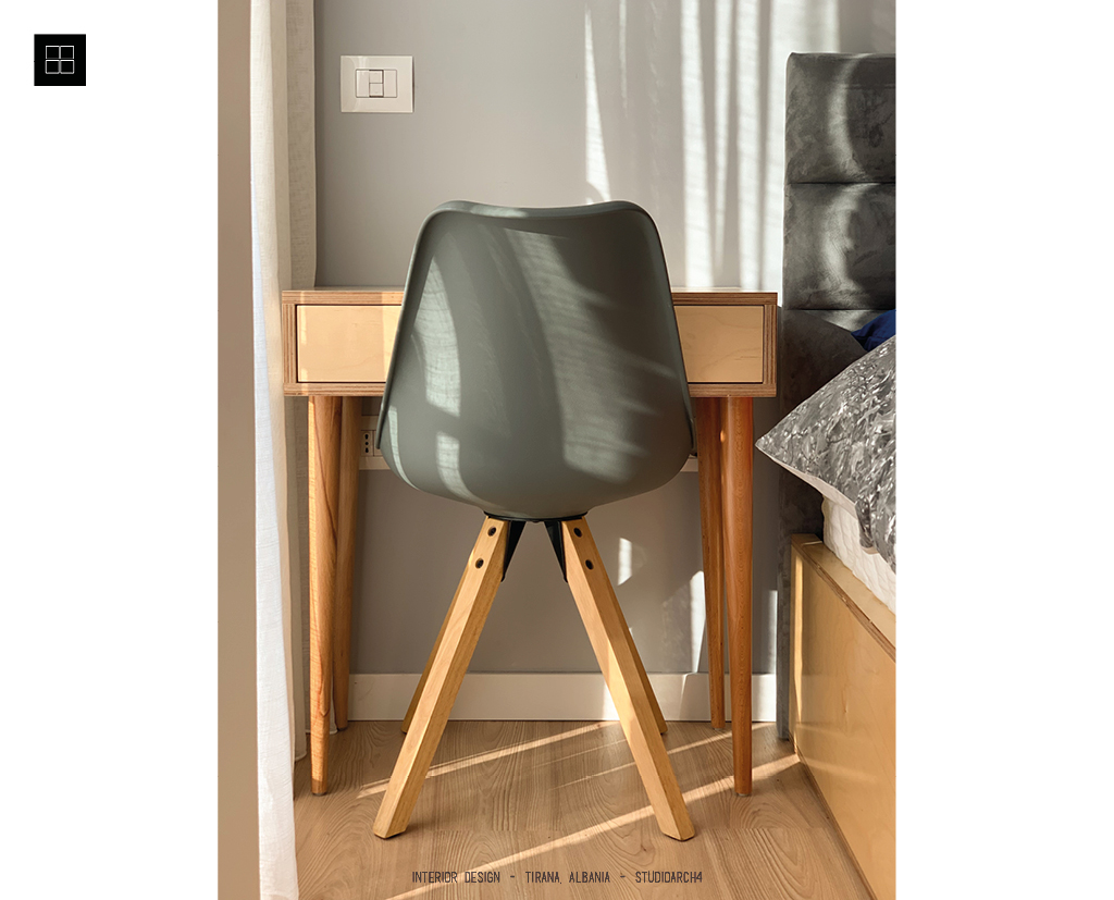 Dizajni i nje interieri eshte nje process i kendshem plot ngjyra, si ne kete apartament. Elementi me I rendesishem i ketij apartamenti eshte mobilja e televizorit e cila sherben dhe si ndarese midis pjeses se dhomes se ndenjes dhe korridorit. Apartamenti ka 3 dhoma te pozicionuara ne jug, 2 tualete, 1 lavanderi dhe nje ballkon te madh.