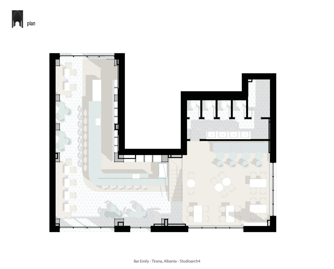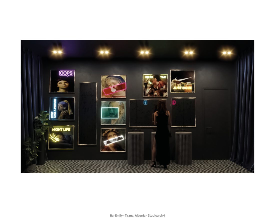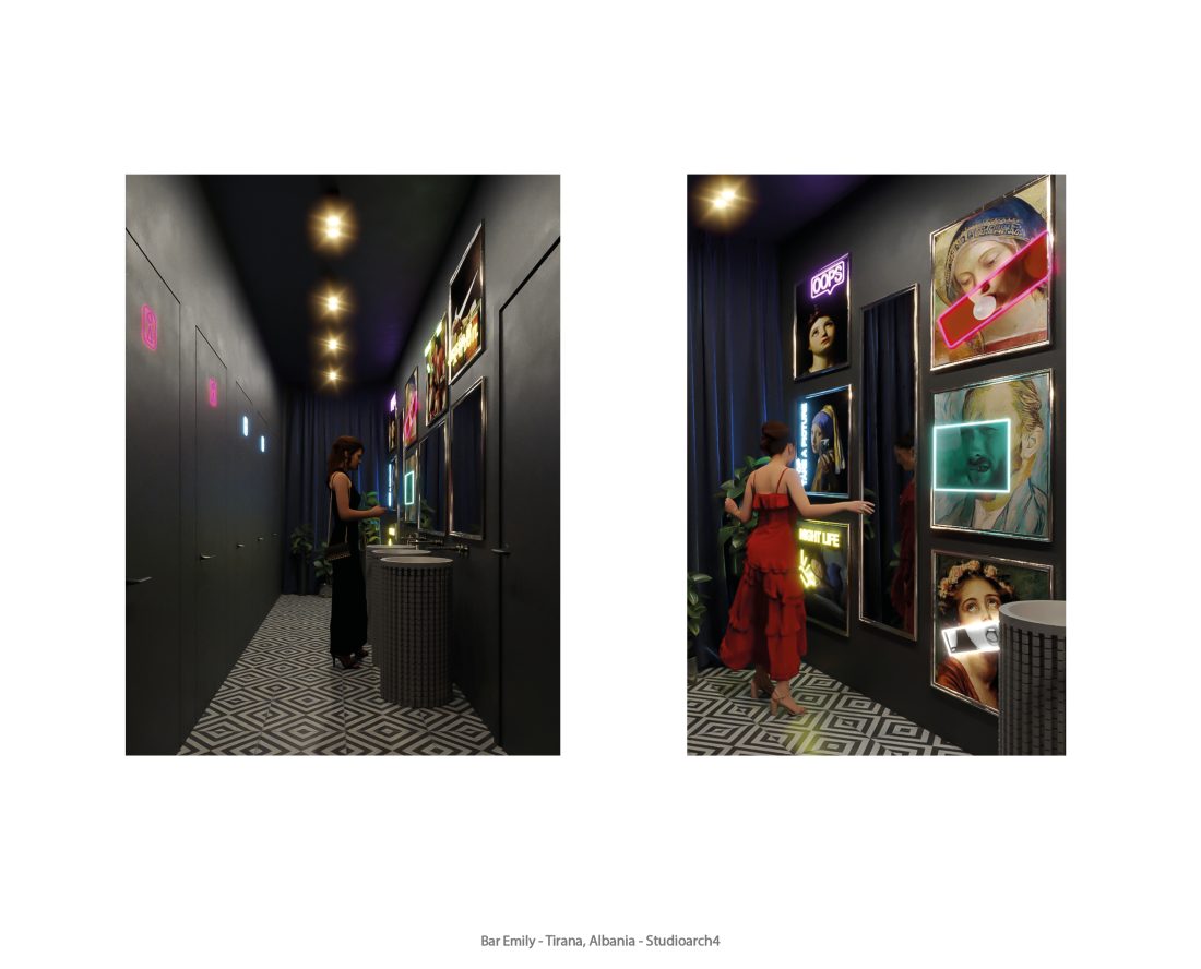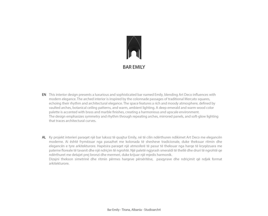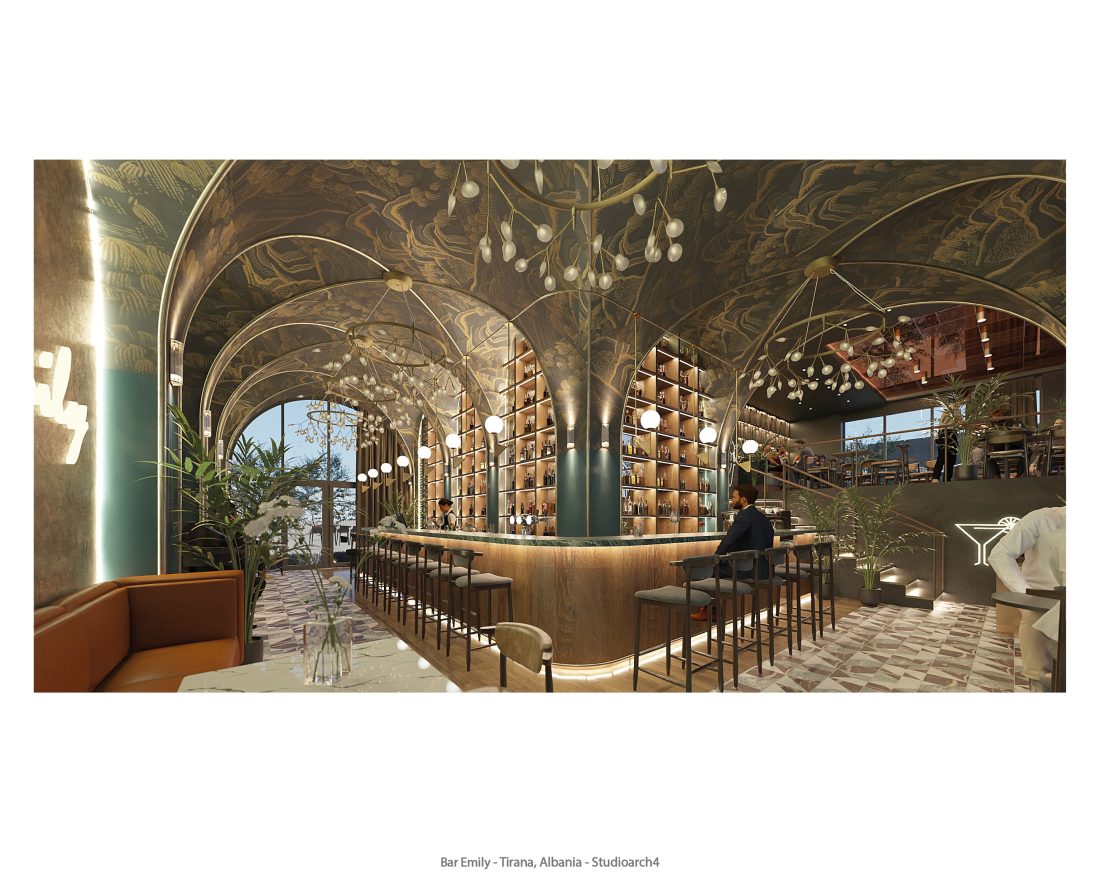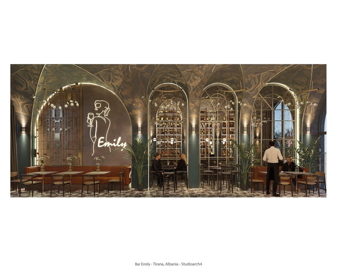 Ky projekt interieri paraqet një bar luksoz të quajtur Emily, në të cilin ndërthuren ndikimet Art Deco me elegancën