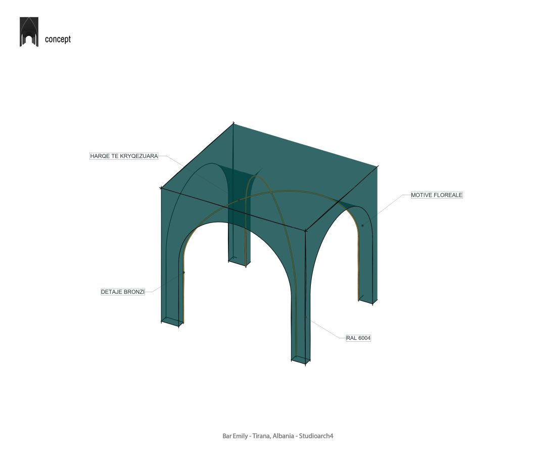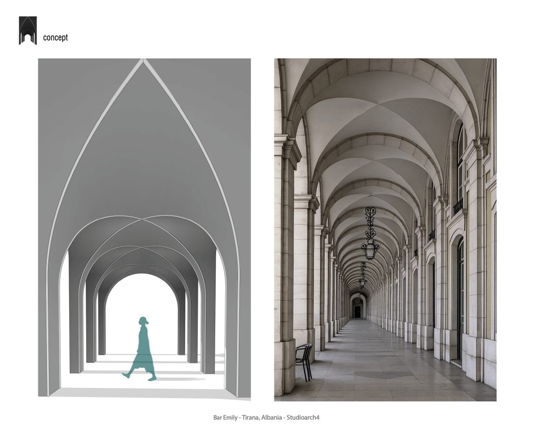 moderne. Ai është frymëzuar nga pasazhet me kolonada të shesheve tradicionale, duke theksuar ritmin dhe