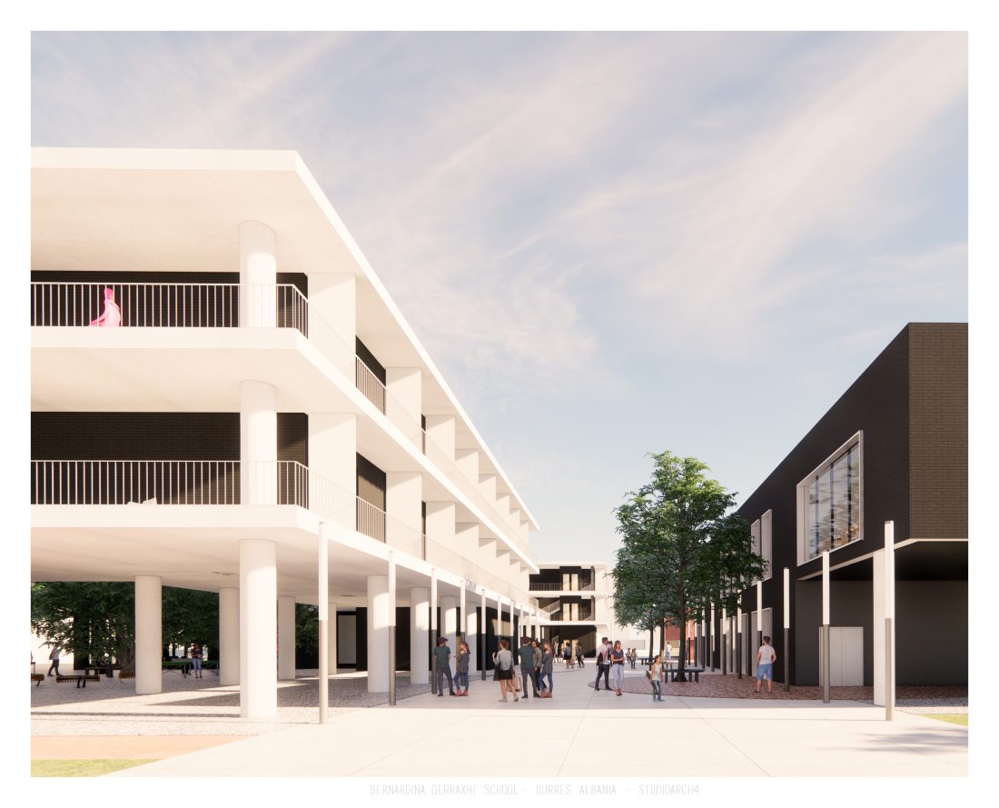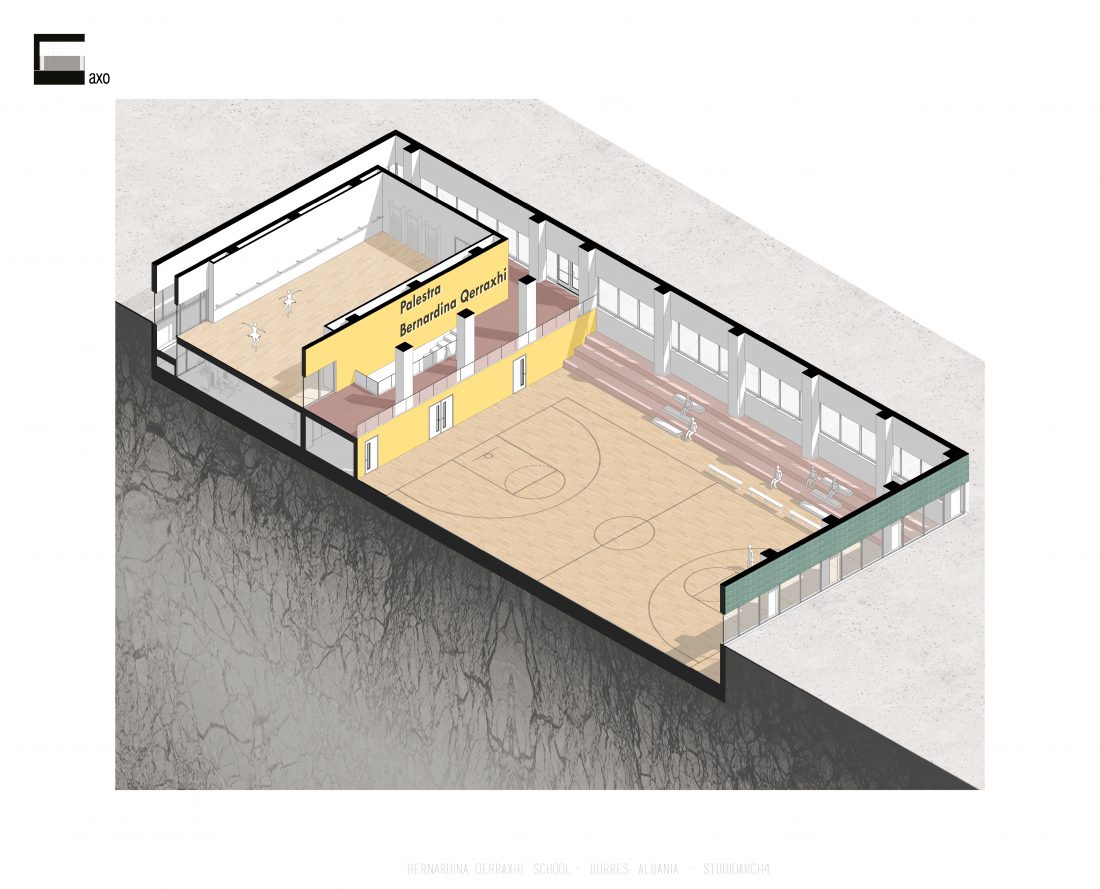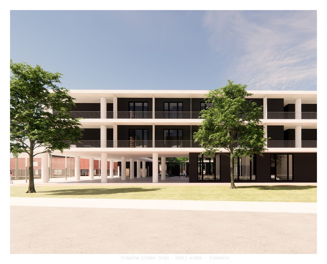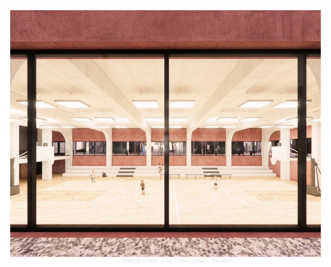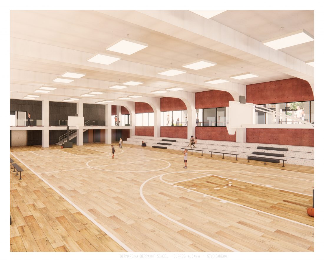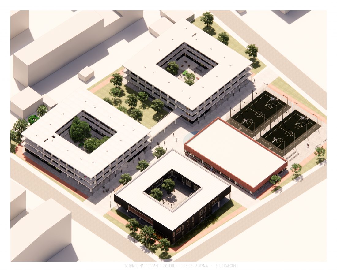 Shkolla ‘Bernardina Qerraxhi’, shkolla kombëtare profesionale e sporteve, ndodhet në Durrës. Si pasojë e tërmetit të 26 Nëntor 2019, ndërtesa pësoi dëme të mëdha dhe duhet rikonstruktuar, duke ndjekur edhe standarte të reja të projektimit dhe ofrimin e hapësirave specifike për karakterin sportiv. Projekti përfshin godinën e shkollës, një palestër të re, dhe hapësira për konvikte. Zona ofron mundësinë e shpërndarjes së këtyre funksioneve në godina të ndryshme duke dhënë mundësinë për të projektuar edhe hapësira të jashtme të cilat do i shërbejnë dhe do lidhin objektet e ndara. Pikë e rëndësishme në projektim është ndërthurja e disa hapësirave që mund ti shërbejnë edhe komunitetit, jo vetëm studentëve.