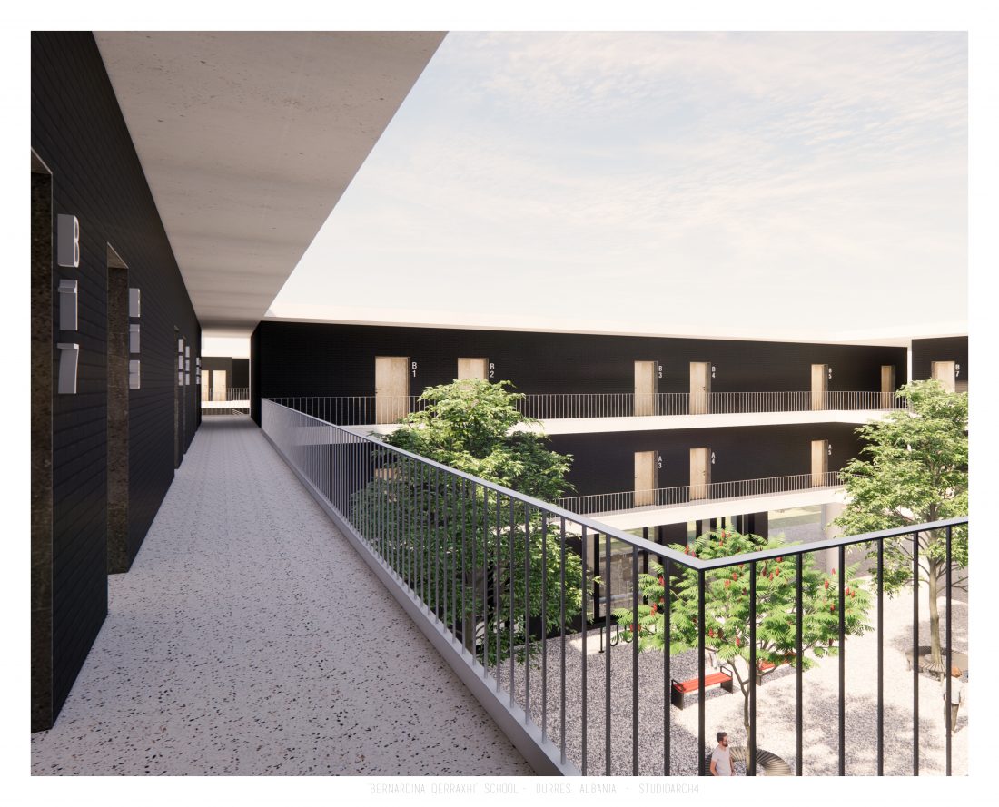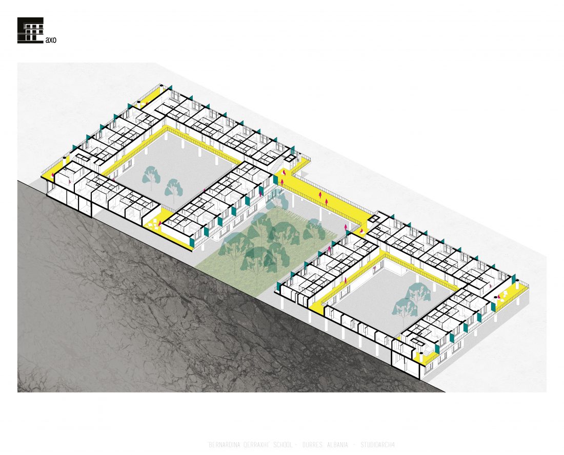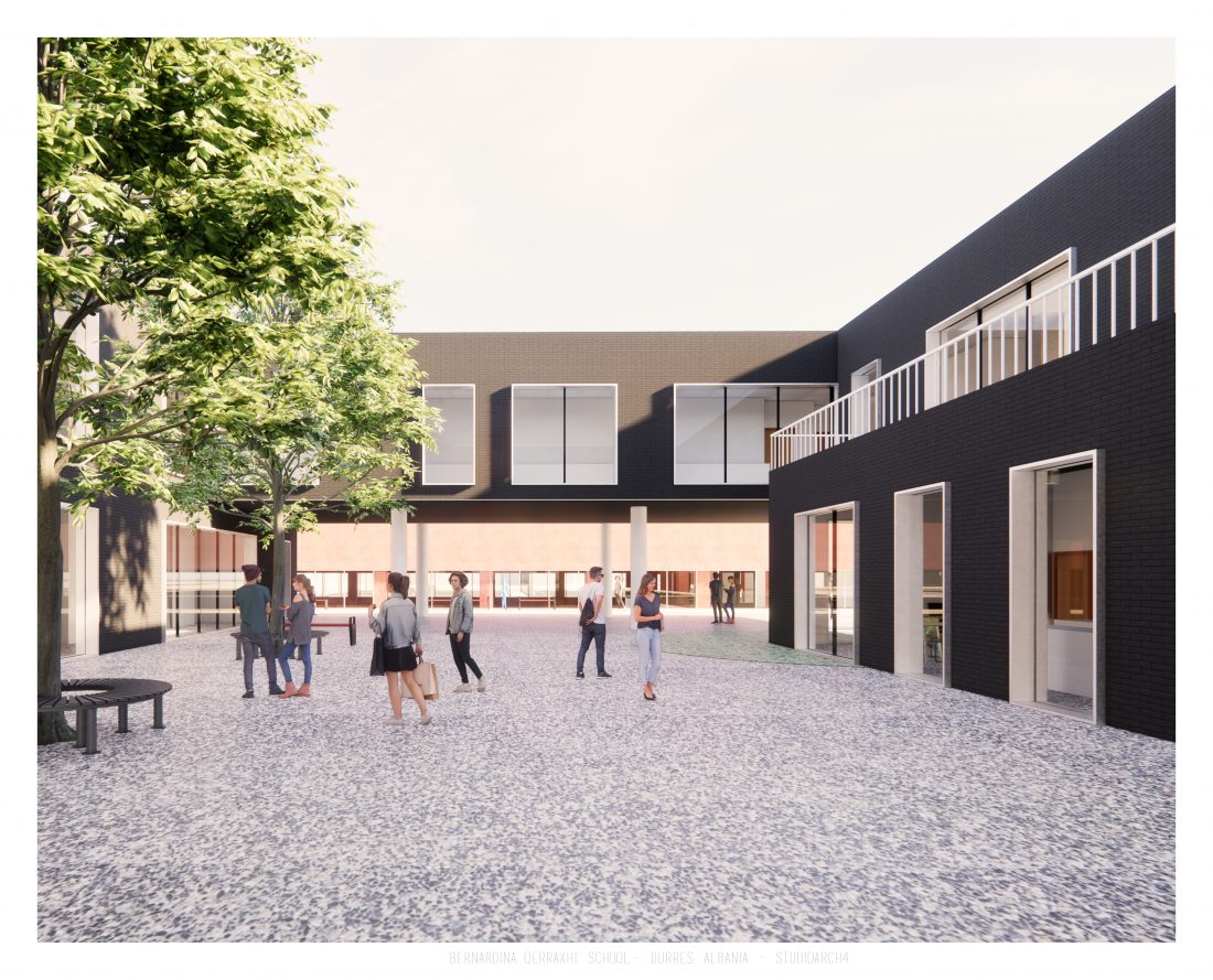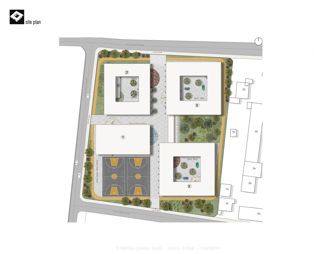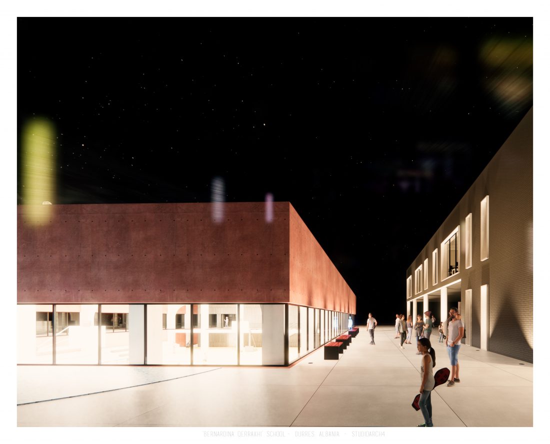‘Bernardina Qerraxhi’ school, the professional sports national school, is located in Durrës. As a result of the earthquake on November 26, 2019, the building suffered major damage and needed to be reconstructed, following the new design standards and the provision of specific spaces for its sports character. The project includes the school building, a new gym and the dormitory space. The area offers the possibility of distributing these functions in different buildings giving the opportunity to design outdoor spaces which will serve and connect them. An important point in the design process is the combination of several spaces that can serve also the community, not just the students.