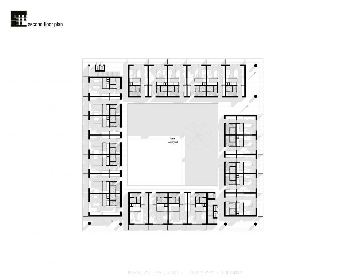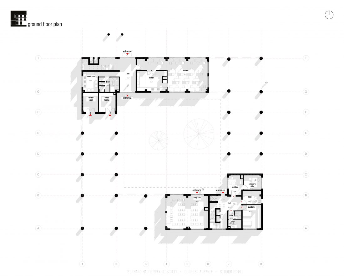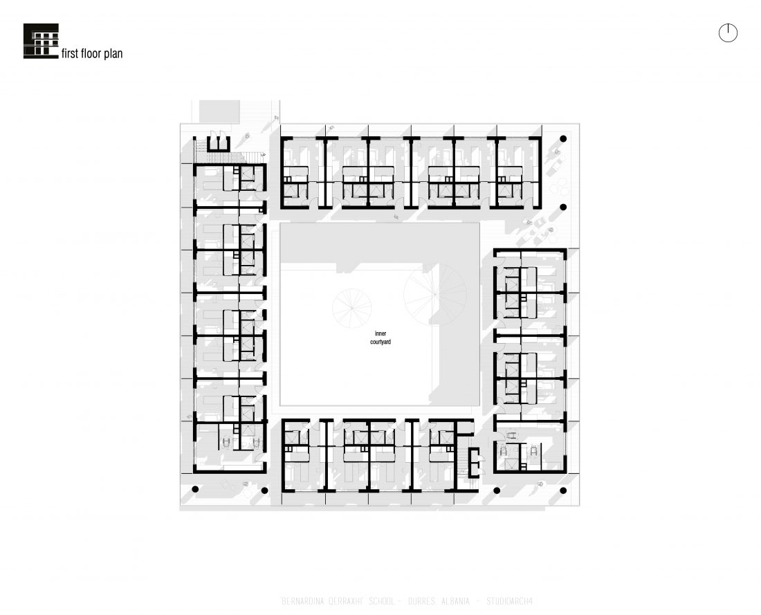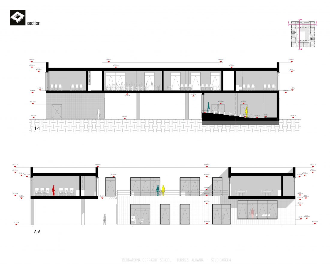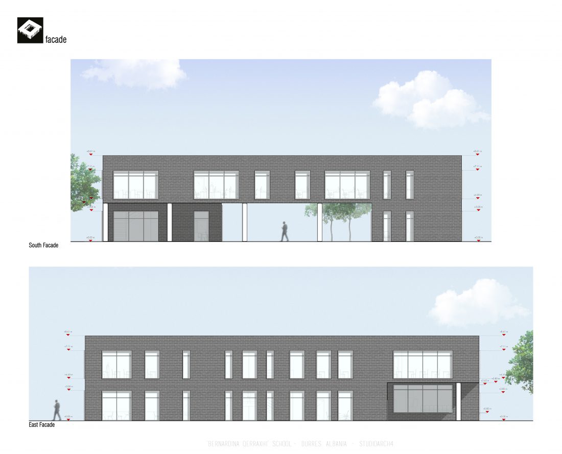 ‘Bernardina Qerraxhi’ school, the professional sports national school, is located in Durrës. As a result of the earthquake on November 26, 2019, the building suffered major damage and needed to be reconstructed, following the new design standards and the provision of specific spaces for its sports character. The project includes the school building, a new gym and the dormitory space. The area offers the possibility of distributing these functions in different buildings giving the opportunity to design outdoor spaces which will serve and connect them. An important point in the design process is the combination of several spaces that can serve also the community, not just the students.