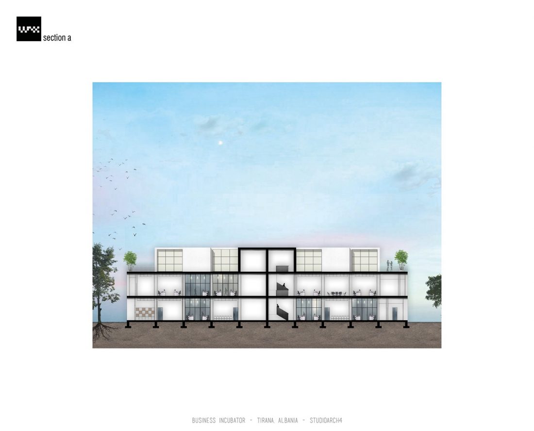 This business incubator hosts two main functions within itself. The east side of the building is a warehouse while the west side houses the offices into a 3 storey building.