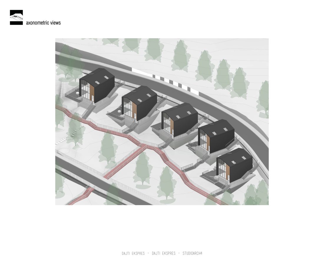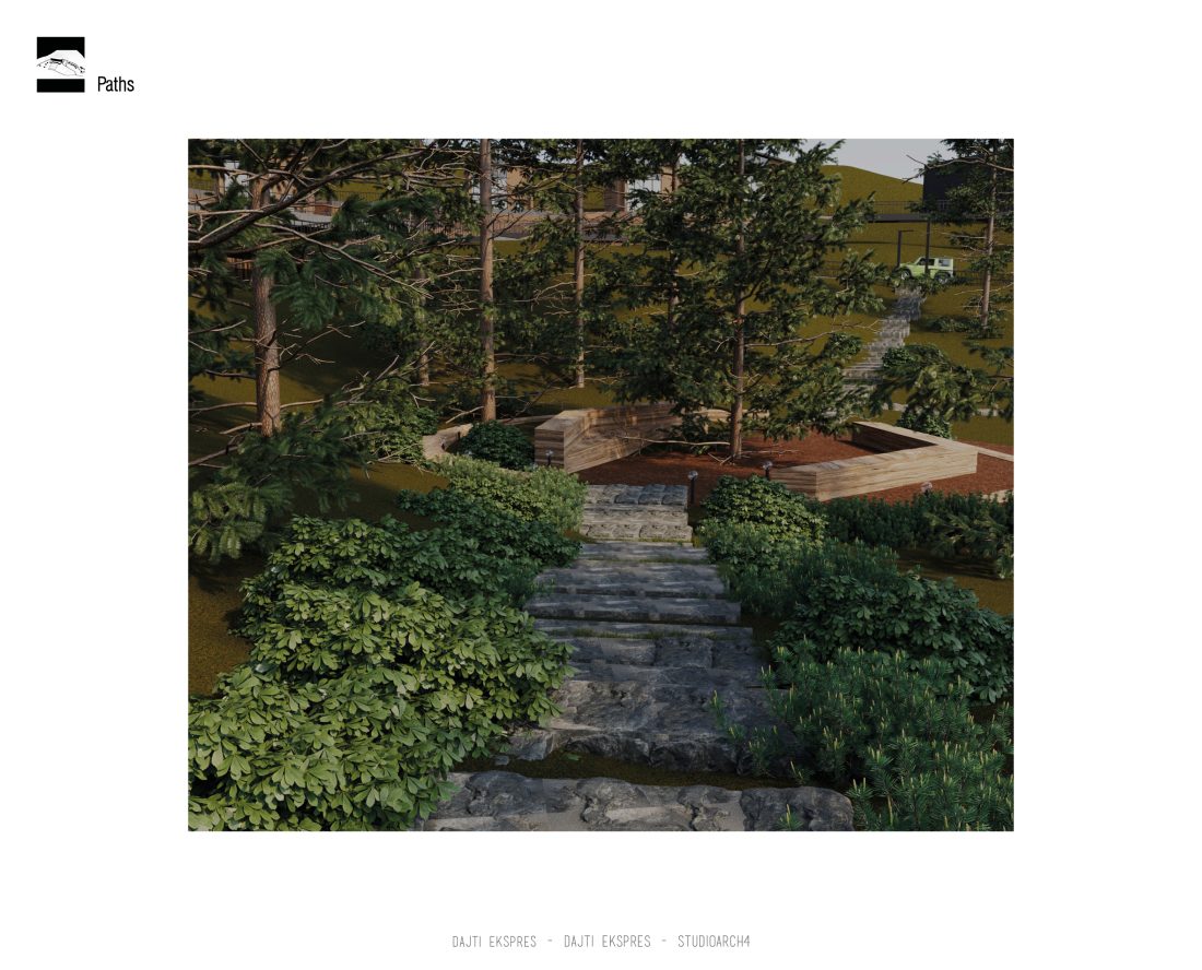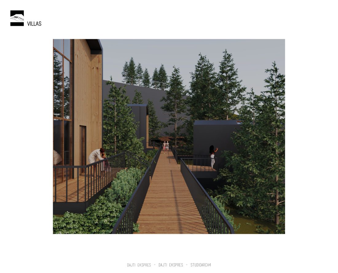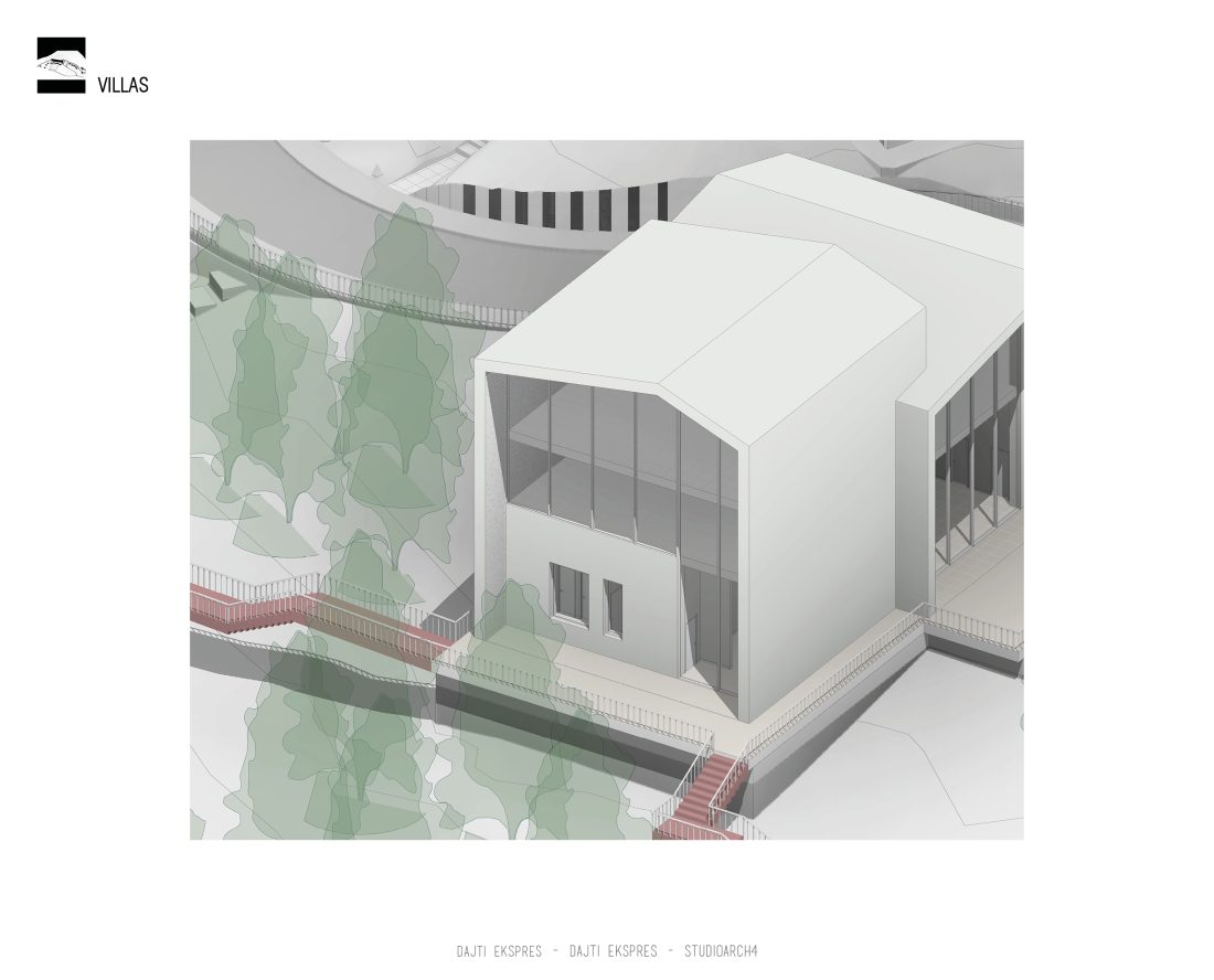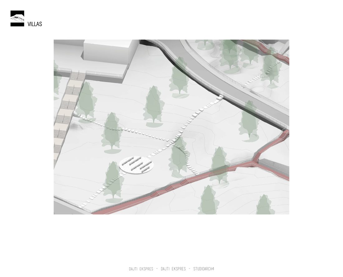 The design task in this project is the solution of the master plan for the park and the villas. The entire complex of villas and the hotel are located on the last sloping terrain with different quota differences which have been a challenge of the Design. Referring to the ways of intervention in the defined stages as well