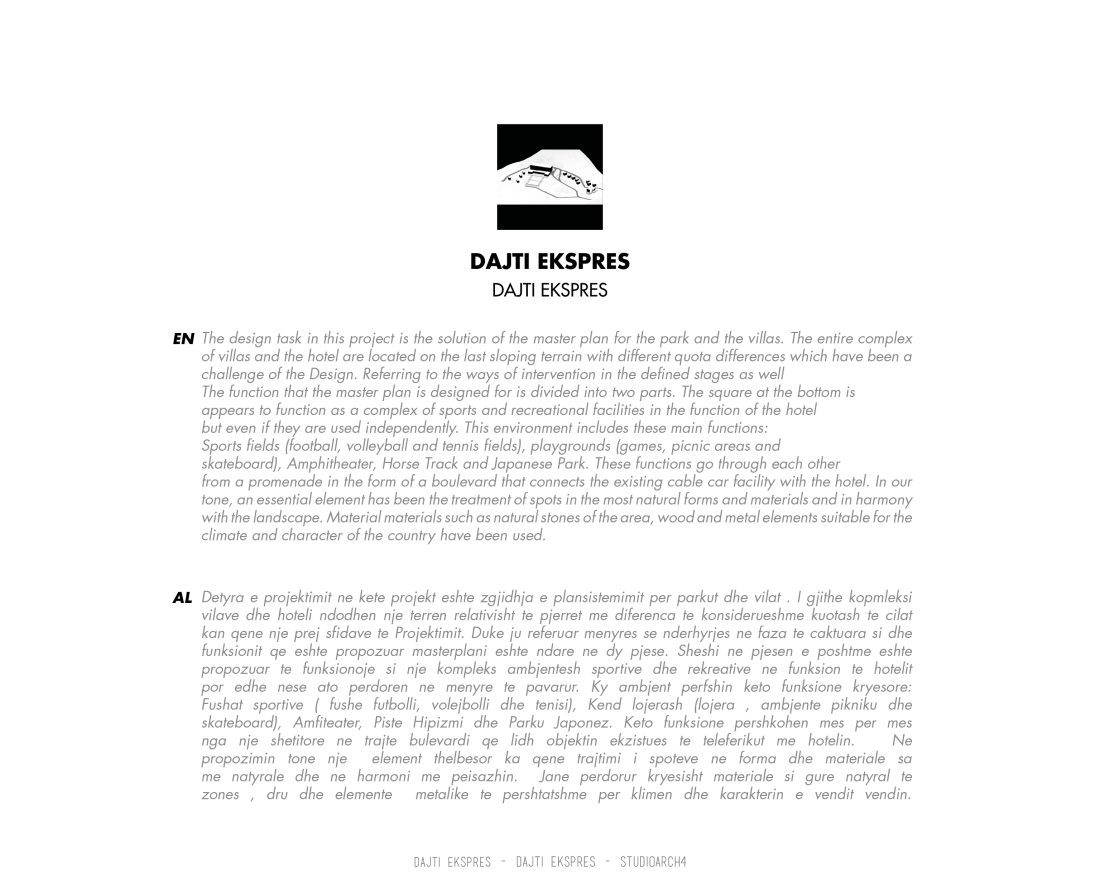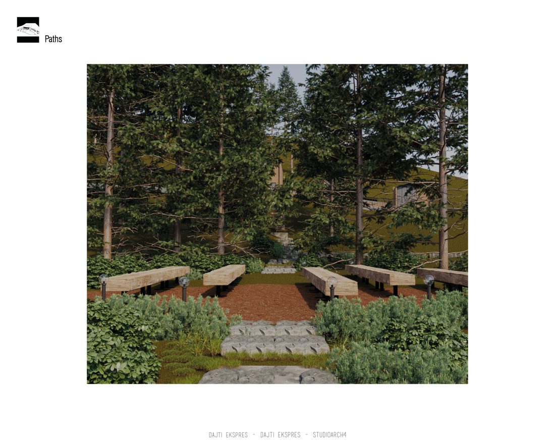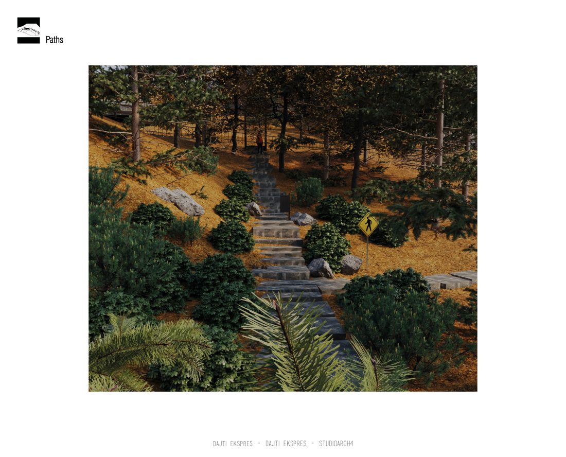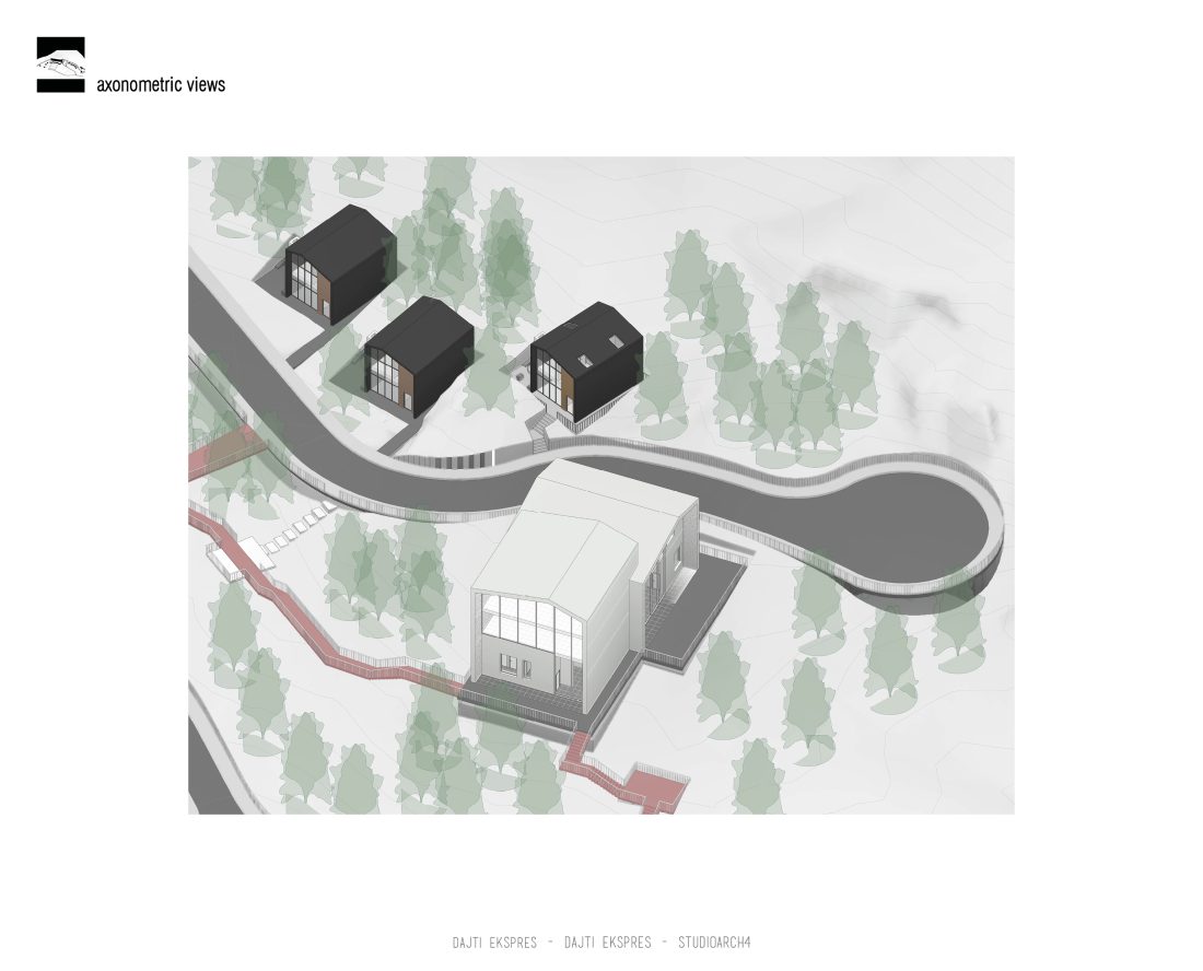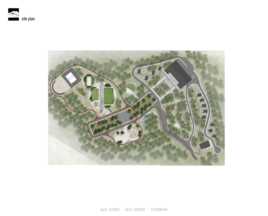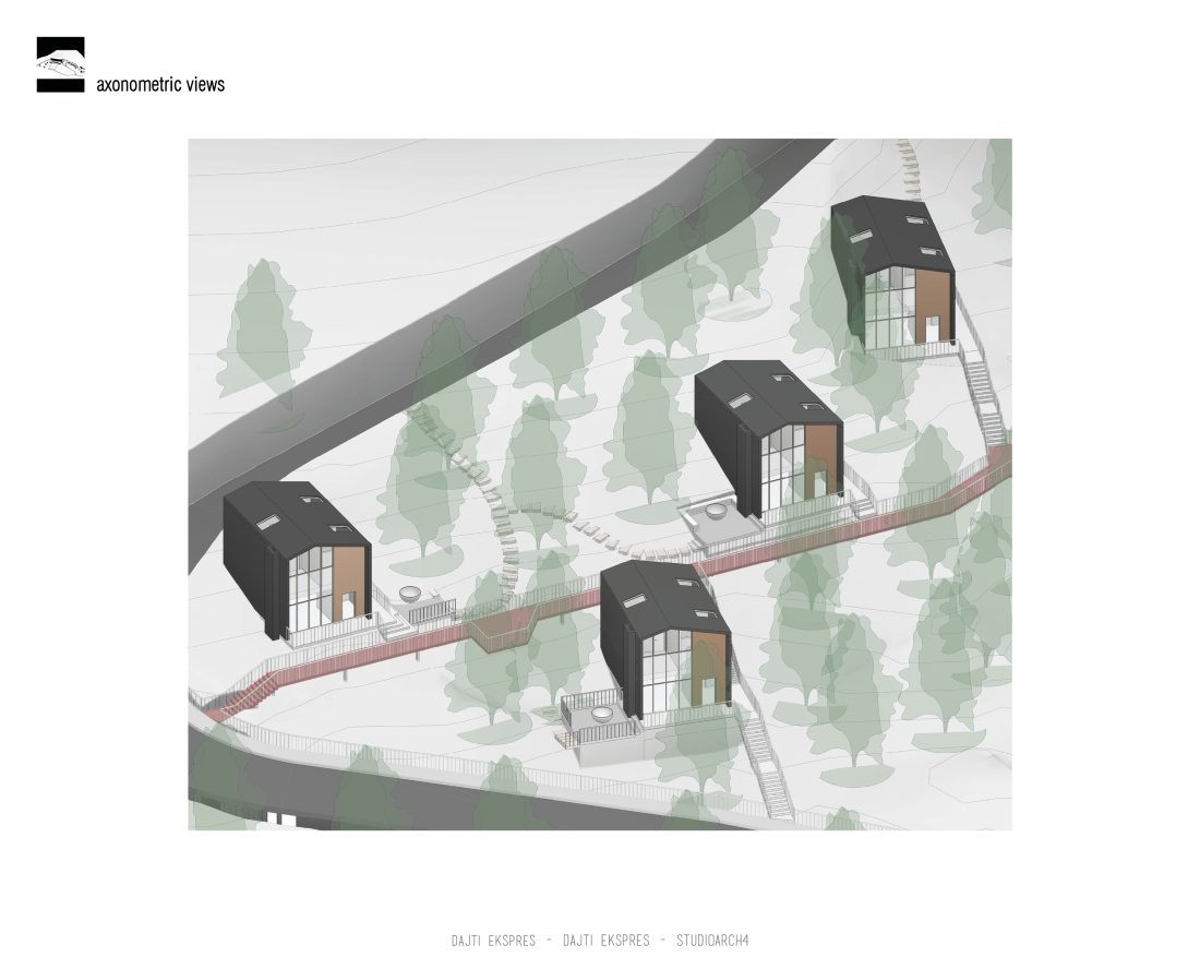 The design task in this project is the solution of the master plan for the park and the villas. The entire complex of villas and the hotel are located on the last sloping terrain with different quota differences which have been a challenge of the Design. Referring to the ways of intervention in the defined stages as well