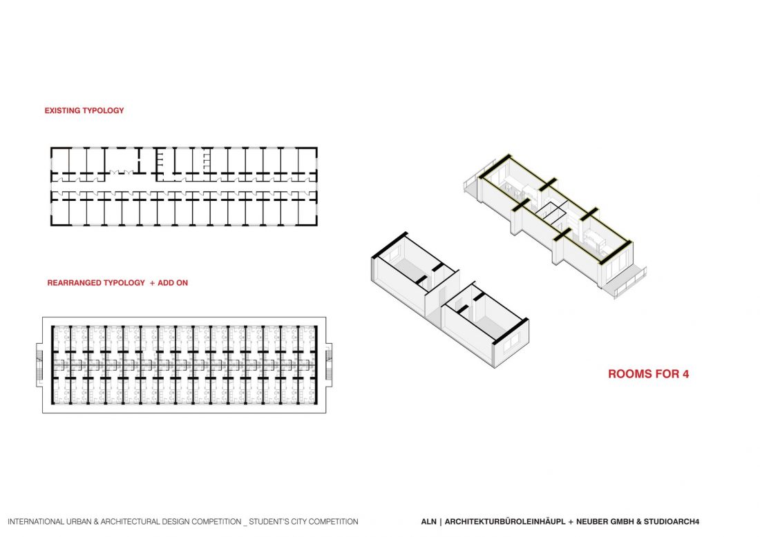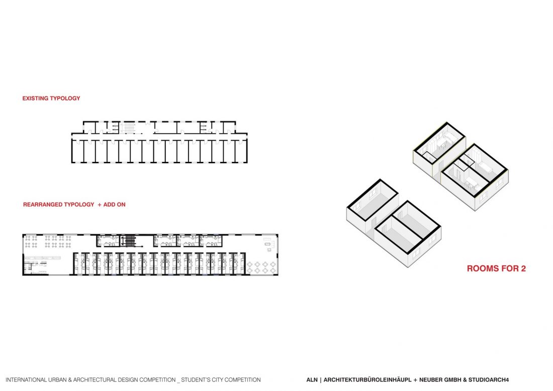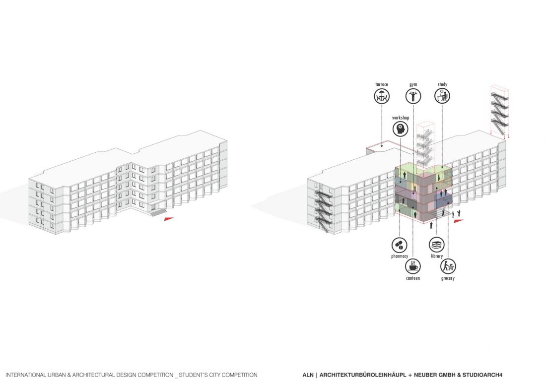 The first phase is the most urgent one, the reconstruction of the existing buildings. The reconstruction will include the addition of the Add-ons and the restoration of the existing dormitories. Even this phase in itself can be divided in sub-steps, which may include the intervention into different blocks of dormitories in different periods of time.