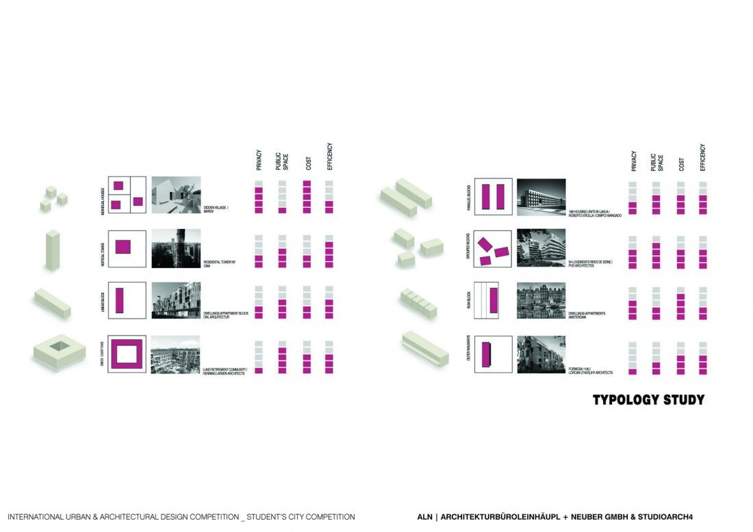 Some of the typologies are analyzed for some basic criteria: Privacy, public space, cost and efficiency.