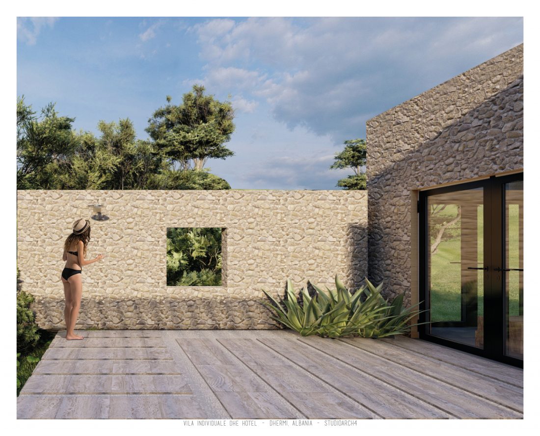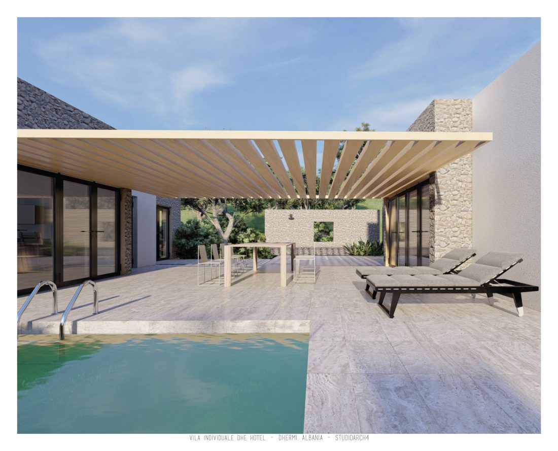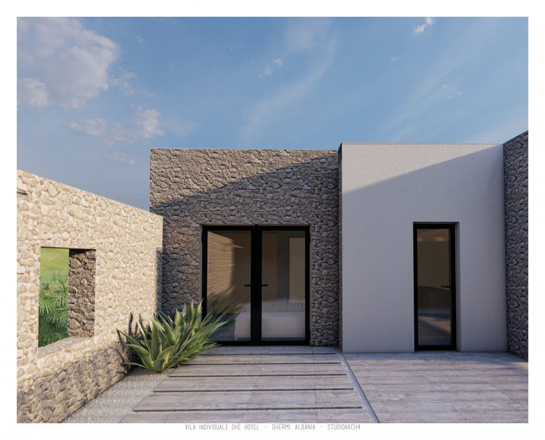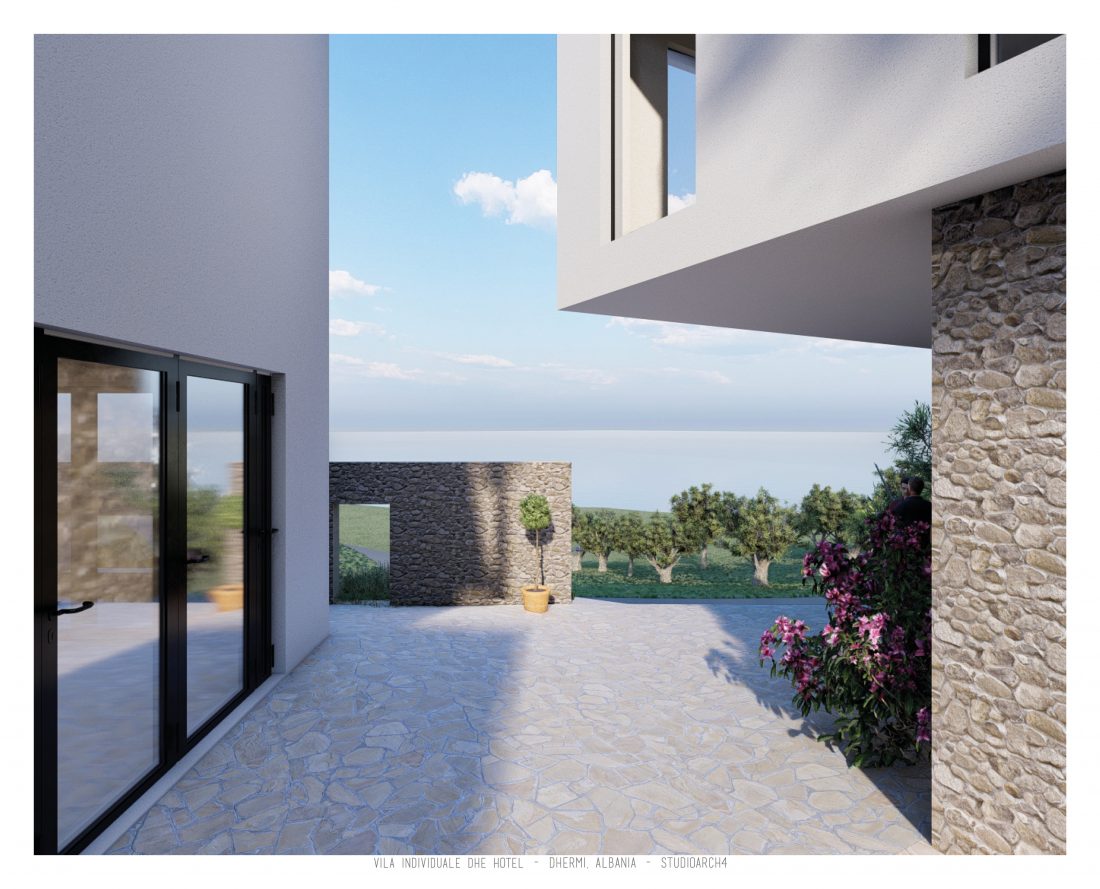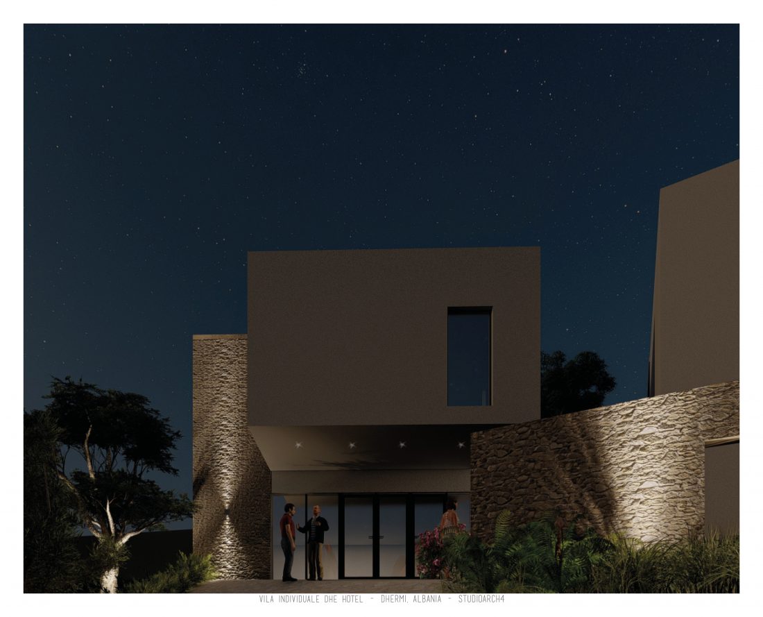 Ky projekt përbëhet nga një sërë vilash dhe një hoteli të vendosur në fshatin Dhërmi, në jug të Shqipërisë. Projekti synon të lidhë kërkesat e projektimit, një vendpushim turistik, me vendndodhjen, një kodër shumë e pjerrët me pamje nga deti. Prandaj lindi koncepti i vilave dhe i një hoteli më vete. Dizajni rrjedh nga fshati i vjetër i Dhërmiut, i cili i ka rrënjët në arkitekturën popullore. Rrugët që lidhin vilat ofrojnë sheshe të gjelbra për banorët. Materialet e përdorura janë guri, suva e bardhë dhe druri i lehtë për hijezim. Ekzistojnë pesë tipe vilash: a) komode, b) mesatare, c) e madhe, d) luksoze dhe e) vila familjare – në raste kur ka më shumë se një familje në pushim. Vëmendje e veçantë i kushtohet hapësirës së jashtme të çdo vile me një pishinë dhe tarracë të gjelbëruar. Hapësira e jashtme është e kufizuar nga segmente mur guri, duke kujtuar arkitekturën lokale. Këto mure ofrojnë privatësi, por janë të pajisura me hapje për pamje direkte nga deti. Brendësia e vilave janë me mure me të bardhë, hapje harku dhe dritare të mëdha për ndriçim natyral. Çdo vilë ka kuzhinë dhe ngrënie, dhoma të mëdha ndenjeje gjumi për të akomoduar banorët për një qëndrim afatgjatë. Shpërndarja e vilave përfiton nga terreni i pjerrët për pamje nga deti dhe përzierja e vilave rrit ndjesinë e komunitetit. Për të pasur një gjurmë më të vogël, hoteli ndahet në tre vëllime. Çdo vëllim ka një funksion kryesor: restorant, bar, dhoma për mysafirët dhe zona shërbimi. Pishina e hotelit është në një kuotë më të lartë se vëllimet e tjera të hotelit duke mundësuar një pamje të drejtpërdrejtë nga pishina në det.
