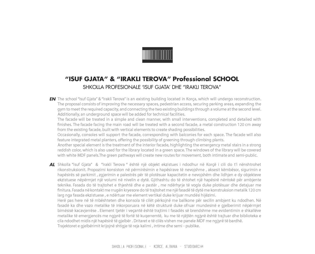 The school “Isuf Gjata” & “Irakli Terova” is an existing building located in Korça, which will undergo reconstruction.