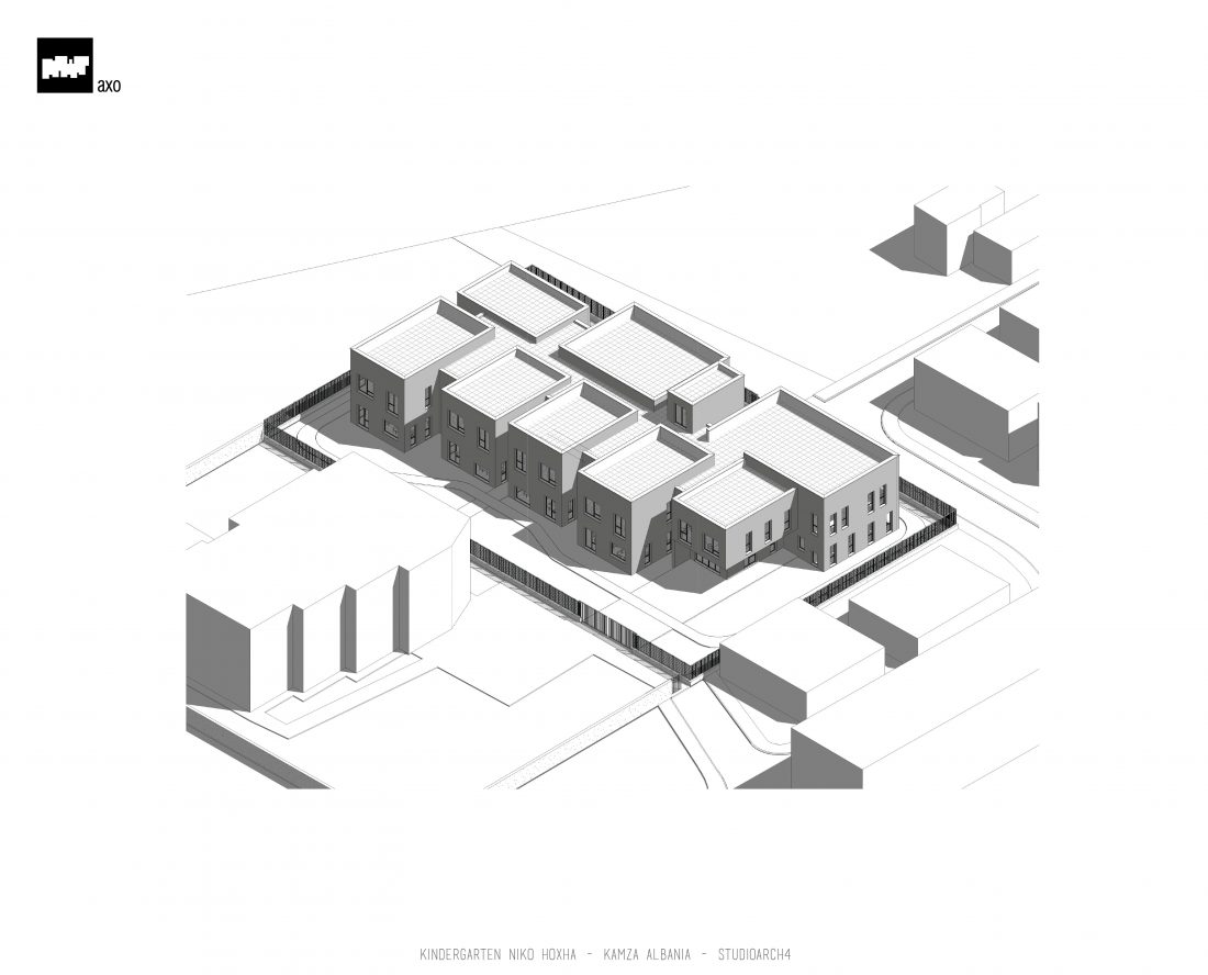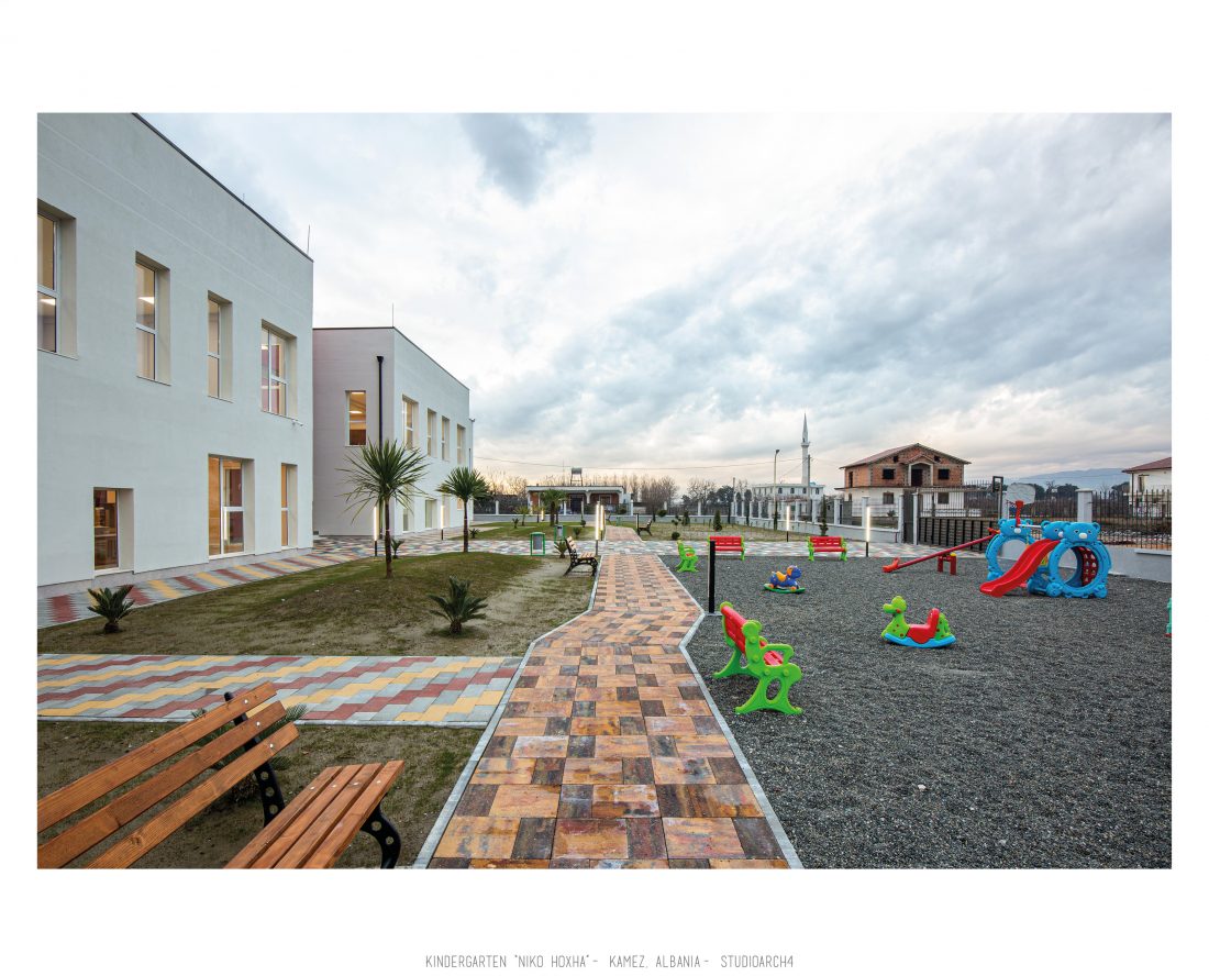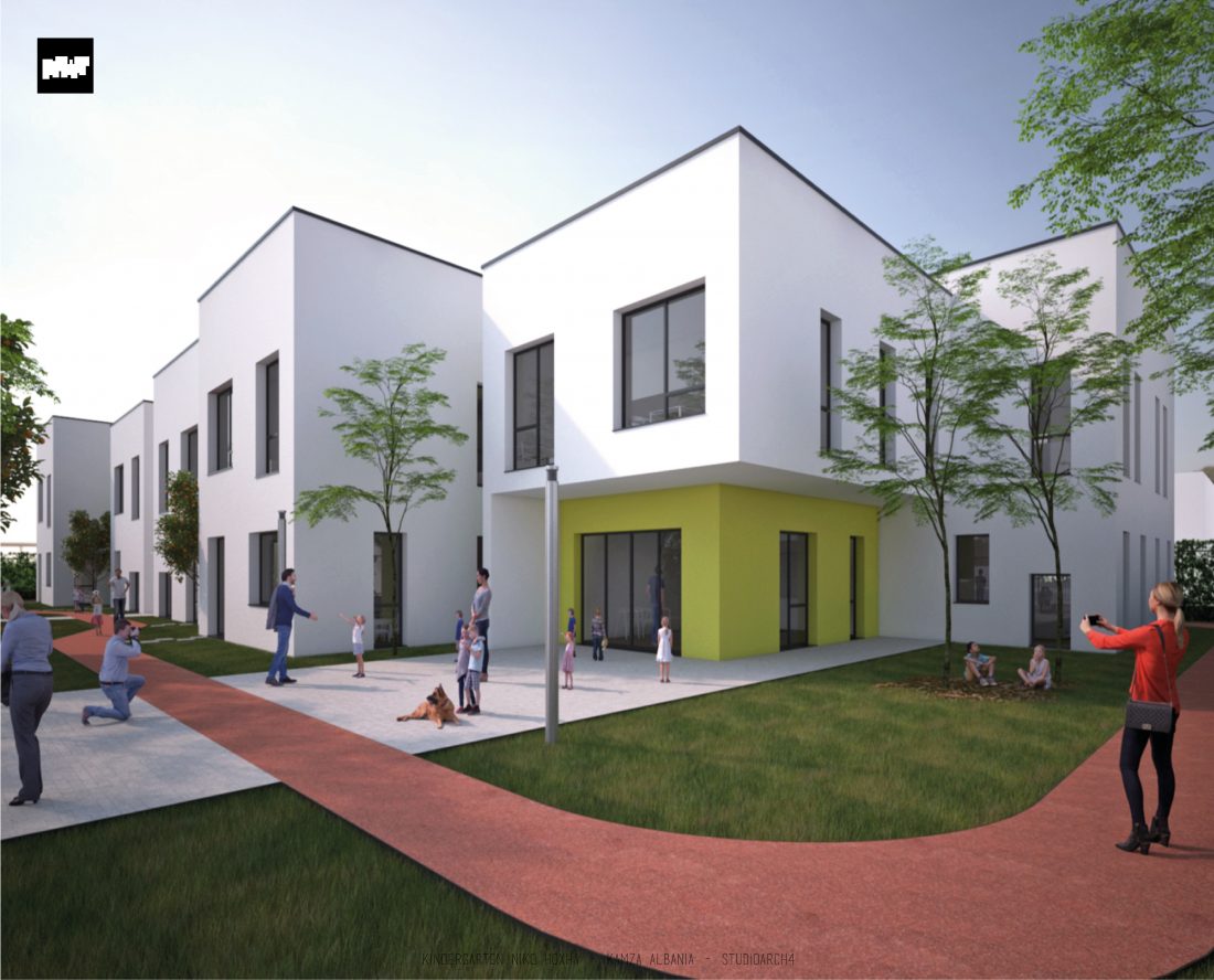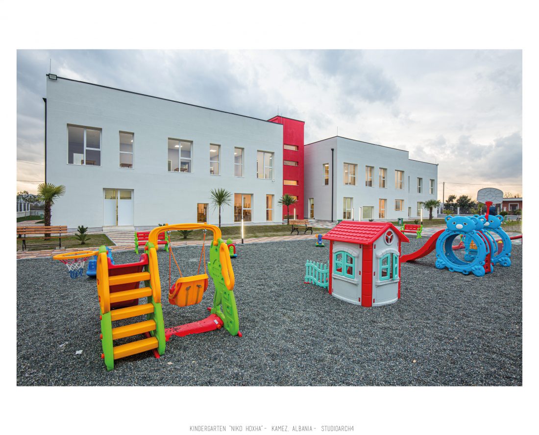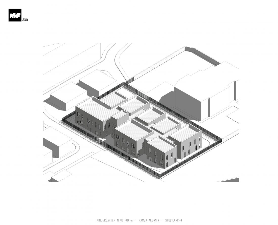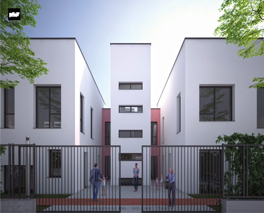 Kopshti “Niko Hoxha”, i cili gjendet në njësinë administrative Valias, bashkia Kamëz do të rindërtohet për të akomoduar 200 fëmijë. Intimiteti, modulariteti i funksioneve, tensioni midis, brënda dhe jashtë janë elementet të cilat gjeneruan konceptin dhe çuan në energjizimin e formës. Forma gjatësore e parcelës është derivuesi i parë dhe më pas i dha mundesinë tensioneve brënda dhe jashtë të gjenerojnë një formë kubike të pastër me zgjatime të funksioneve. Tërheqja e perimetrit mundeson krijimin e një hapësire intime brënda objektit duke e distancuar nga pjesa e zhurmshme urbane. Gjithashtu ndjeshmëria e formës është një tjetër tregues i thellimit të hyrjes së objektit.