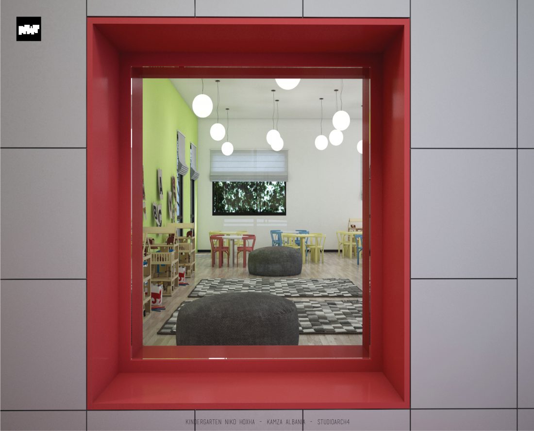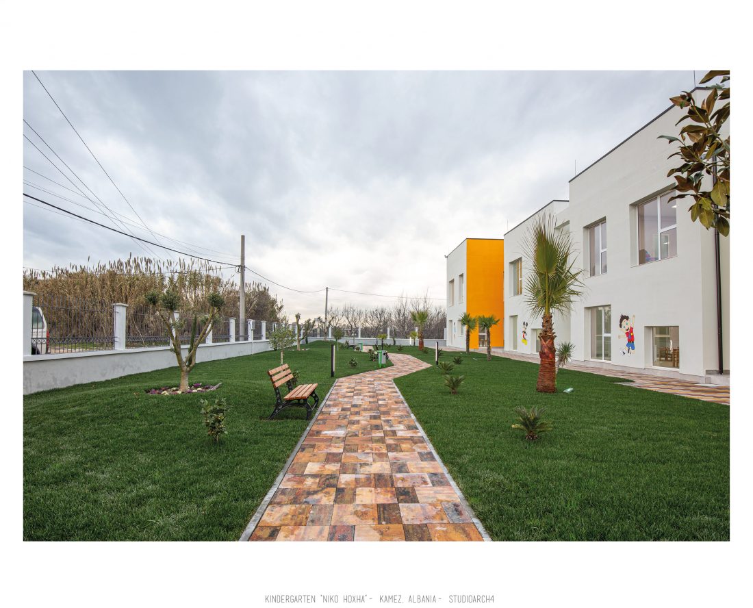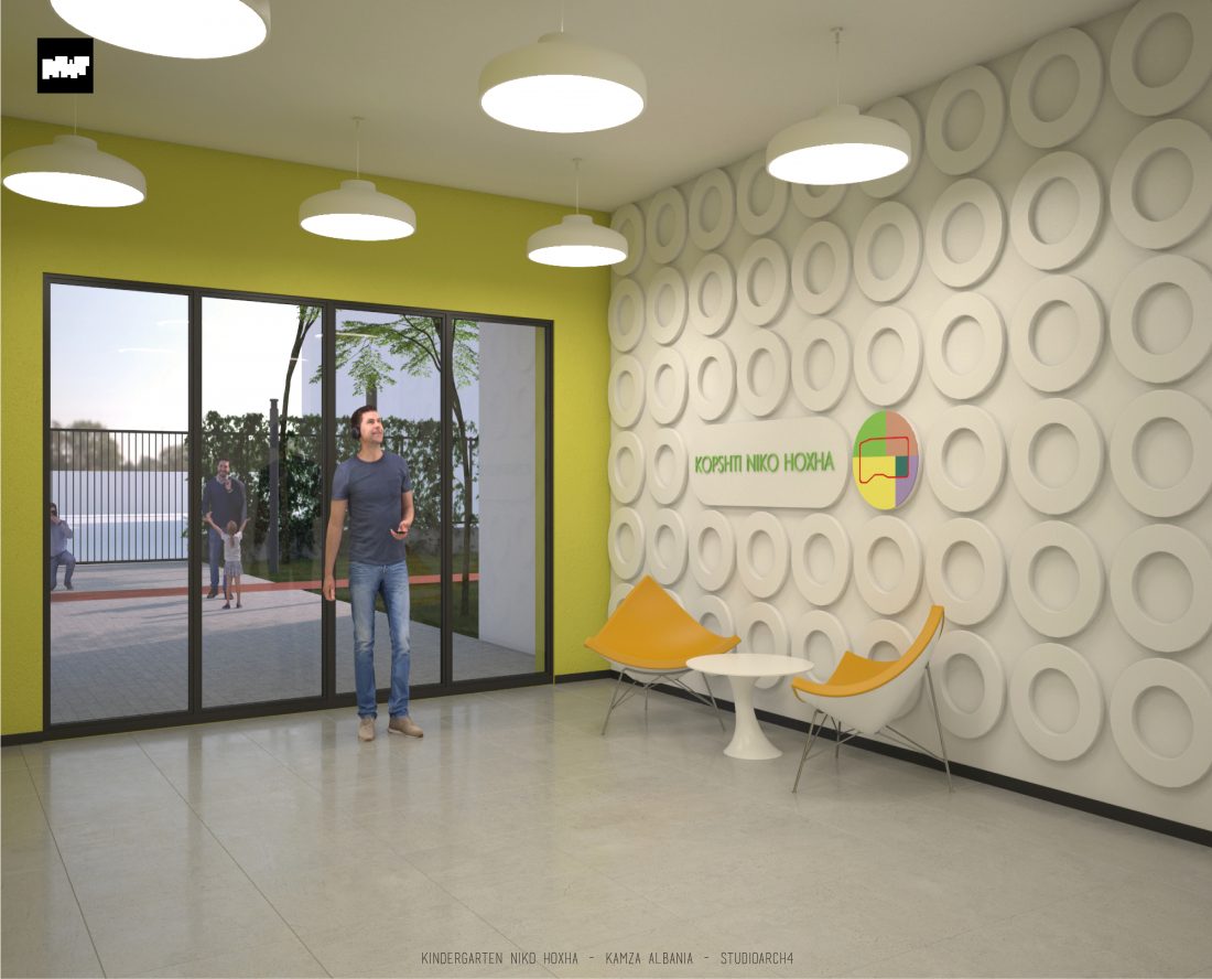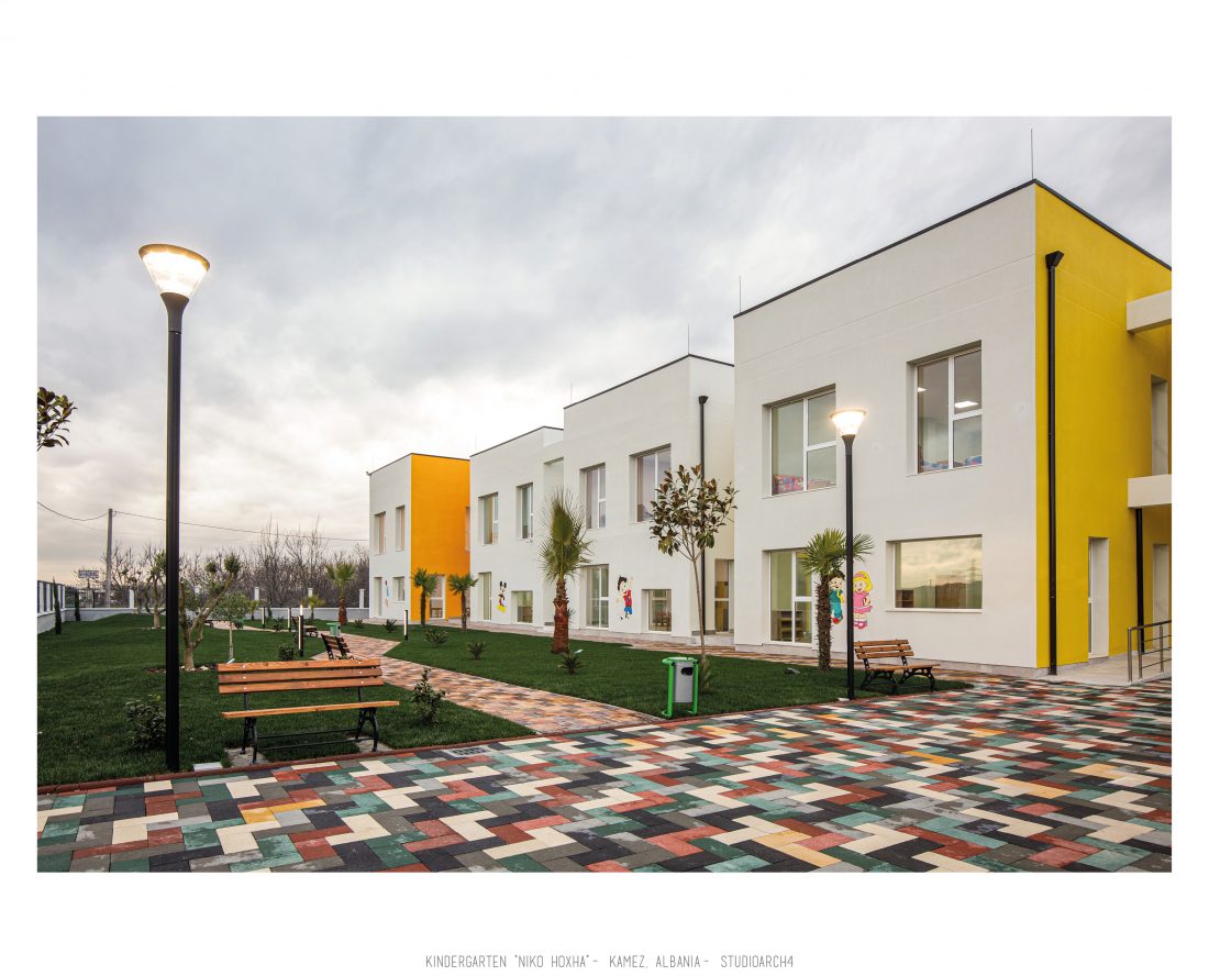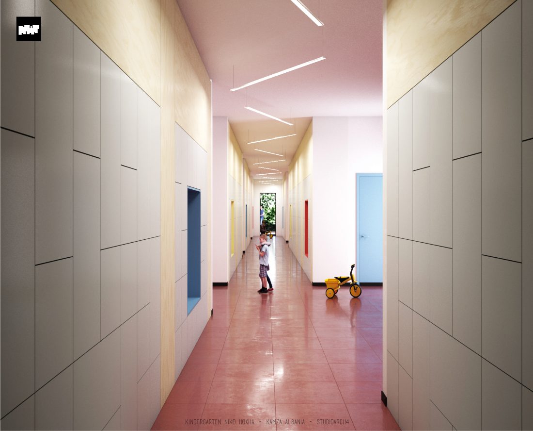Kopshti “Niko Hoxha”, i cili gjendet në njësinë administrative Valias, bashkia Kamëz do të rindërtohet për të akomoduar 200 fëmijë. Intimiteti, modulariteti i funksioneve, tensioni midis, brënda dhe jashtë janë elementet të cilat gjeneruan konceptin dhe çuan në energjizimin e formës. Forma gjatësore e parcelës është derivuesi i parë dhe më pas i dha mundesinë tensioneve brënda dhe jashtë të gjenerojnë një formë kubike të pastër me zgjatime të funksioneve. Tërheqja e perimetrit mundeson krijimin e një hapësire intime brënda objektit duke e distancuar nga pjesa e zhurmshme urbane. Gjithashtu ndjeshmëria e formës është një tjetër tregues i thellimit të hyrjes së objektit.