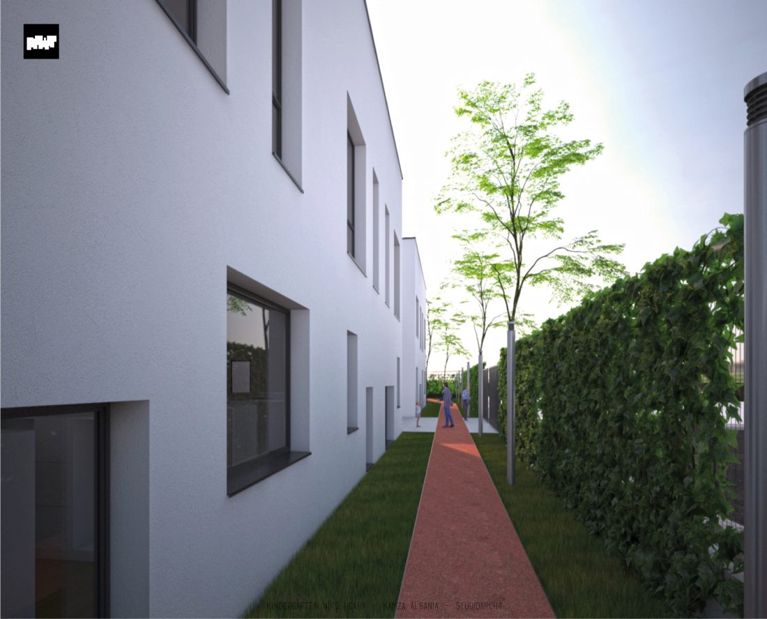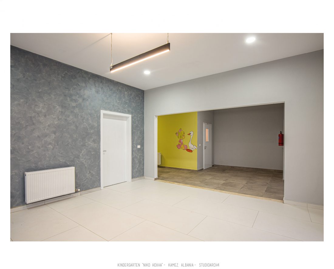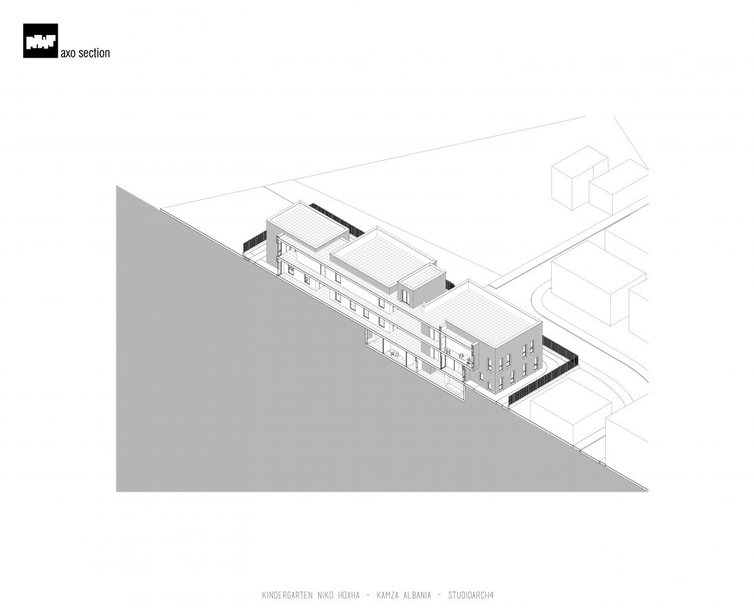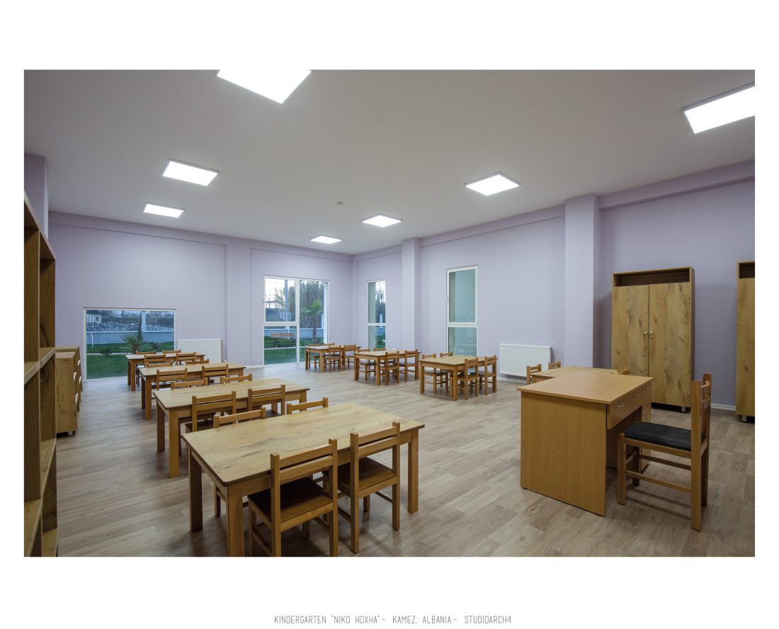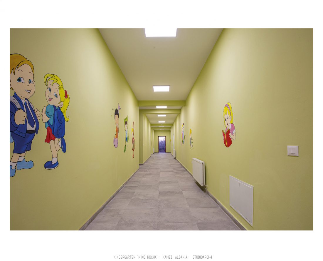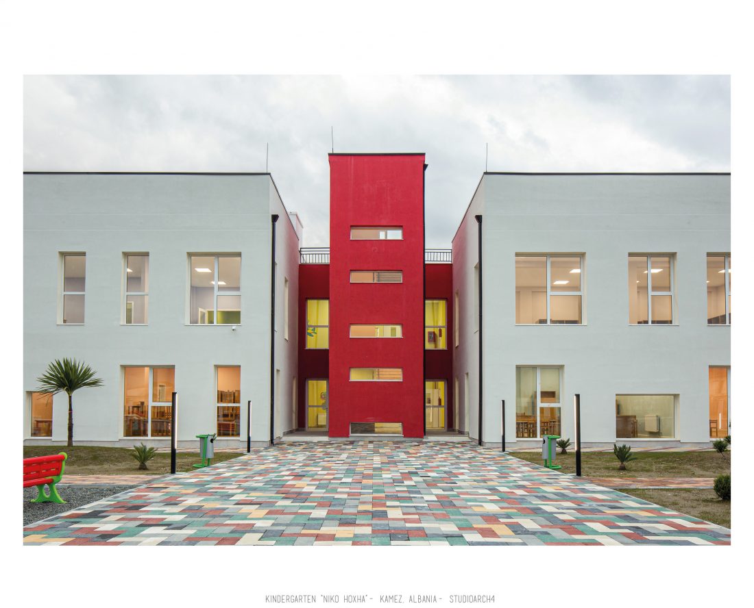 Kopshti “Niko Hoxha”, i cili gjendet në njësinë administrative Valias, bashkia Kamëz do të rindërtohet për të akomoduar 200 fëmijë. Intimiteti, modulariteti i funksioneve, tensioni midis, brënda dhe jashtë janë elementet të cilat gjeneruan konceptin dhe çuan në energjizimin e formës. Forma gjatësore e parcelës është derivuesi i parë dhe më pas i dha mundesinë tensioneve brënda dhe jashtë të gjenerojnë një formë kubike të pastër me zgjatime të funksioneve. Tërheqja e perimetrit mundeson krijimin e një hapësire intime brënda objektit duke e distancuar nga pjesa e zhurmshme urbane. Gjithashtu ndjeshmëria e formës është një tjetër tregues i thellimit të hyrjes së objektit.