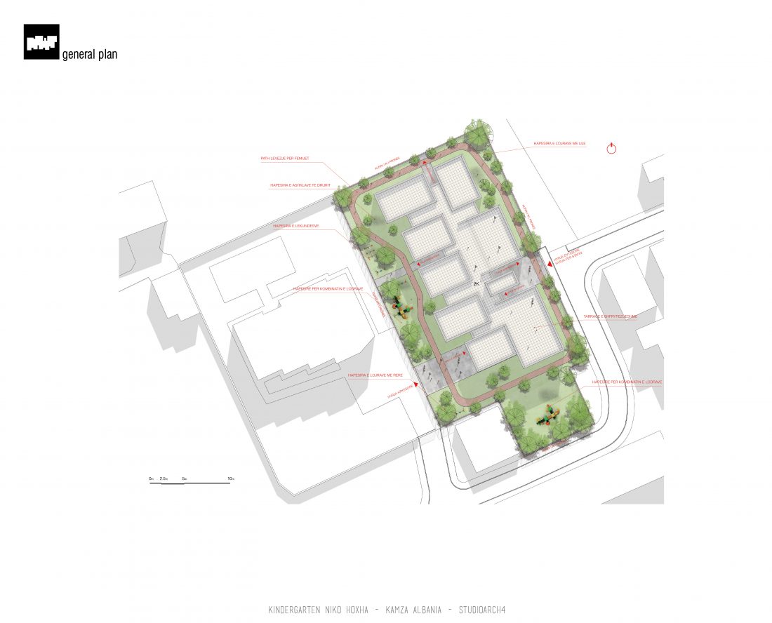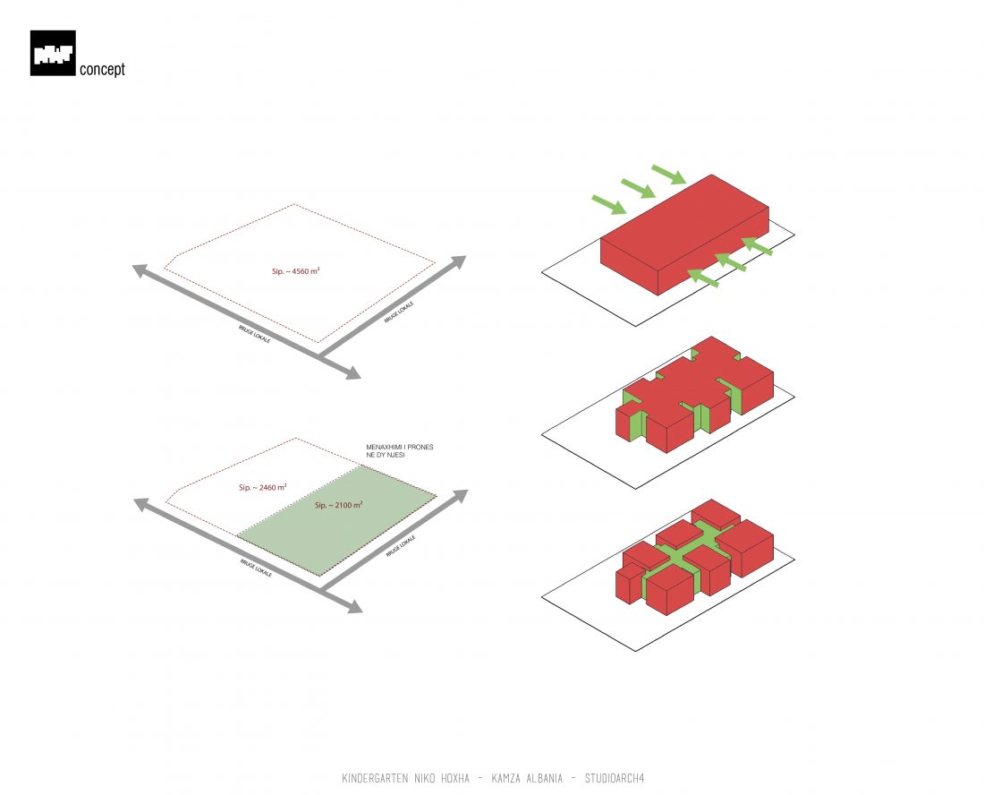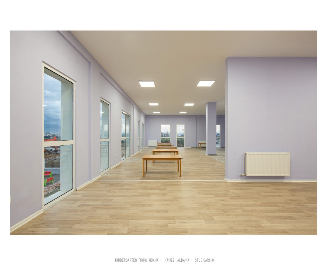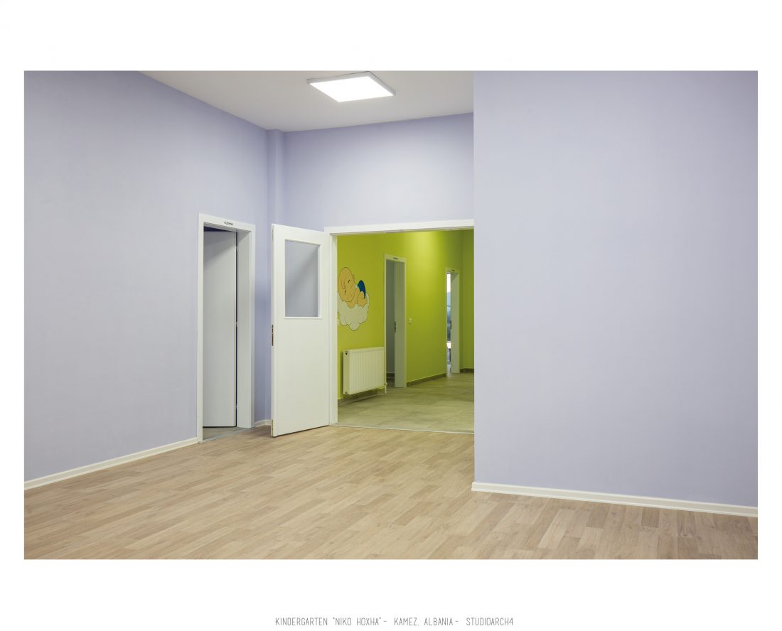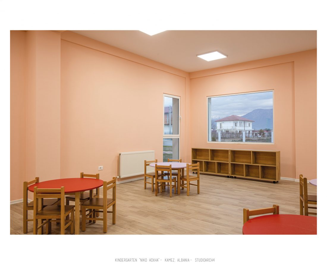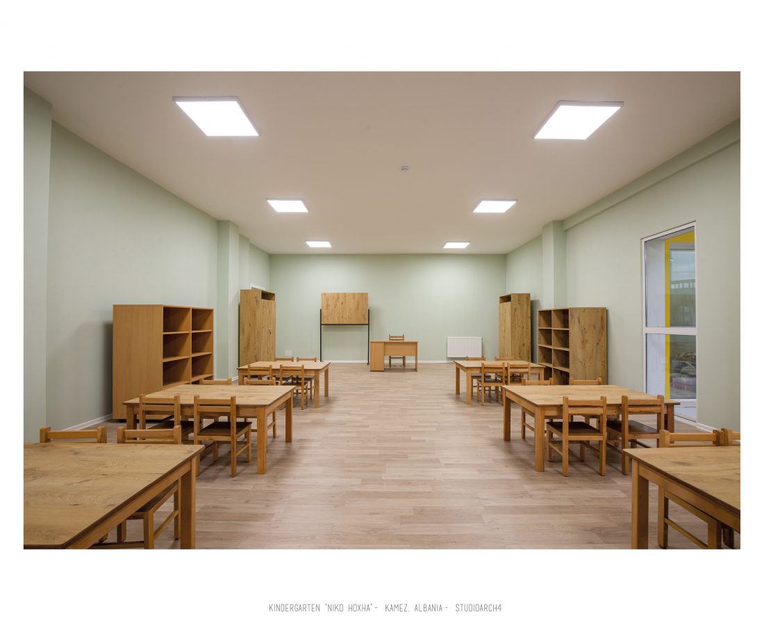 Kopshti “Niko Hoxha”, i cili gjendet në njësinë administrative Valias, bashkia Kamëz do të rindërtohet për të akomoduar 200 fëmijë. Intimiteti, modulariteti i funksioneve, tensioni midis, brënda dhe jashtë janë elementet të cilat gjeneruan konceptin dhe çuan në energjizimin e formës. Forma gjatësore e parcelës është derivuesi i parë dhe më pas i dha mundesinë tensioneve brënda dhe jashtë të gjenerojnë një formë kubike të pastër me zgjatime të funksioneve. Tërheqja e perimetrit mundeson krijimin e një hapësire intime brënda objektit duke e distancuar nga pjesa e zhurmshme urbane. Gjithashtu ndjeshmëria e formës është një tjetër tregues i thellimit të hyrjes së objektit.