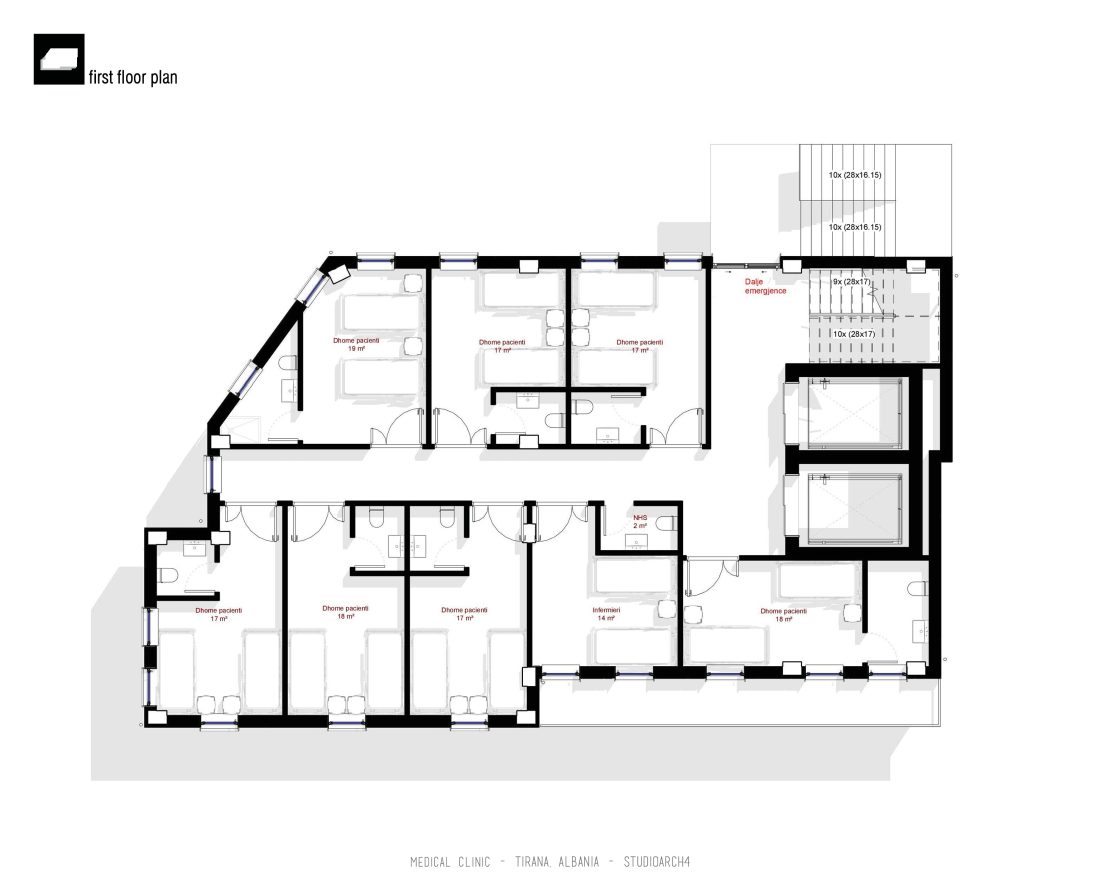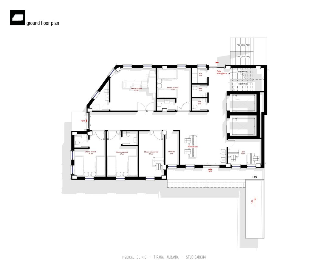 tokë janë propozuar recepsioni, dhoma për pacientët, dhoma ekzaminimi, infermieri, ambjent për skaner e