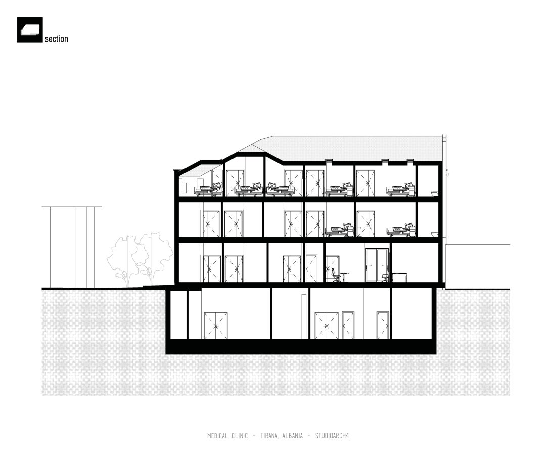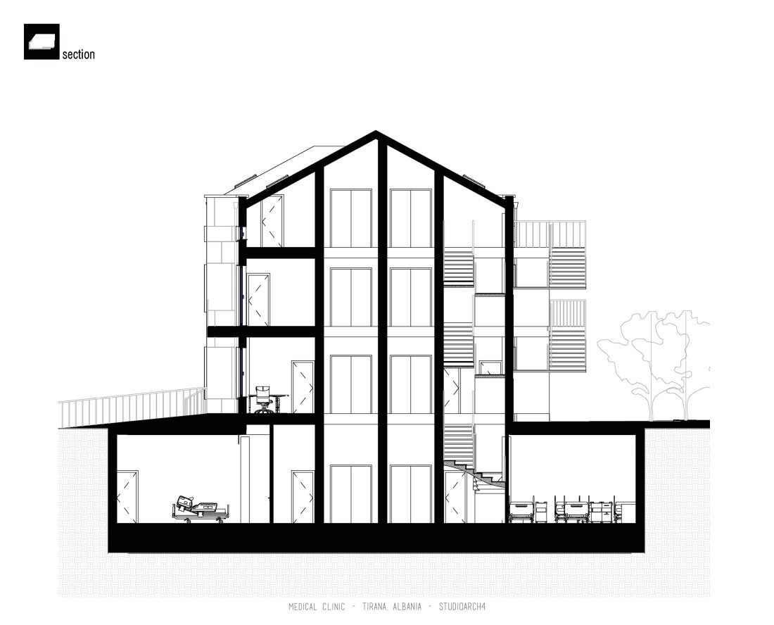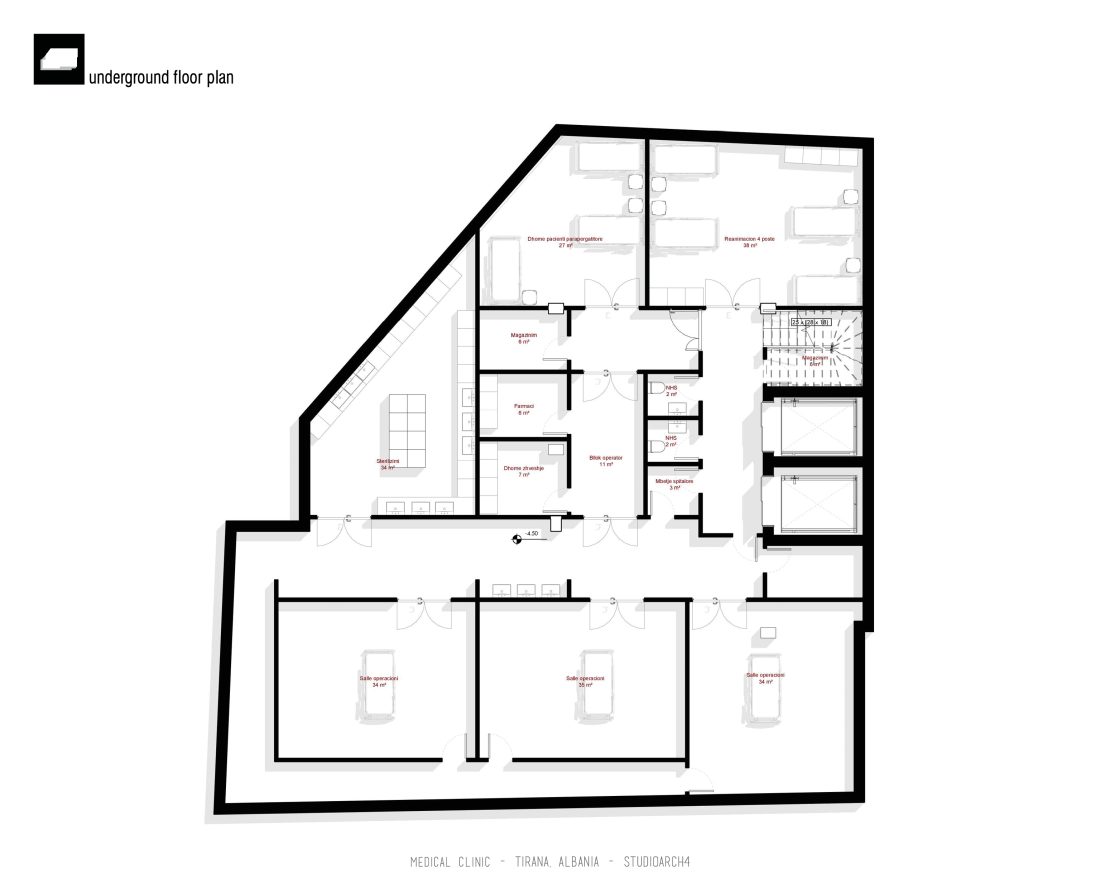 grafi, ndërsa në katet nëntokë janë propozuar sallat e operacionit, reanimacioni, salla parapërgatitore, si dhe
