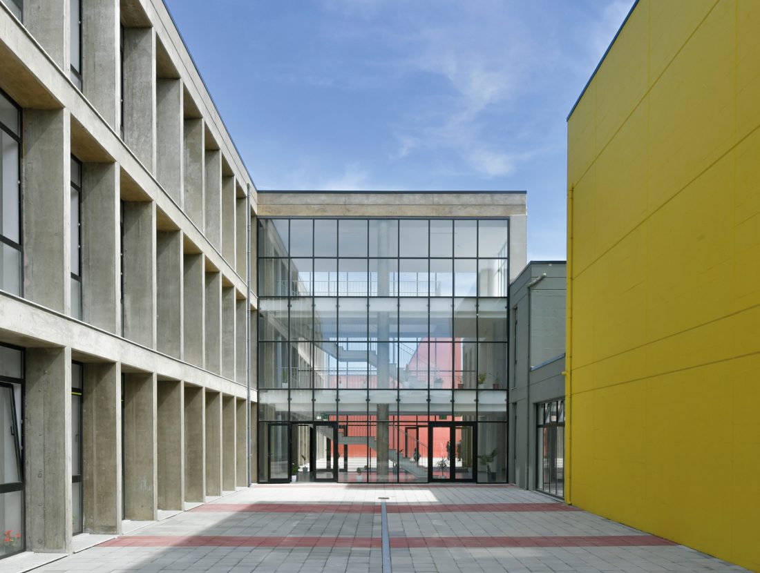 The volumetric concept of the design is based on the internal courtyard as a main feature. The whole shape of the school revolves around this courtyard. As a results, classes are positioned facing the internal courtyard therefore creating a quitter teaching space. Halls are positioned in the outer perimeter of the building.