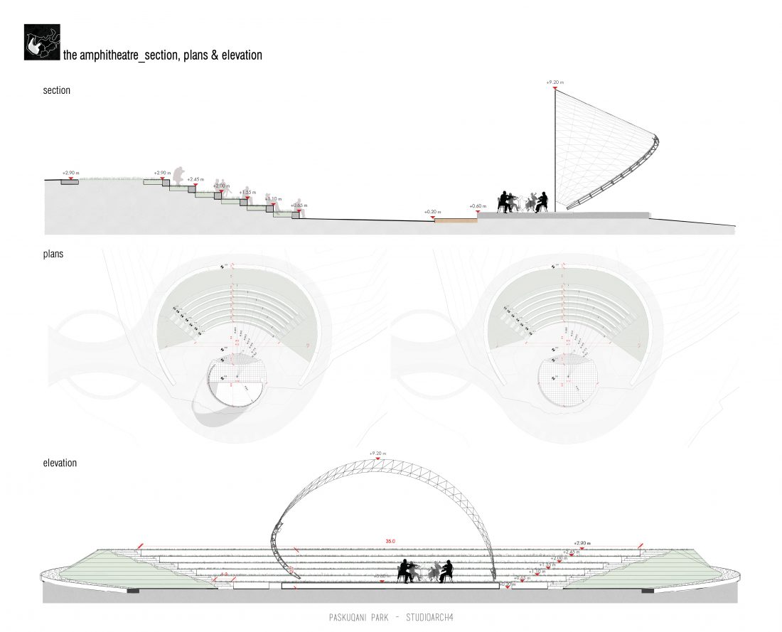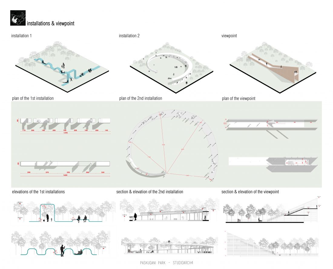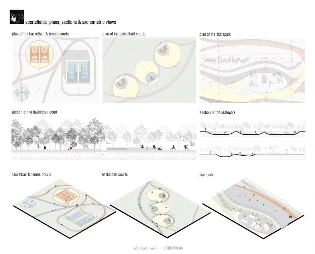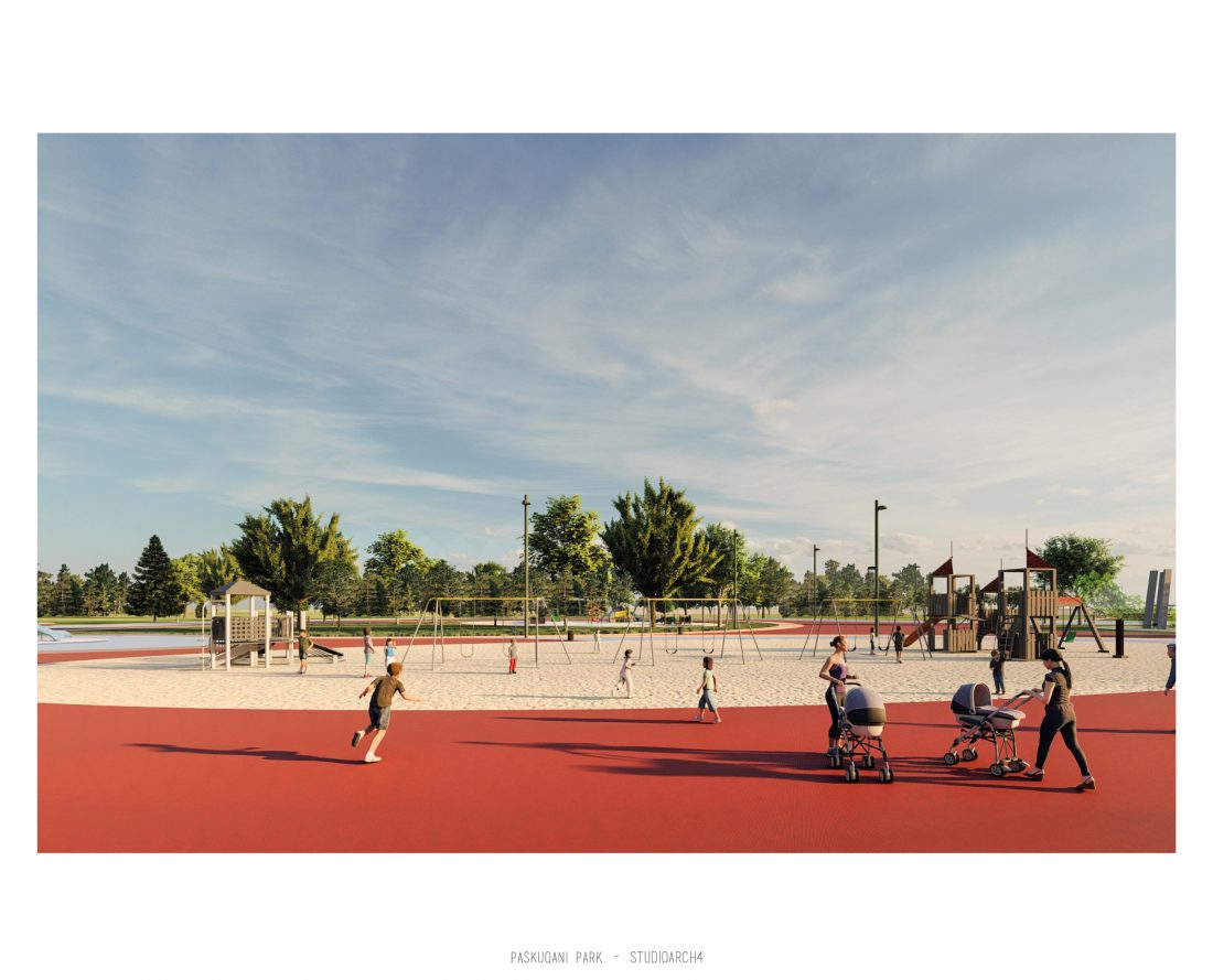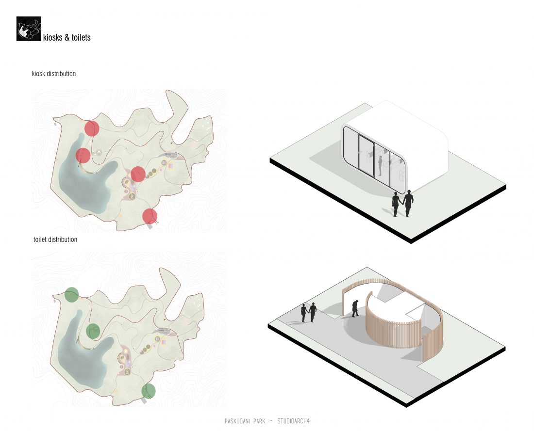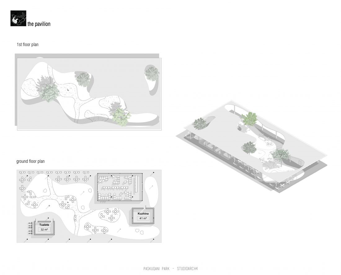 Paskquan Park, located in the Municipality of Kamza, is a project that seeks to transform the life of the surrounding community, but also that of the city of Tirana. The project aims to improve the existing quality of the space, the functionality of which has been affected over the years due to informality. Following the new enlarged trace of the lake, new itineraries have been designed: for pedestrians, running and cycling.They have their starting point in 3 main entrances: 1 from the municipality of Kamza and 2 from the Municipality of Tirana which follow the existing main roads. The perimeter is definied by buffer zones made of greenery and small gardens. Alongside the buffer zone, the designed glades offer various landscapes and atmospheres giving the Park a new and special identity, different from the massivity of the constructions around it. The proposed activities in the park are: