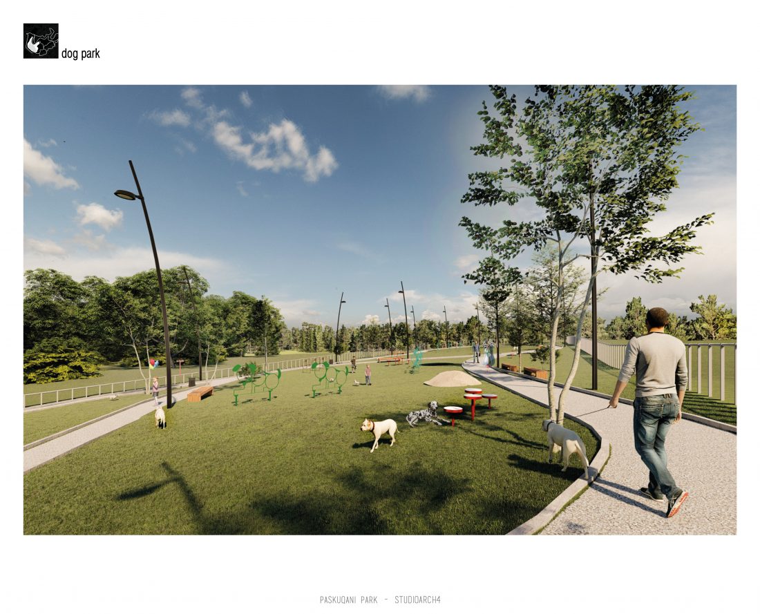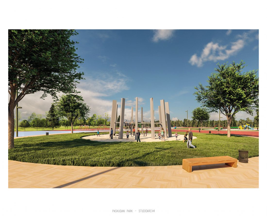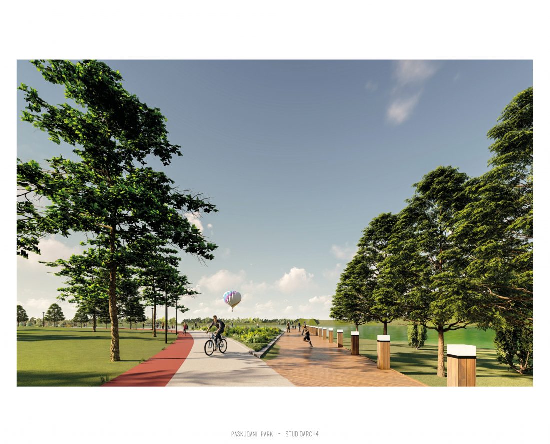 Parku i Paskquanit, i pozicionuar në Bashkinë Kamëz ,është një projekt që kërkon të transformojë jetën e komunitetit përreth, por edhe të qytetit të Tiranës. Projekti synon të përmirësojë cilësitë ekzistuese të hapësirës, së cilës ndër vite, për shkak të informaliteteve i është cënuar funksionaliteti. Duke ndjekur gjurmën e re të zmadhuar të liqenit, janë projektuar shtigjet e reja kryesore: këmbësore, të vrapimit dhe pedalimit, të cilat pikënisjen e kanë në 3 hyrje kryesore: 1 nga bashkia Kamëz dhe 2 nga Bashkia Tiranë të cilat ndjekin rrugët ekzistuese kryesore.Zona buferike perimetrale me gjelbërim të lartë, kopshte të vogla me të mbjella apo çiltirat e projektuara, krijojnë lloje të ndryshme peizazhesh dhe atmosferash duke i dhënë Parkut një identitet të ri e të veçantë, ndryshe nga masiviteti i ndërtimit përreth tij. Aktivitetet e propozuara në park janë: