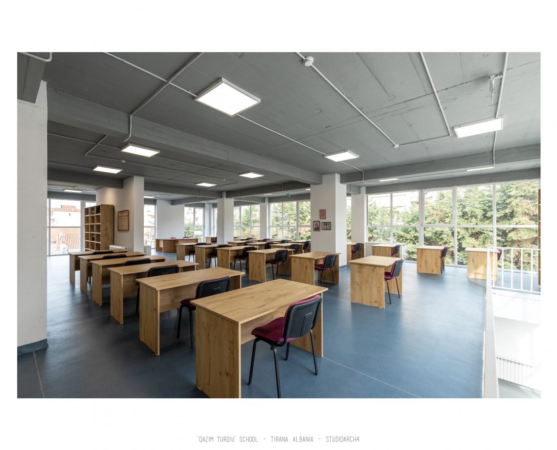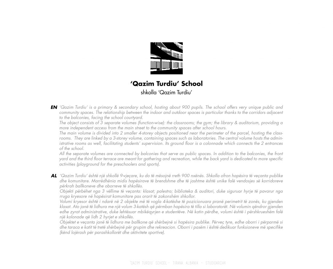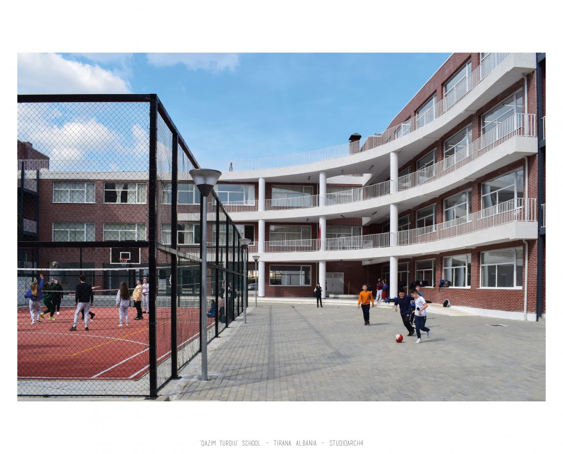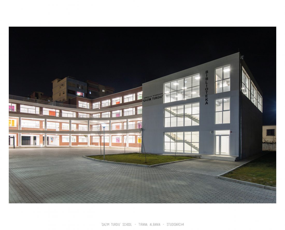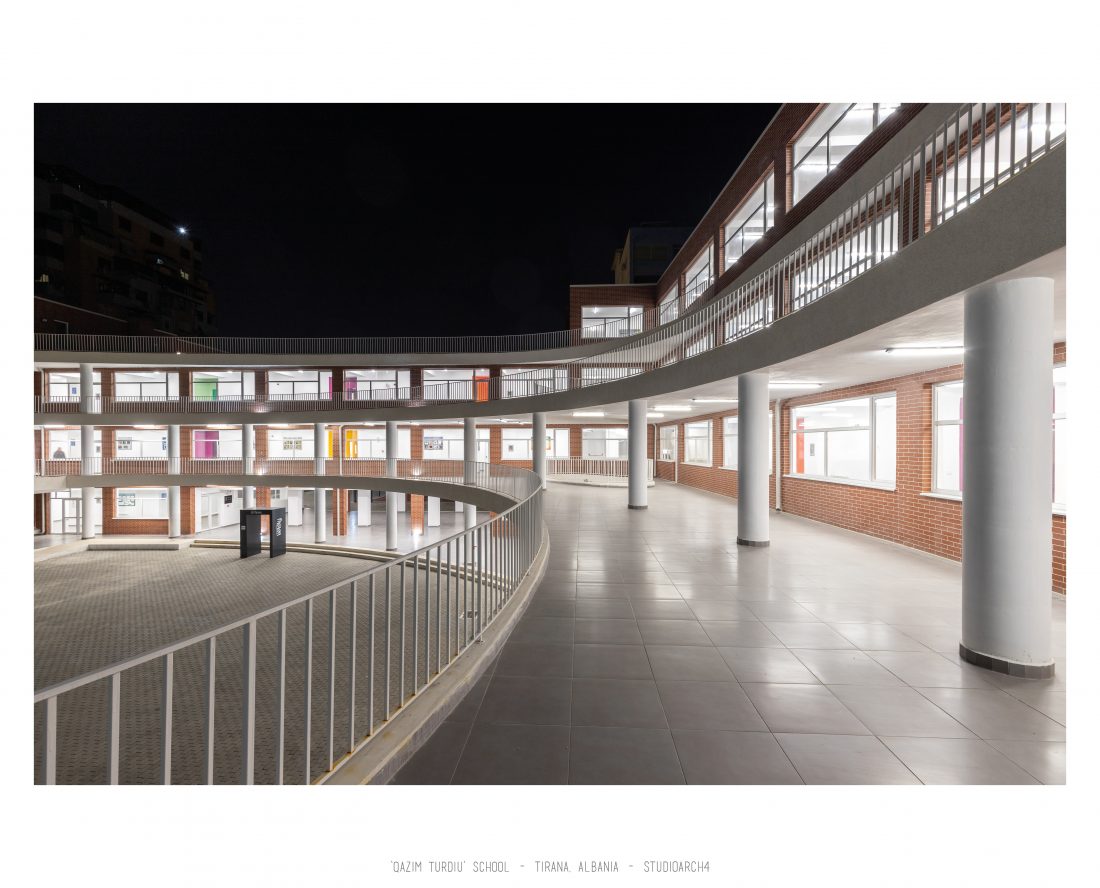 ‘Qazim Turdiu’ is a primary & secondary school, hosting about 900 pupils. The school offers very unique public and community spaces. The relationship between the indoor and outdoor spaces is particular thanks to the corridors adjacent to the balconies, facing the school courtyard.