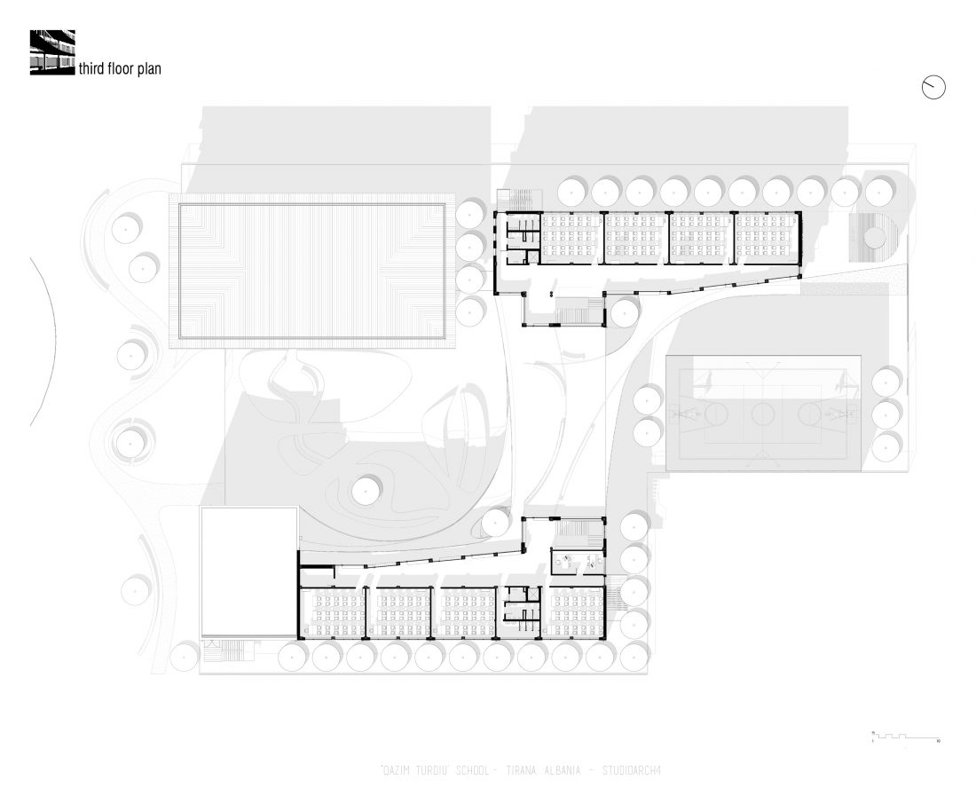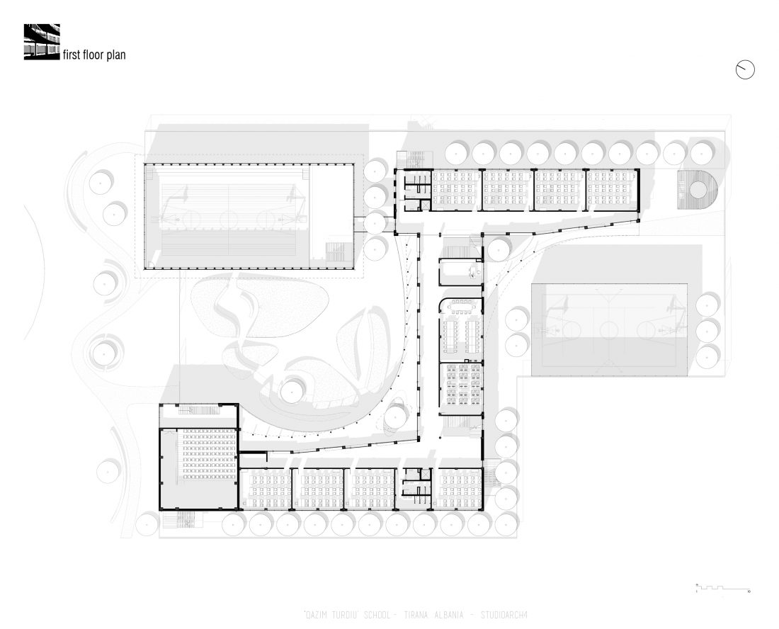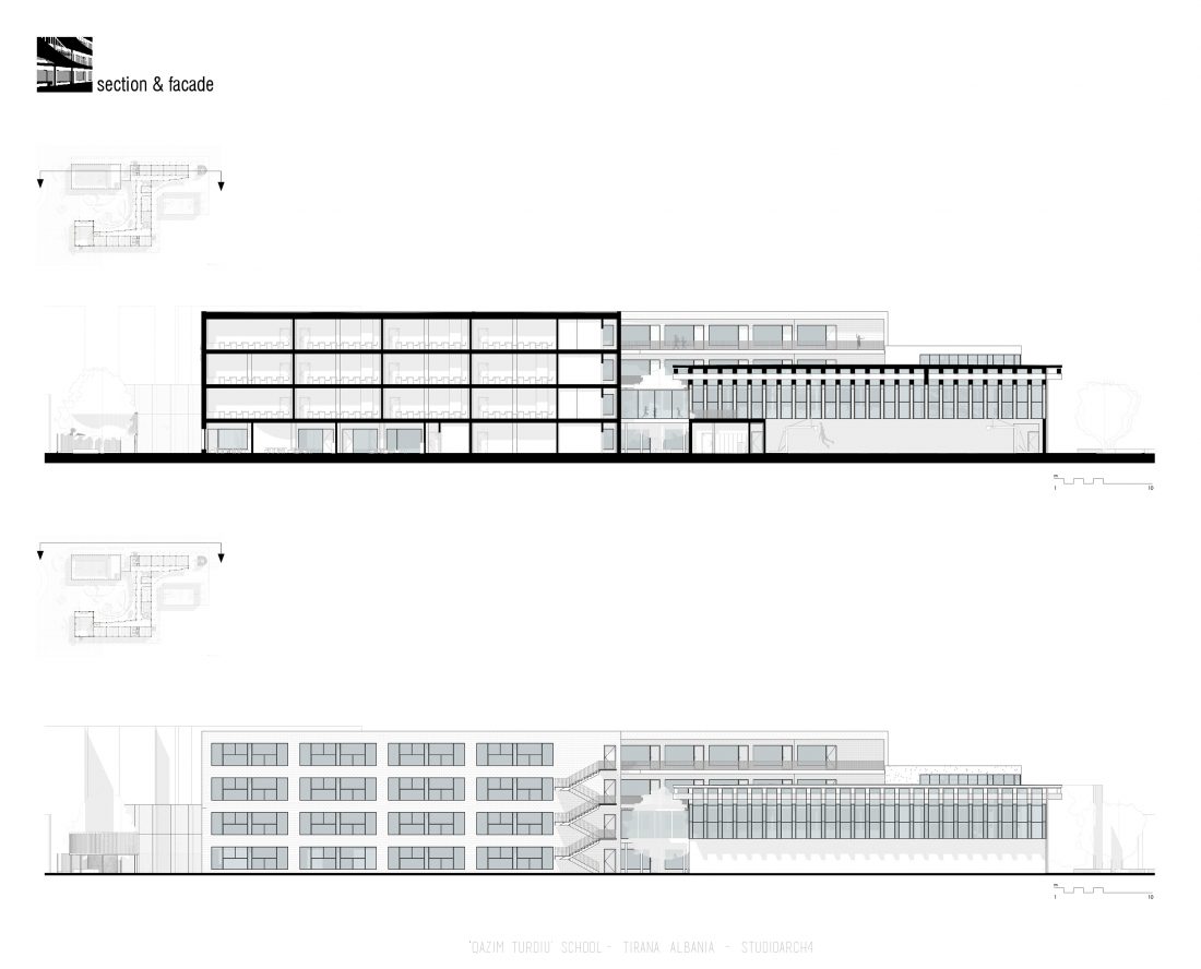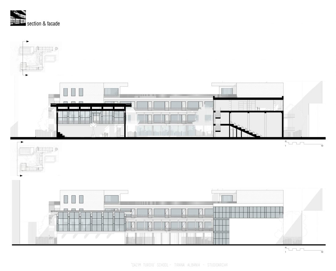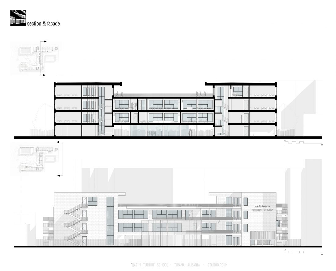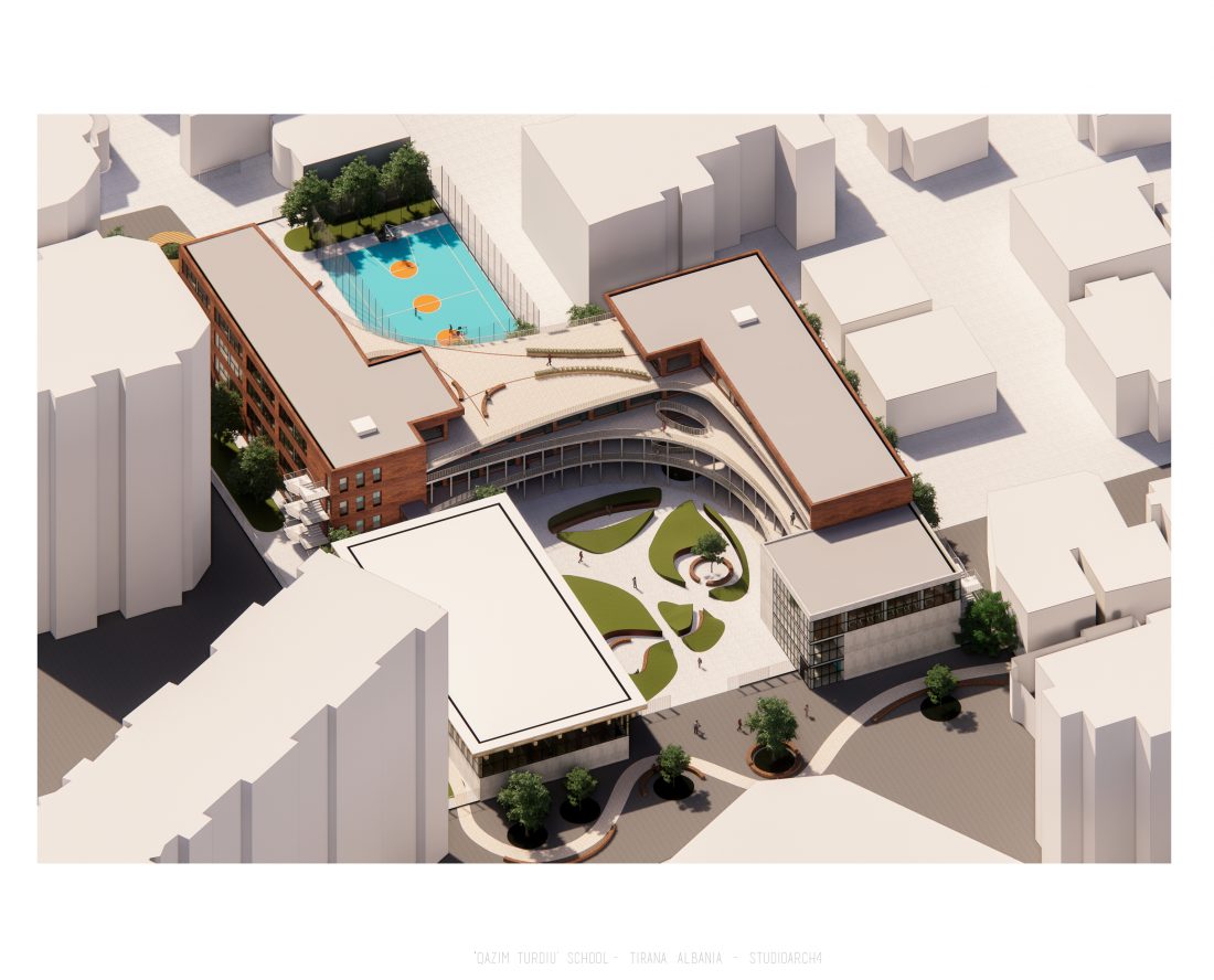 ‘Qazim Turdiu’ is a primary & secondary school, hosting about 900 pupils. The school offers very unique public and community spaces. The relationship between the indoor and outdoor spaces is particular thanks to the corridors adjacent to the balconies, facing the school courtyard.