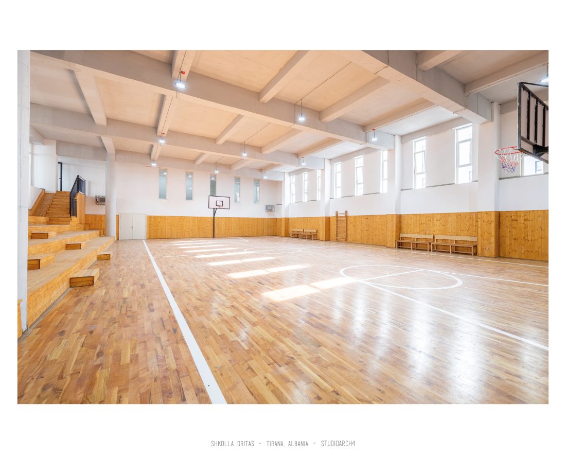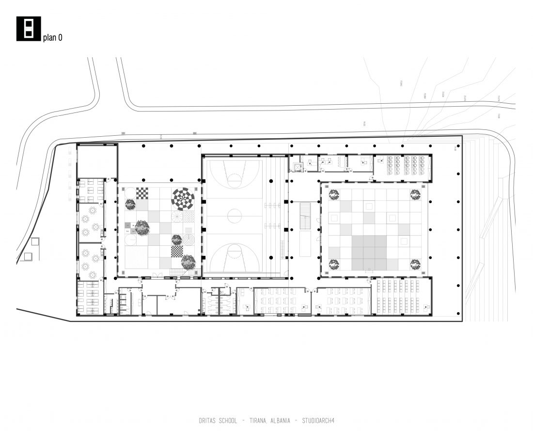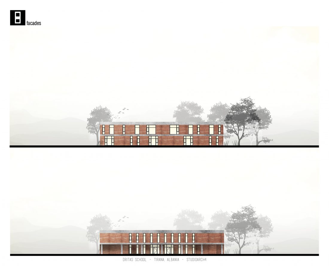 The project that will be developed for the Dritas school is a construction from scratch. The new building is 2 floors above ground and takes a regular rectangular geometric shape. Orientation follows the orientation of the land to be built, ie Southeast – Northwest. The new school building will also include pre-school classes for children of different levels.