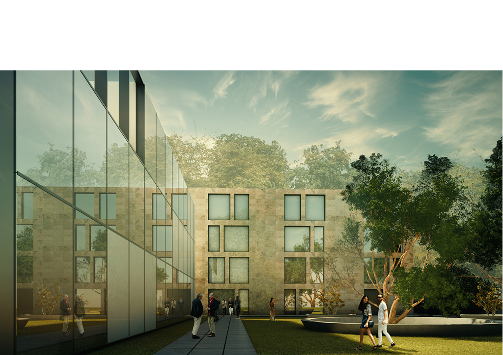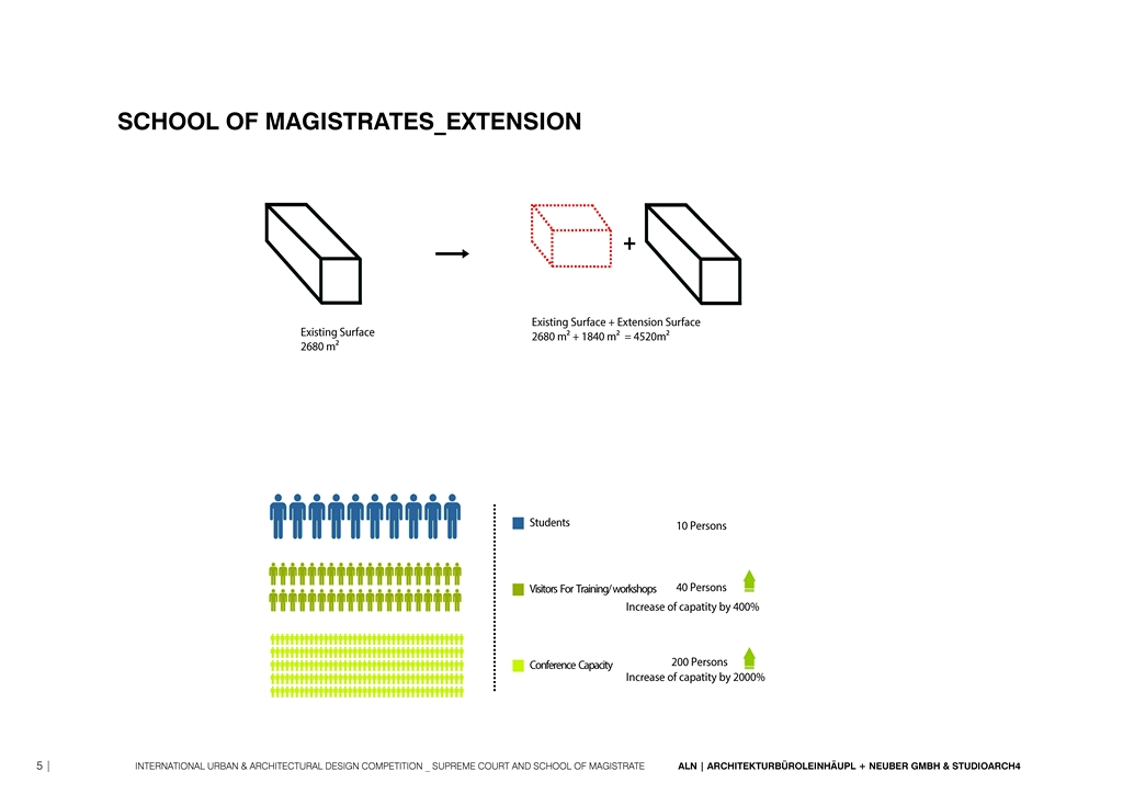 It was impossible to accomodate all the required functions in the existing building, so we are adding an addition , that will serve as a more open and public building with conference rooms, canteen, library etc/