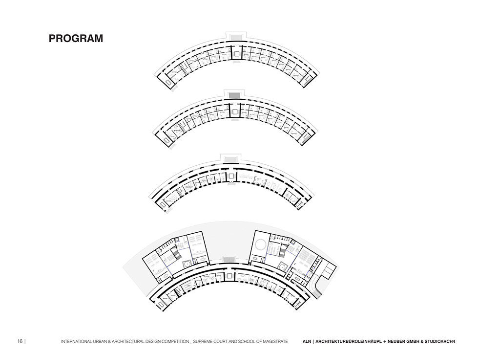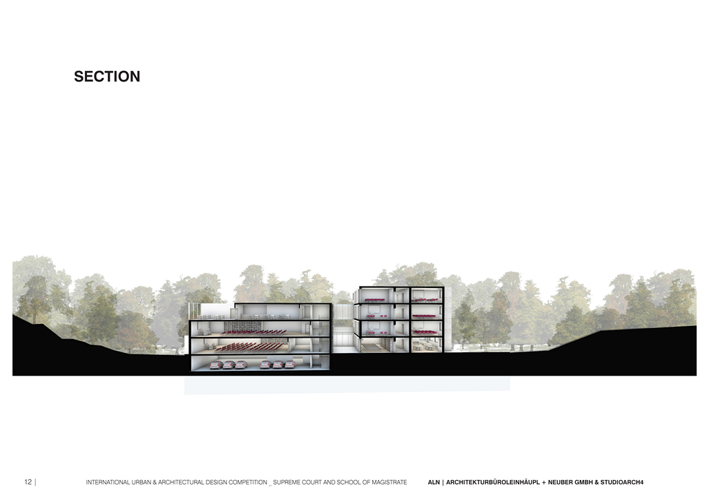 connected with the court, functioning as cooperating structures. The judges of the supreme court will provide their expertise, their knowledge and help for the new students of the magistrate school, meanwhile the new judges will help and work as assistance for the collegiums of judges. That’s why the two functions are positioned near each other and are connected. Also, the juridical administration can use the functions (canteen, library, auditorium) of the magistrate school.