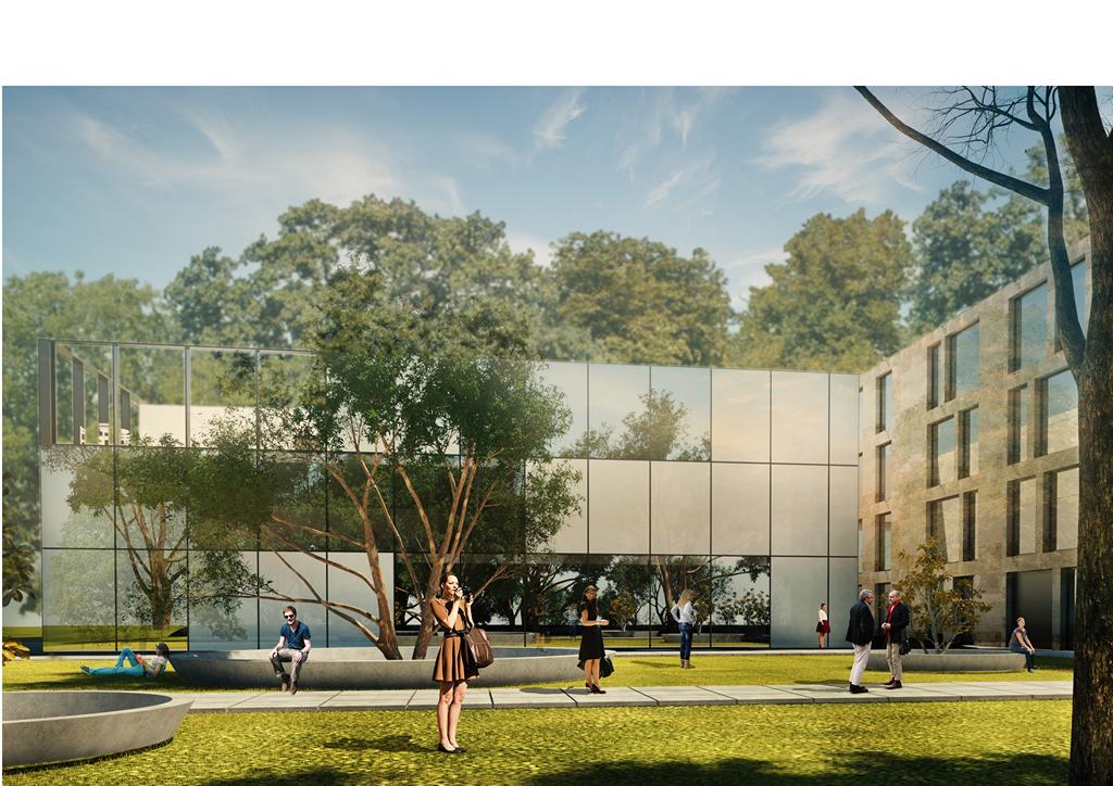 In order to give more importance to the monumental building, also considering the fact that the building is in the middle of the park, we wanted to “hide” the new construction, so we are creating this iillusion with the facade: glass facade that is reflecting the surroundings.