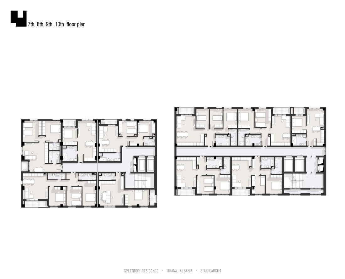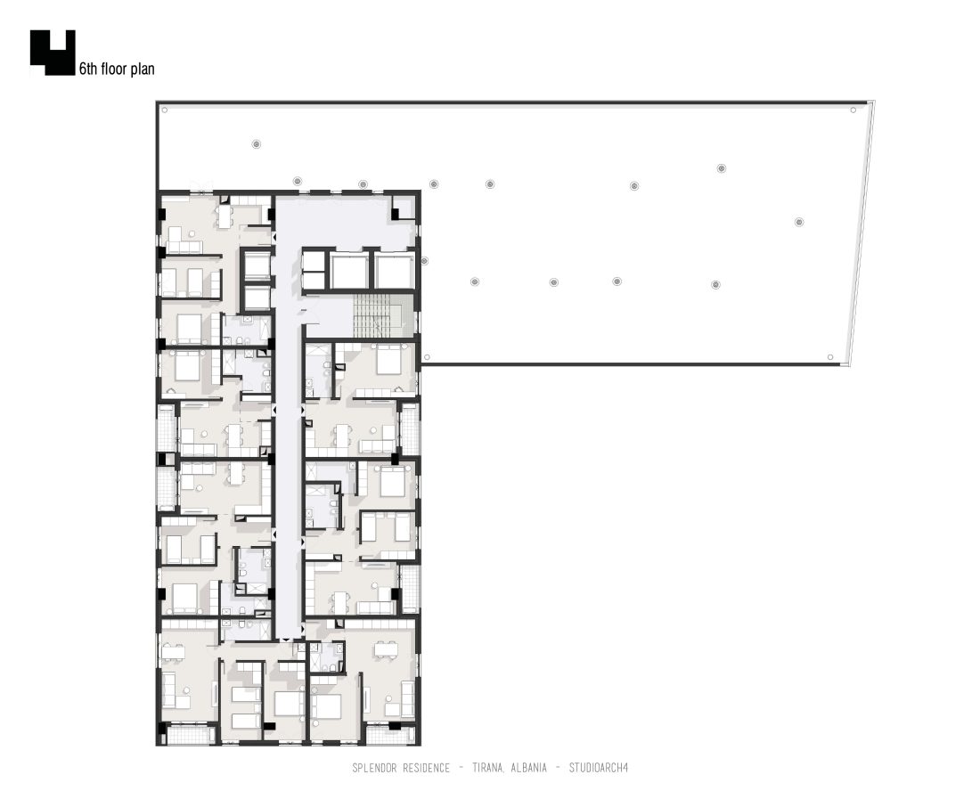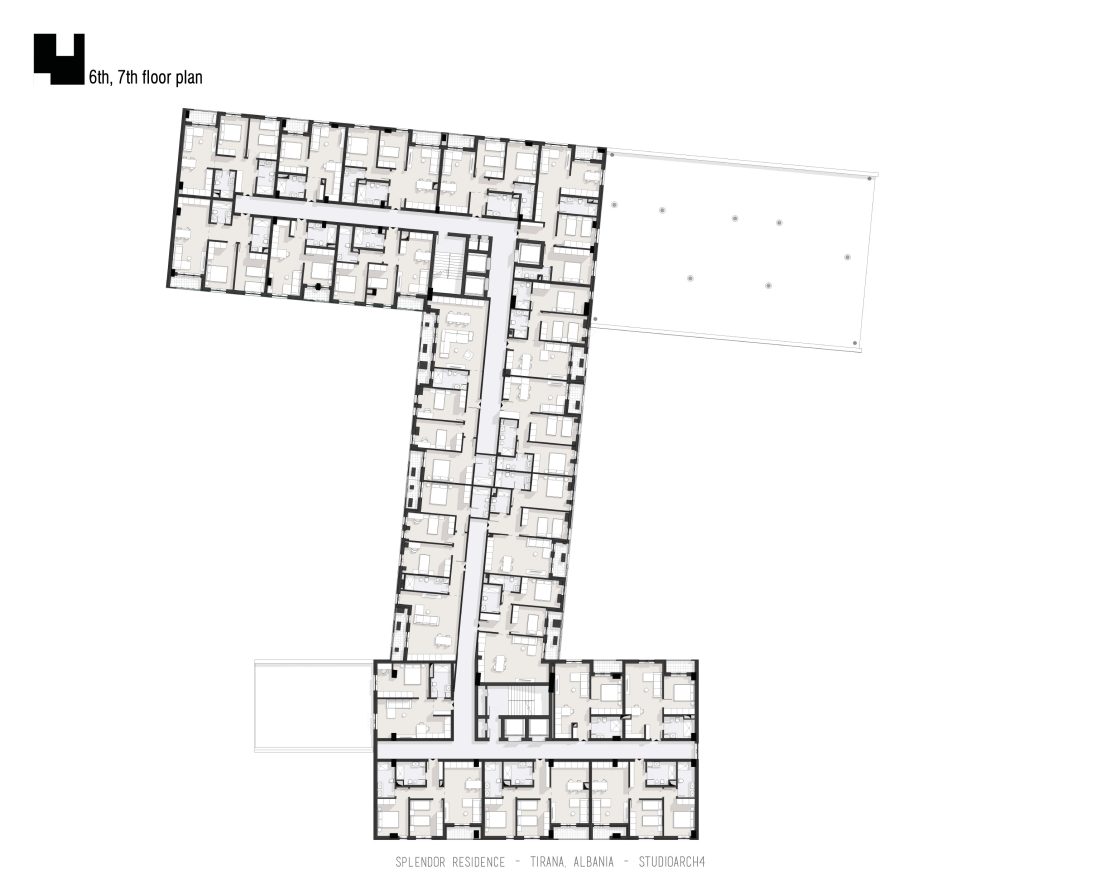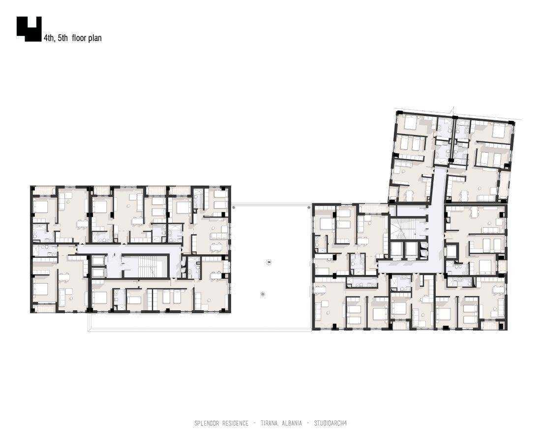 Një projekt ambicioz i vendosur në një nga zonat e reja të zhvillimit periferik të Tiranës. Me një hapësirë të konsiderueshme, kompleksi rezidencial shtrihet në të gjithë perimetrin e sheshit, duke krijuar një hapësirë të “mbrojtur” e të përbashkët për banorët. Për të shmangur monotoninë e një fasade të gjatë e të vazhduar, janë krijuar pasazhe në lartësinë e 2 kateve të cilat përkojnë edhe me akseset vizuale që lidhin sheshin tej e tej. Gjithashtu, në lartësinë e 5 kateve, disa nga blloqet zhvendosen horizontalisht, duke krijuar tarraca të shfrytëzueshme. Në skajin verior dhe atë jugor ndodhen 2 hyrjet kryesore për në shesh, nga ku në secilën prej tyre mund të shquash fundin e pikës tjetër e të perceptosh të gjithë kompleksin. Një moment tjetër i rëndësishëm është padyshim lidhja horizontale; një urë e ngritur në lartësinë e 4 kateve e cila do të realizohet