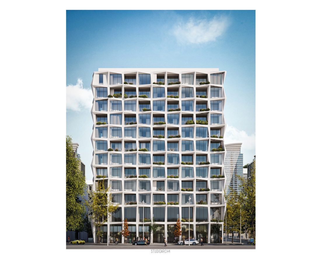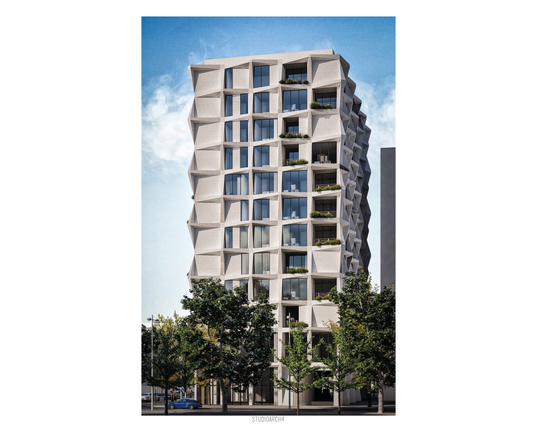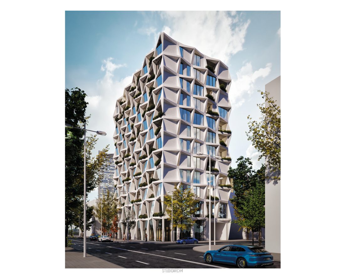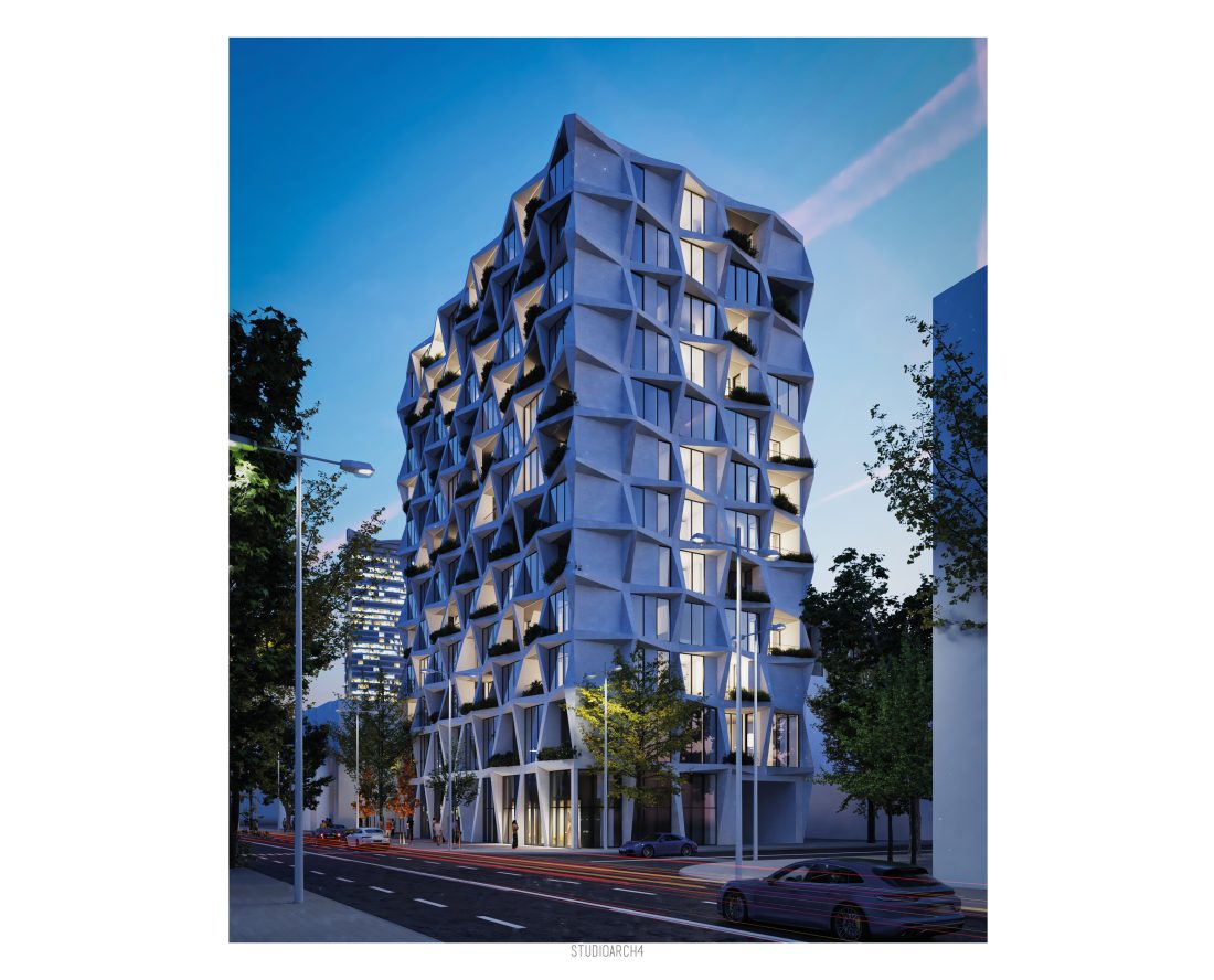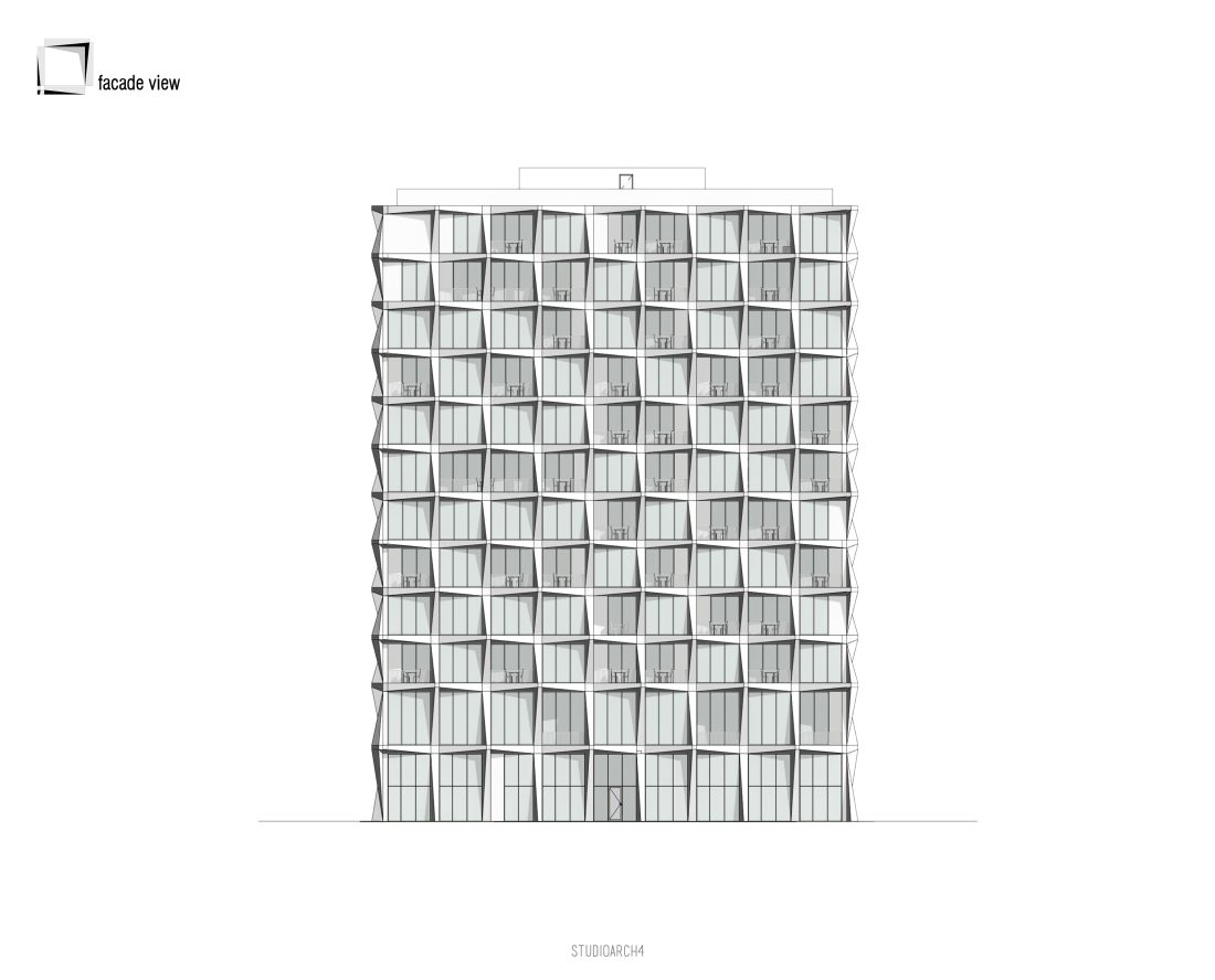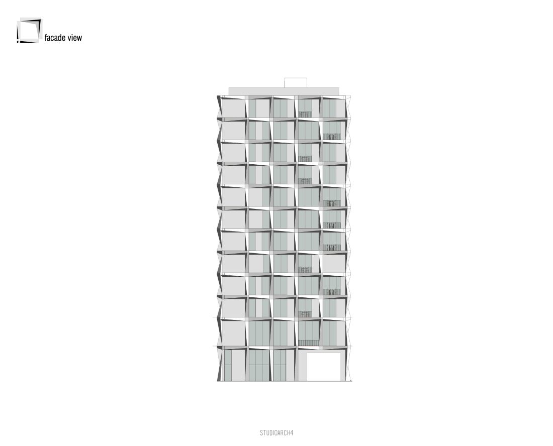rreth shkallëve qendrore dhe ashensorit. Tipari më dallues i ndërtesës është fasada e cila propozohet me elemente