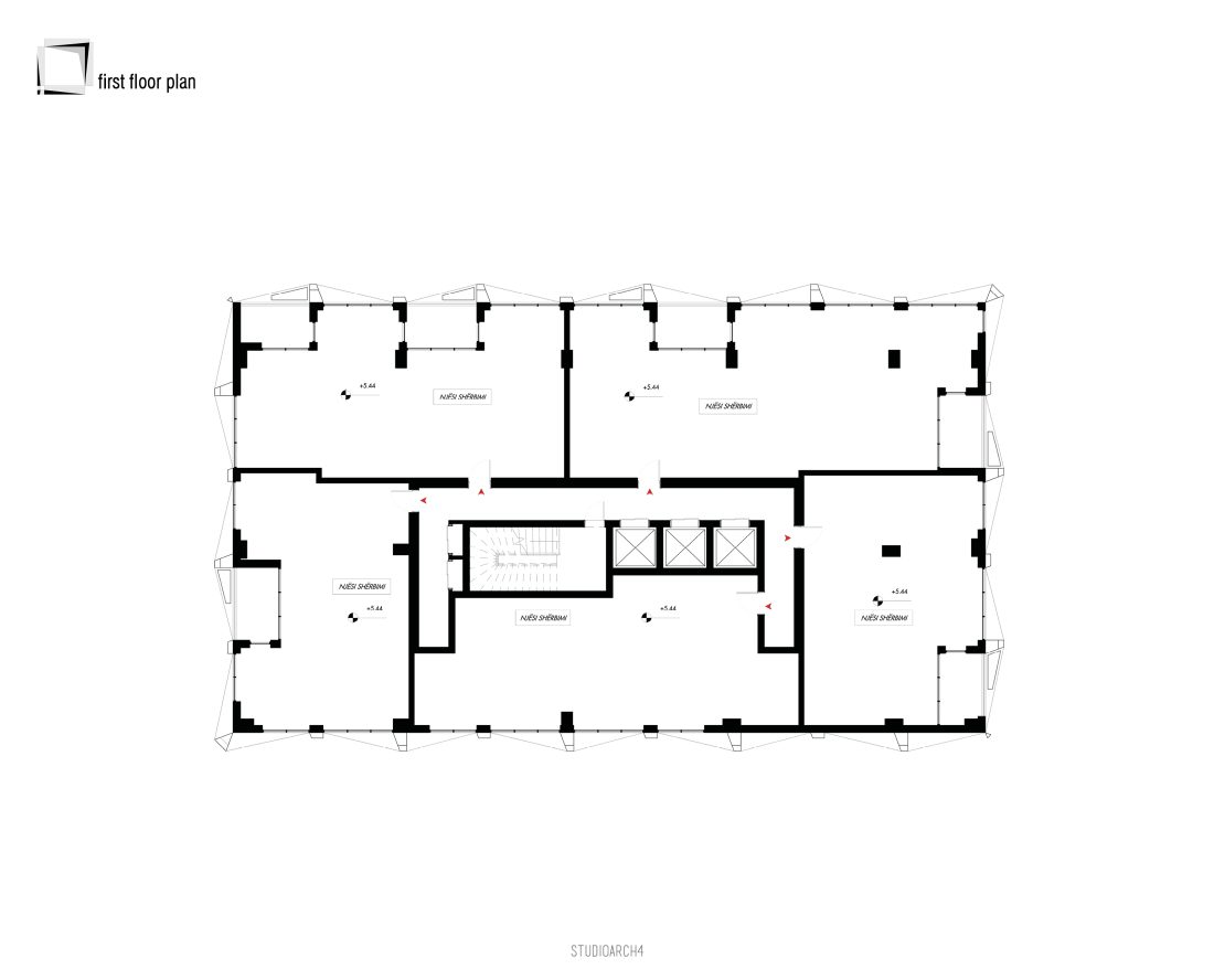 komerciale në katin përdhe, zyra në katin e parë dhe banim për katet e mbetura. Gjurma e ndërtesës është një