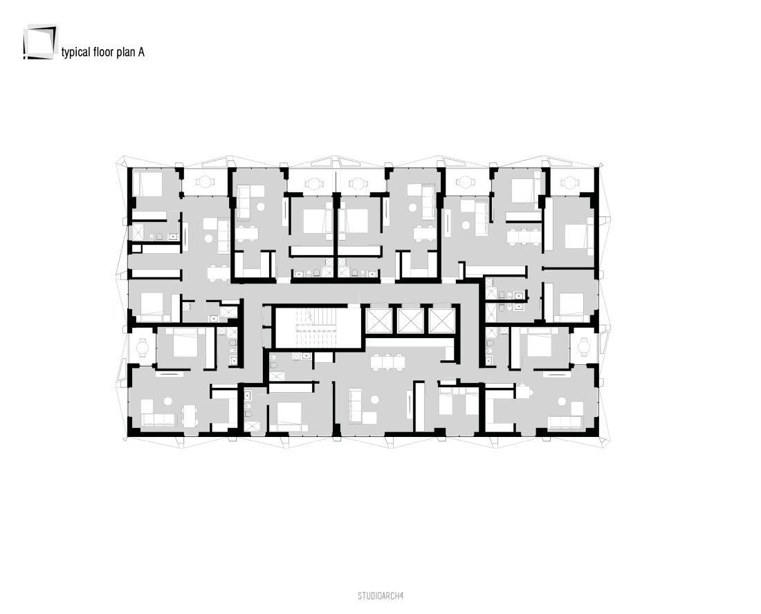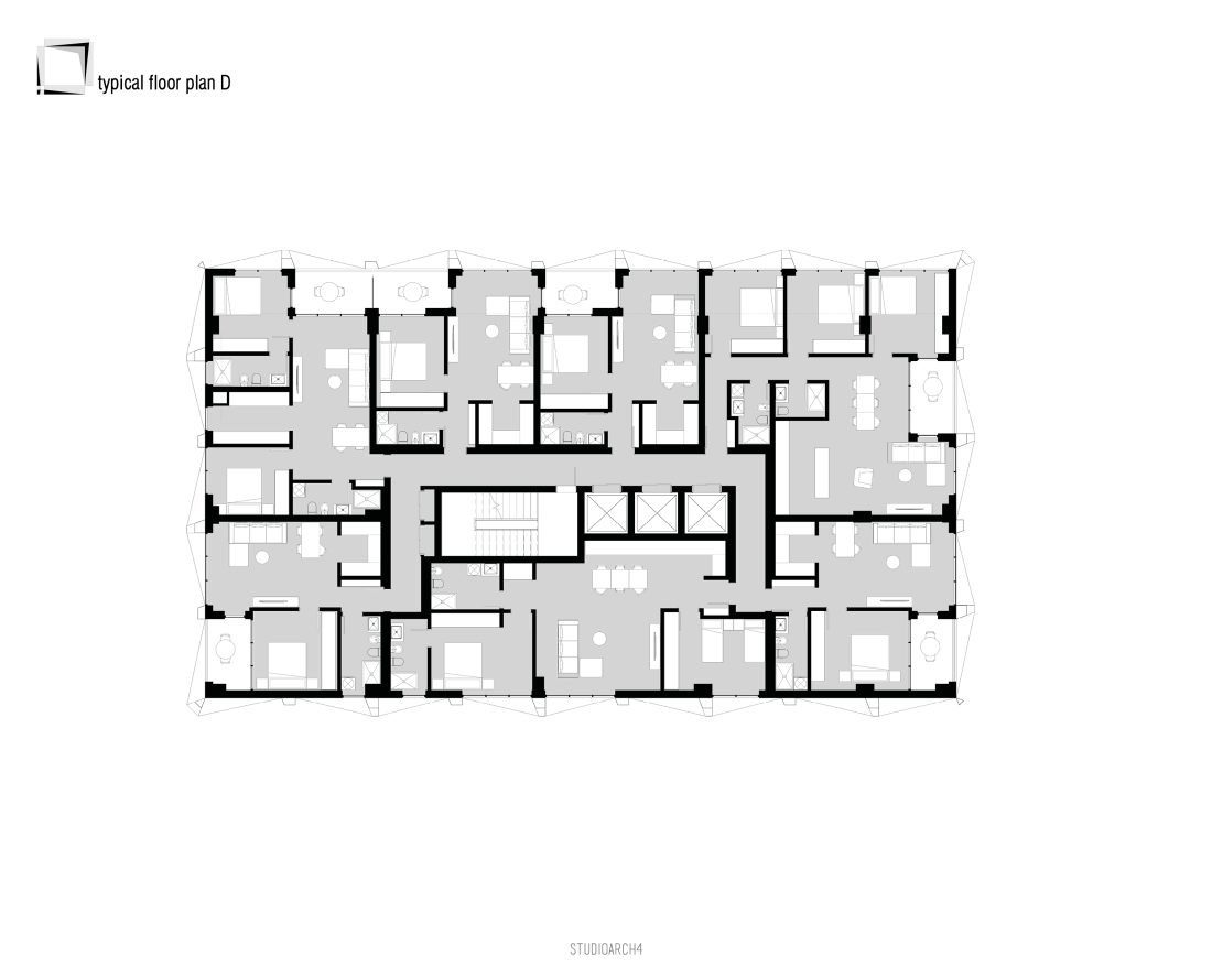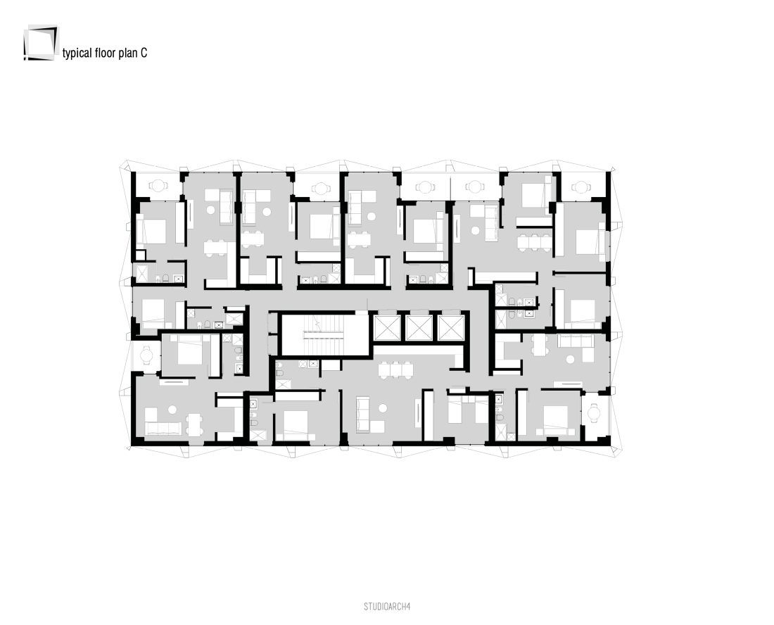 in each floor. This creates 4 typical floor typologies among the residential floor plans. Each floor contains up to 7