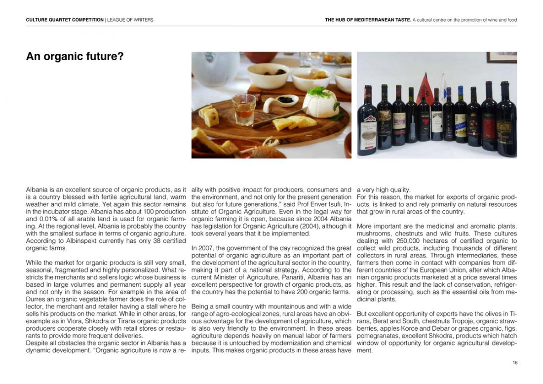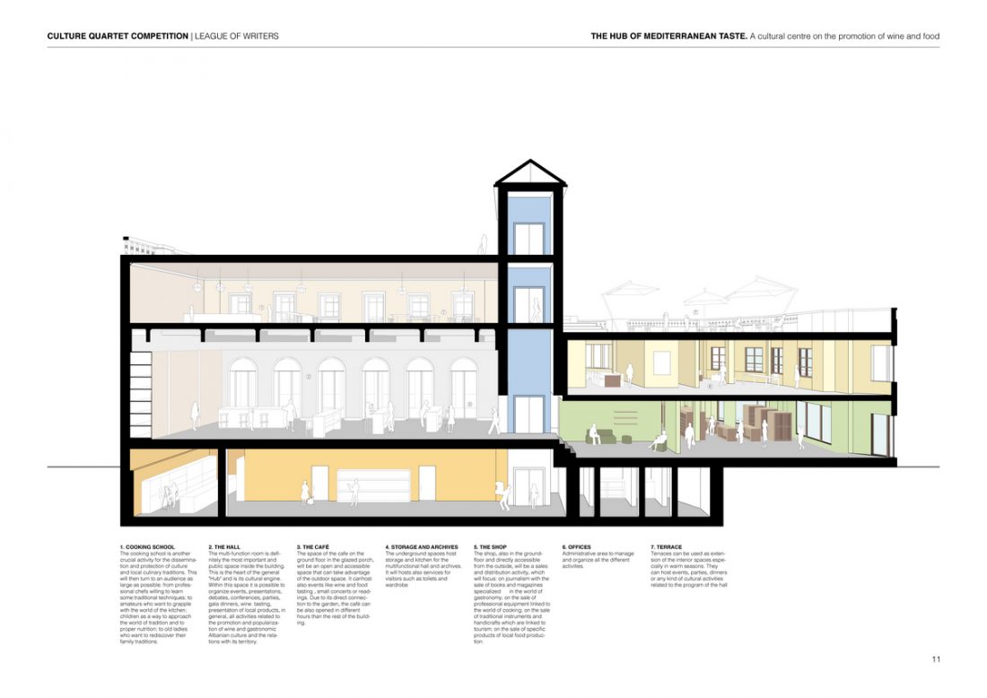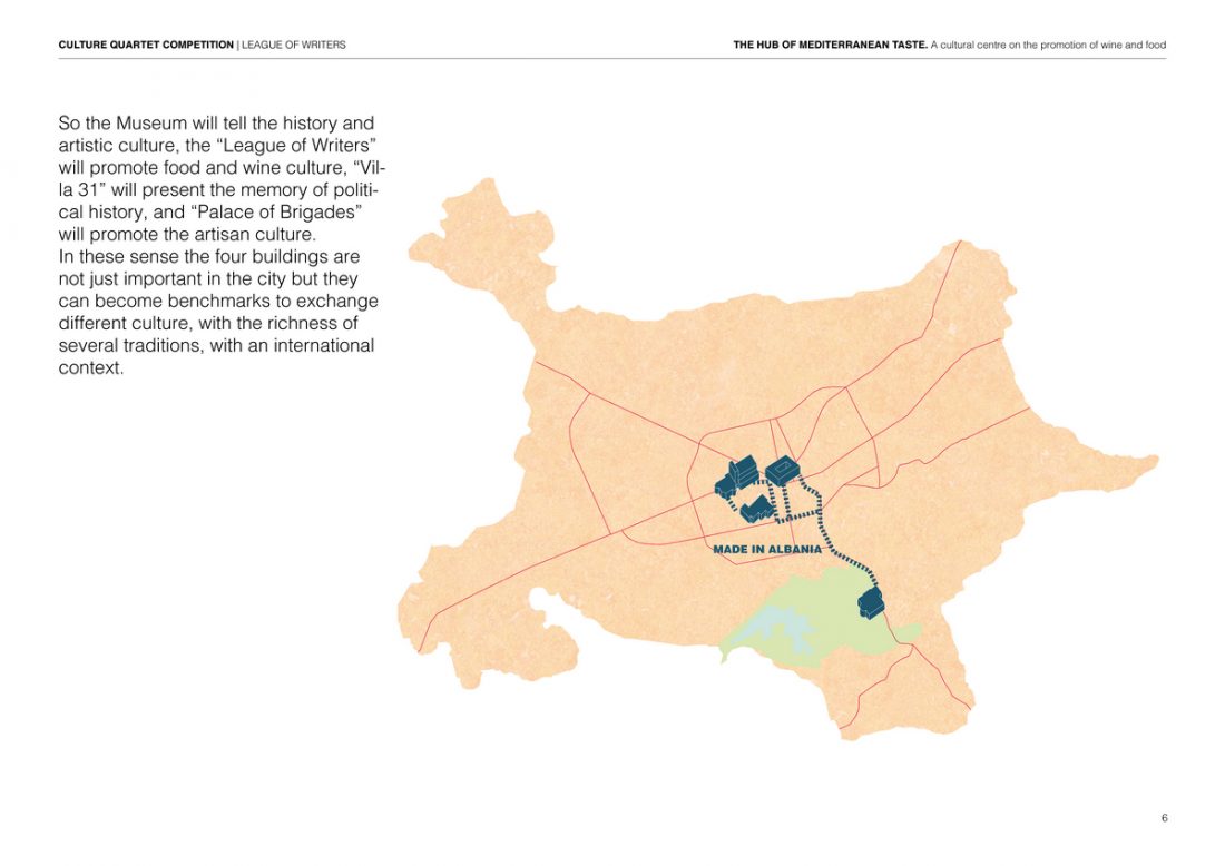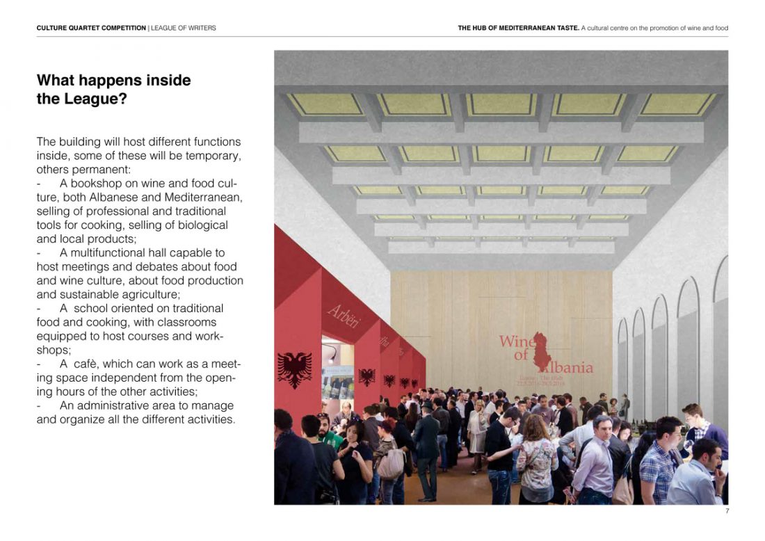 The idea of the project is to use the League of writers as a center for the promotion of the Albanian and Mediterranean wine & food culture inside the city of Tirana. The aim is to realize a structure capable to be an international point of reference about feeding culture, agriculture and sustainable development.