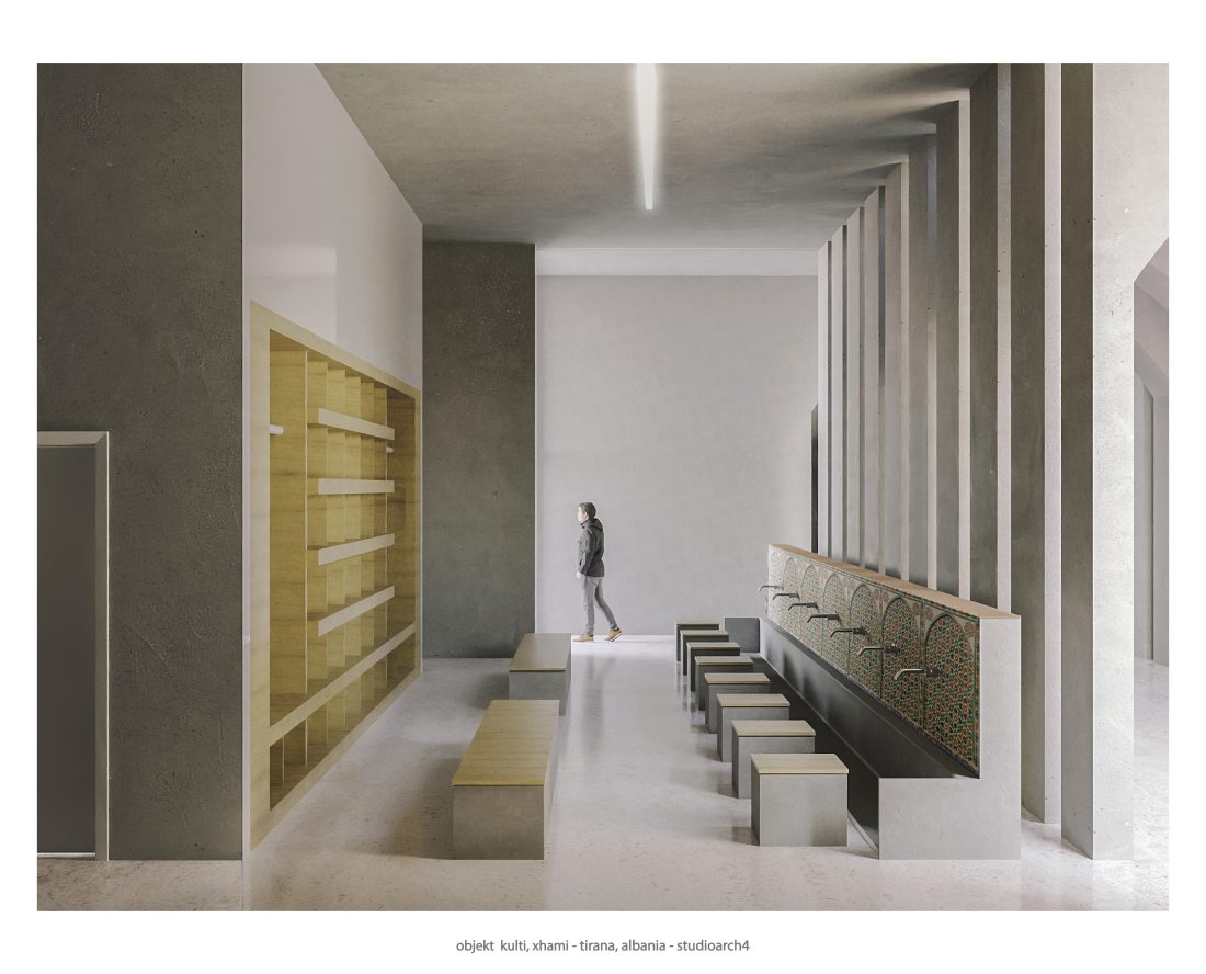 for women is located on the eastern facade, where a concrete staircase leads to the hall on the second