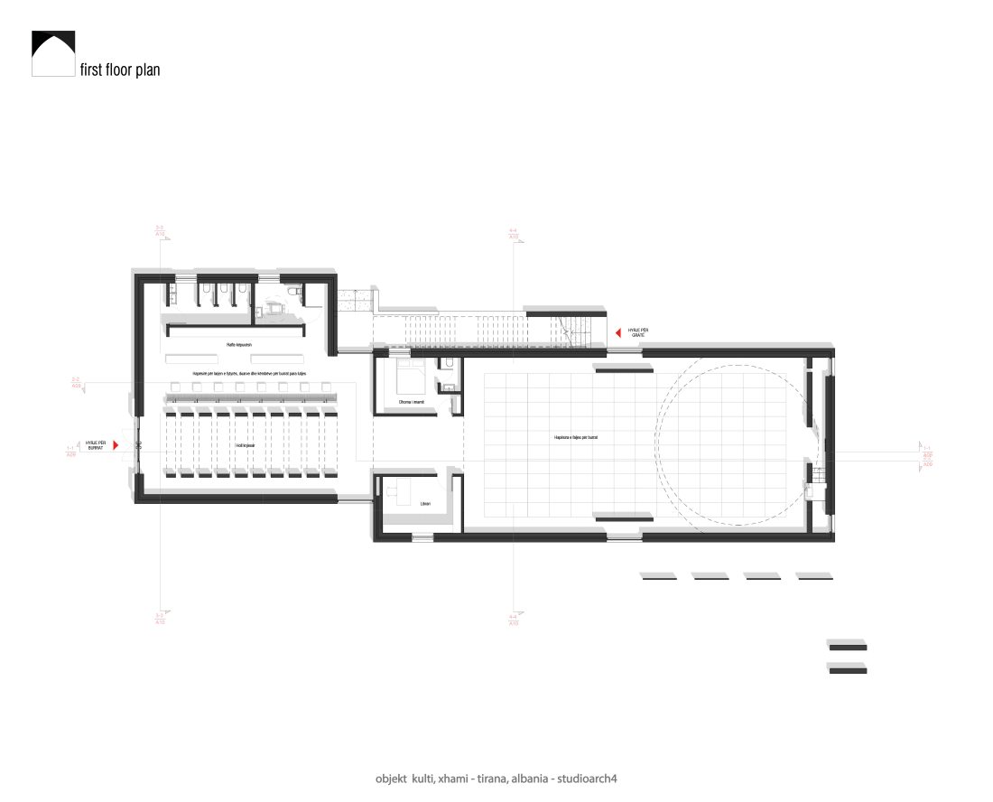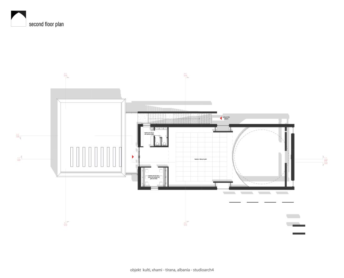 fasadën lindore, ku nëpërmjet një shkallareje betoni drejtohen për në sallën e katit të dytë.