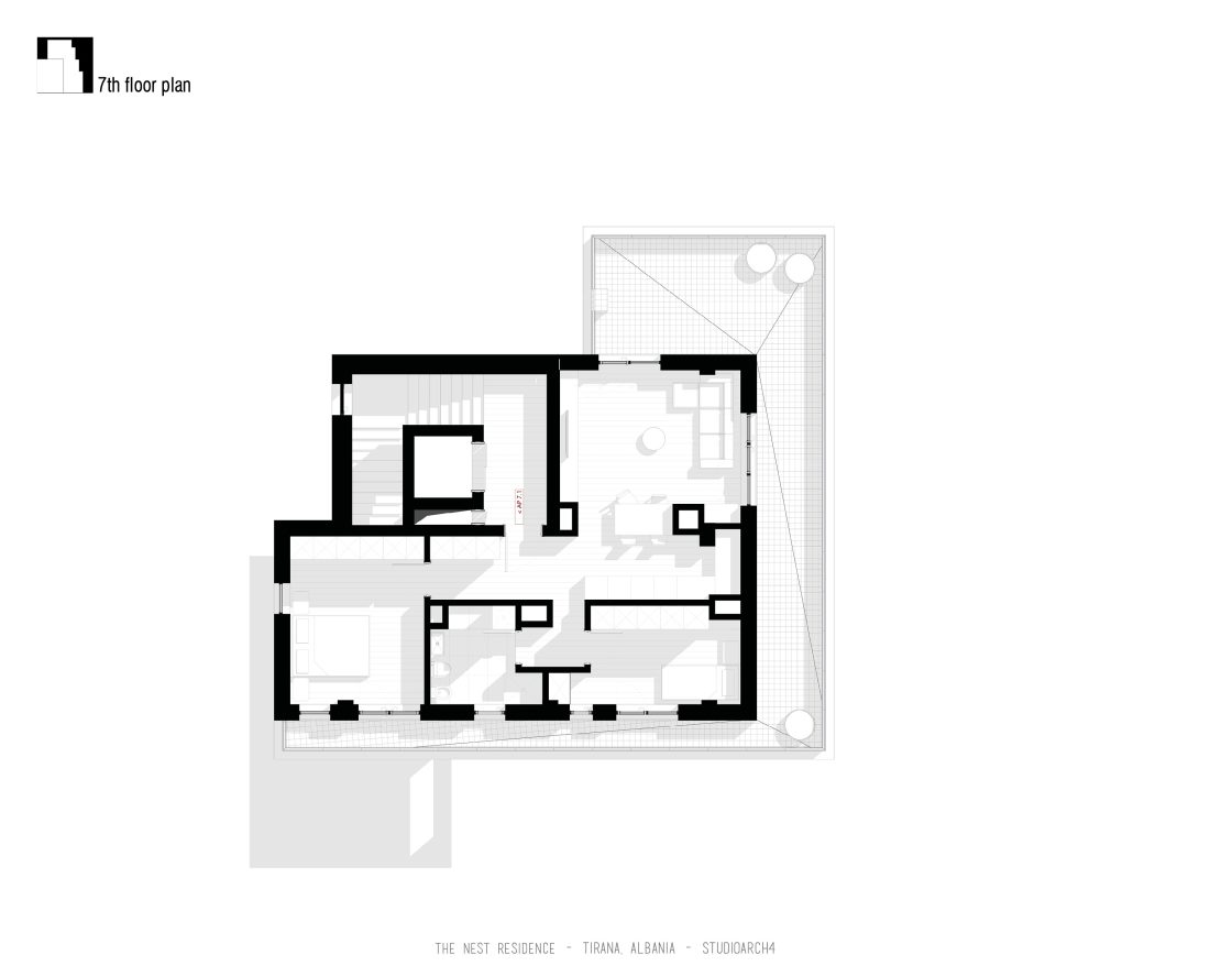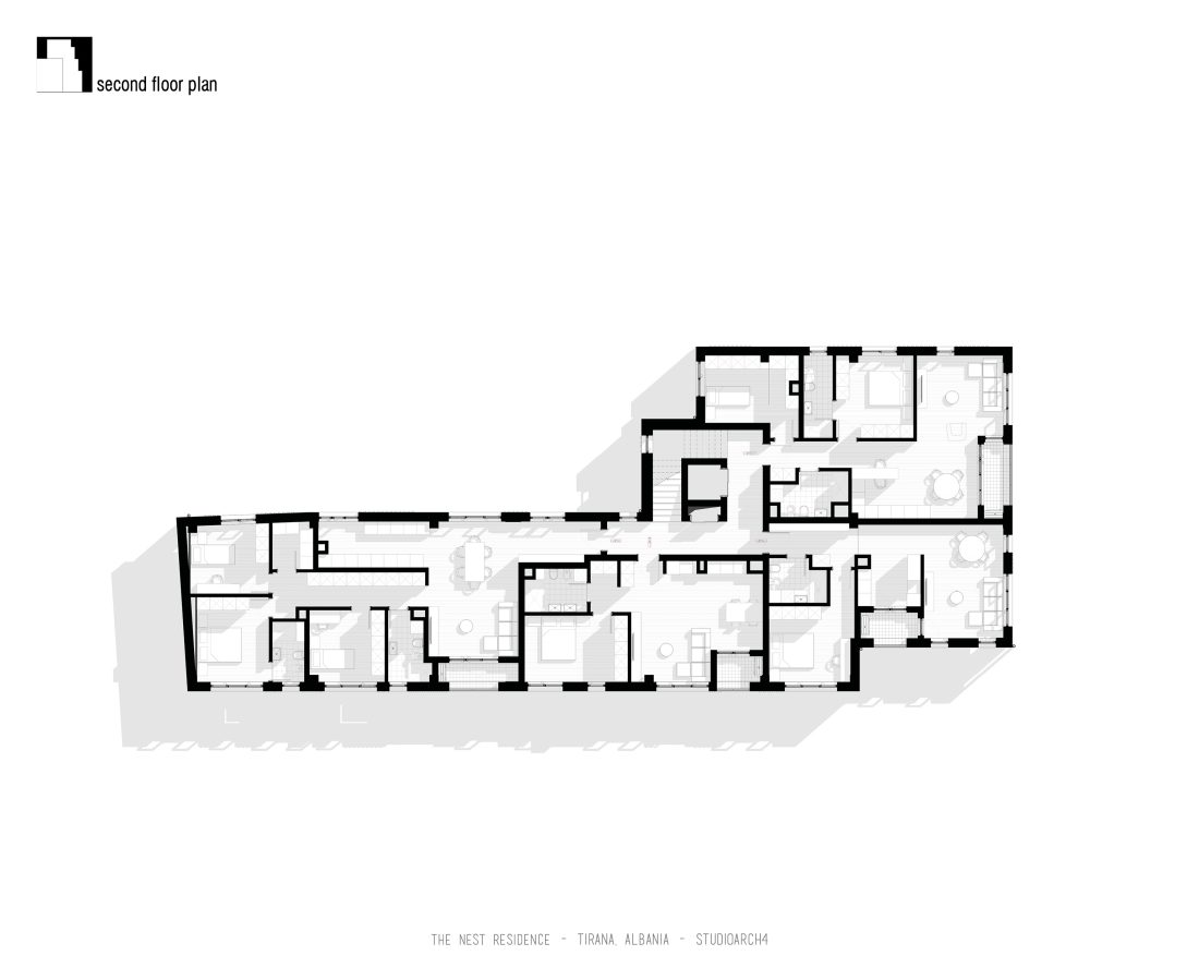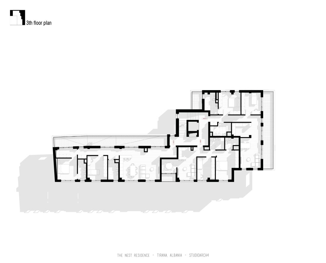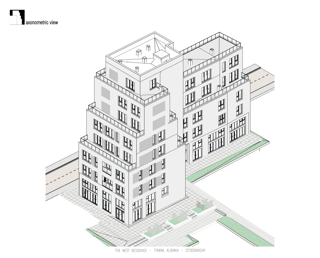 The Nest Residence ka një funksion te perzier shërbimi dhe banimi përgjatë tetë kateve të tij. Ky objekt është I pozicionuar në rrugën “Sali Nivica”, pas Muzeut të Shkencave të Natyrës.