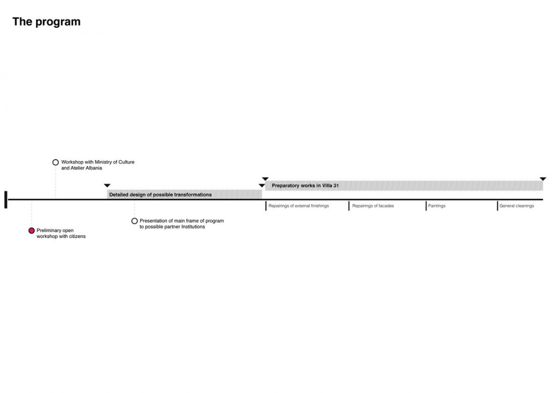 The program of the cultural activities consist of the transformations that will allow Villa 31 to become a public space for Tirana.